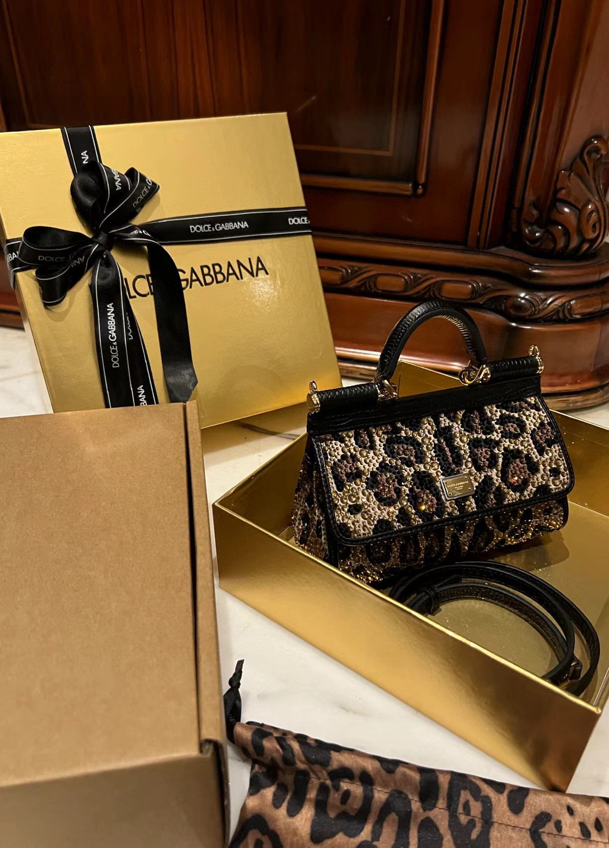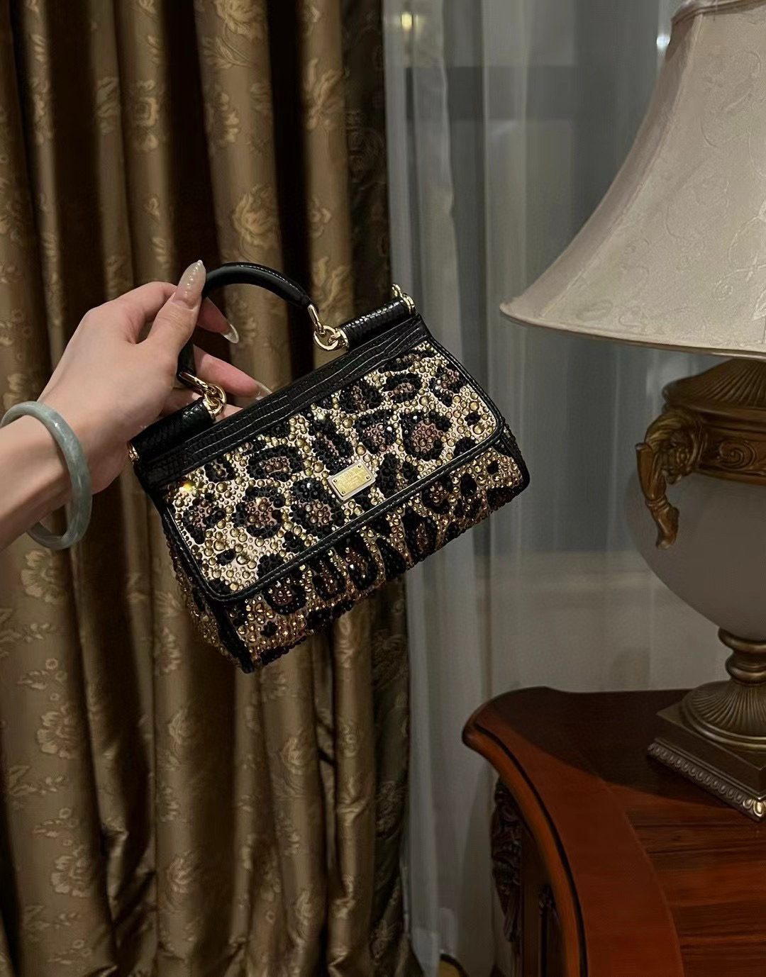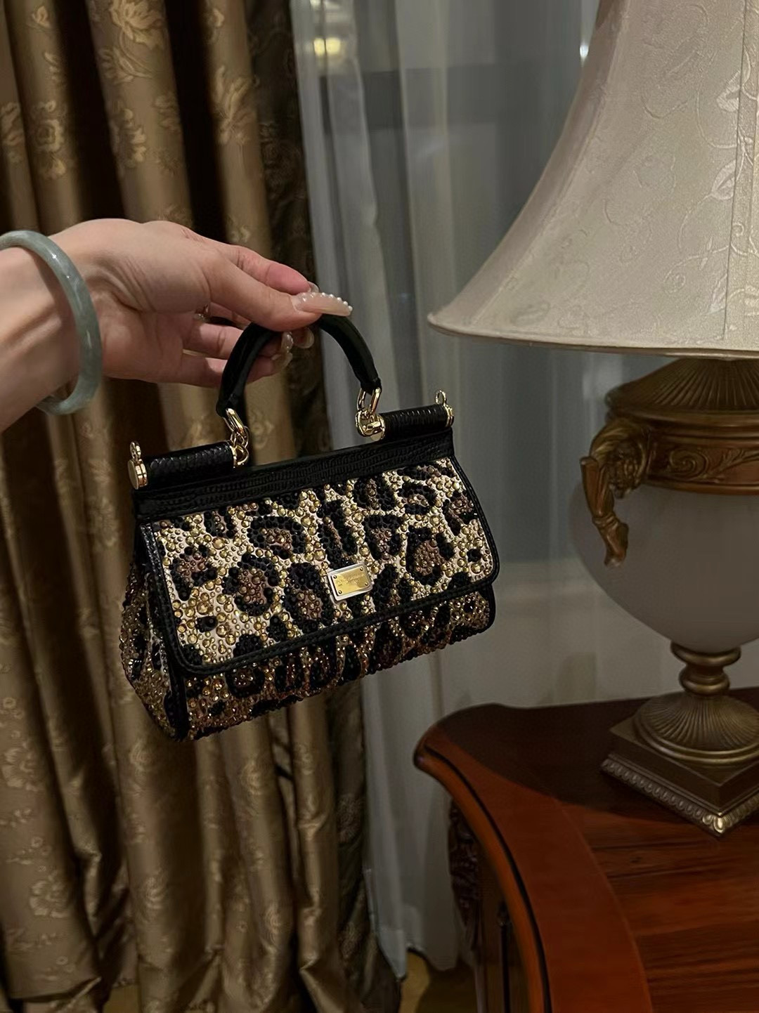 NIGO Dolce&Gabbana Women's BlingBling Sicily Leopard Print Rhinestone Leather Handbag Bag Bags #nigo98167