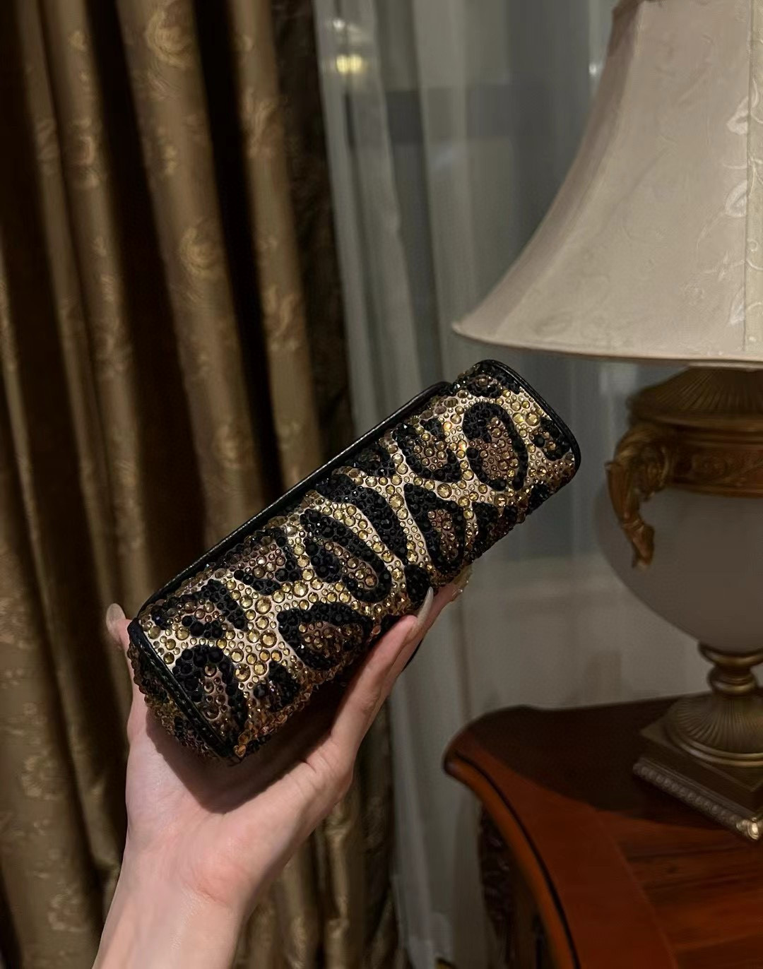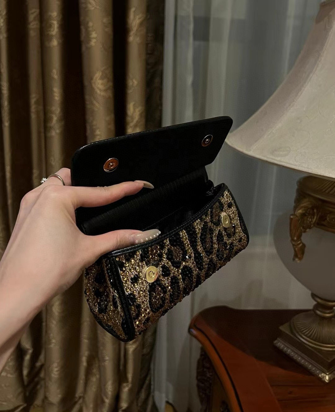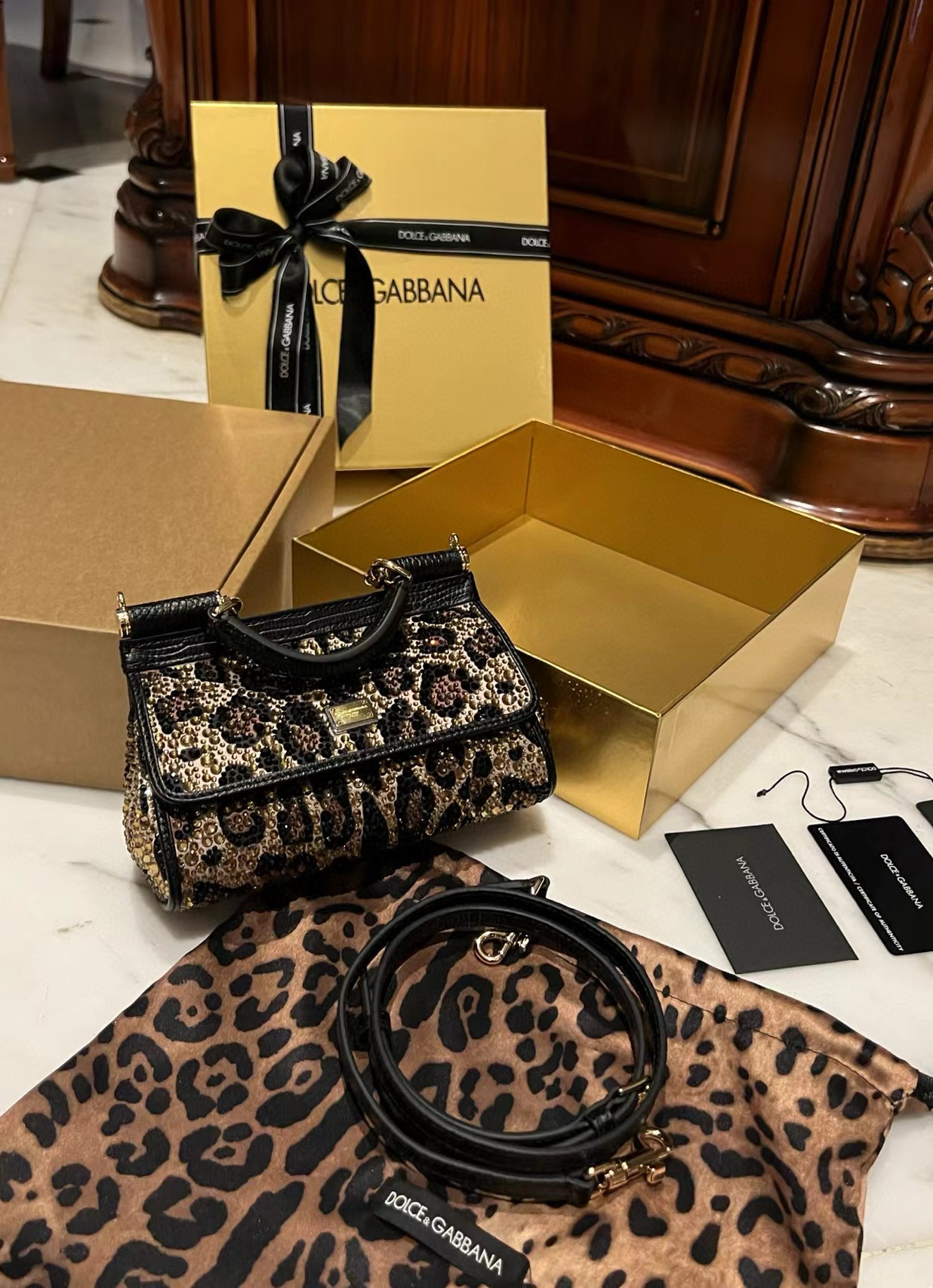 NIGO Dolce&Gabbana Women's BlingBling Sicily Leopard Print Rhinestone Leather Handbag Bag Bags #nigo98167