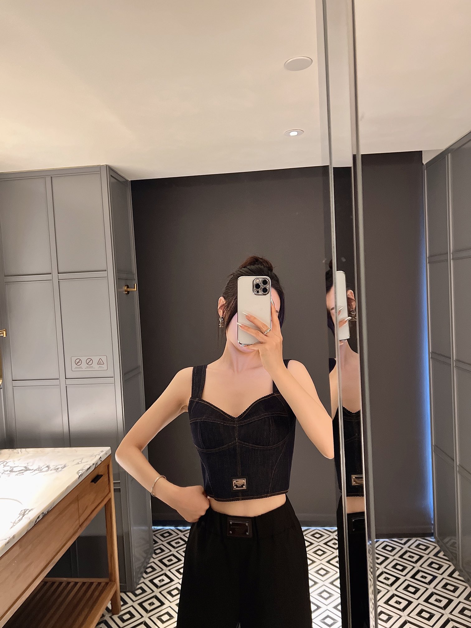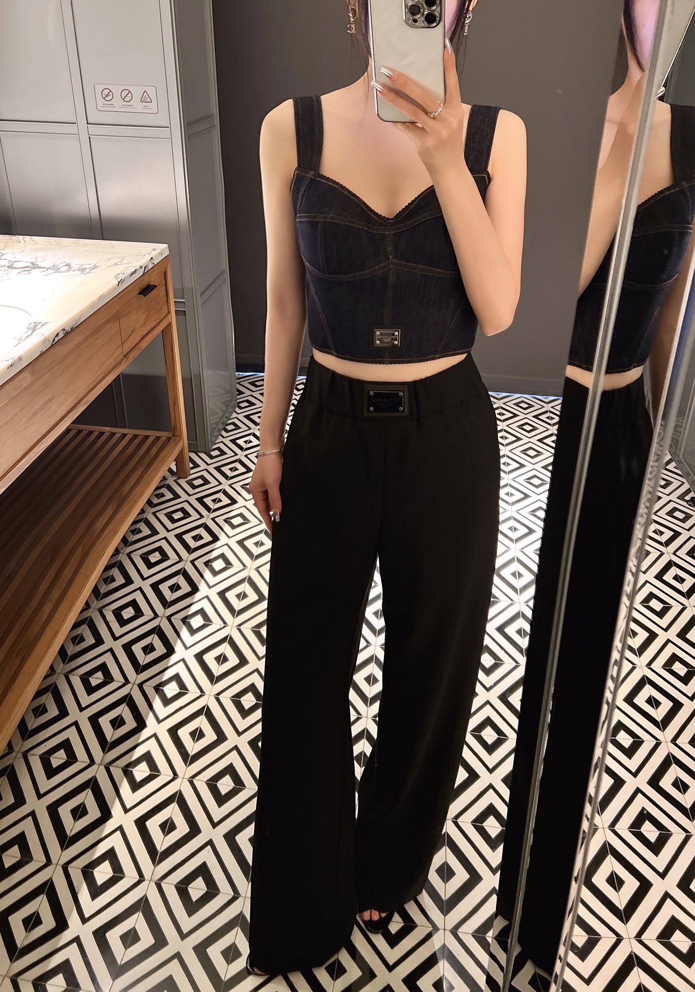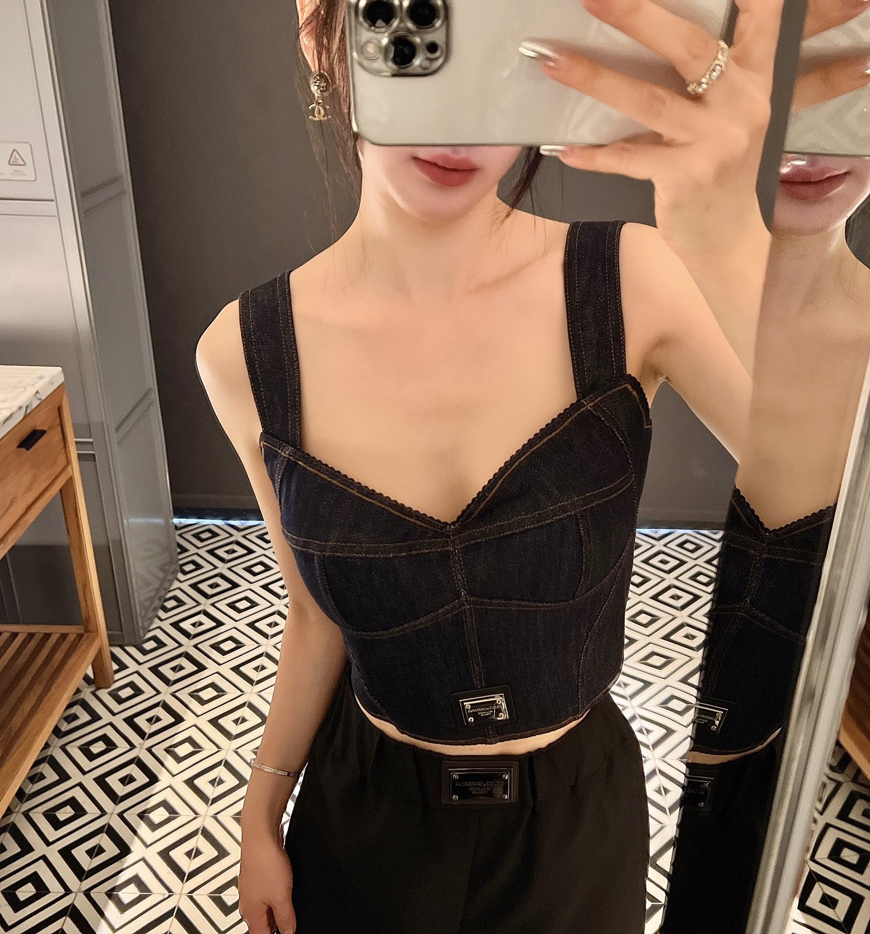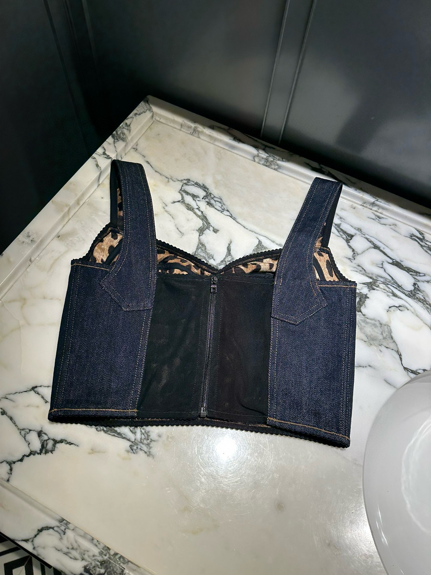 NIGO Dolce&Gabbana Women's Solid Colour Washed Denim Bra Style Suspender Jacket Lined Leopard Printed #nigo76862