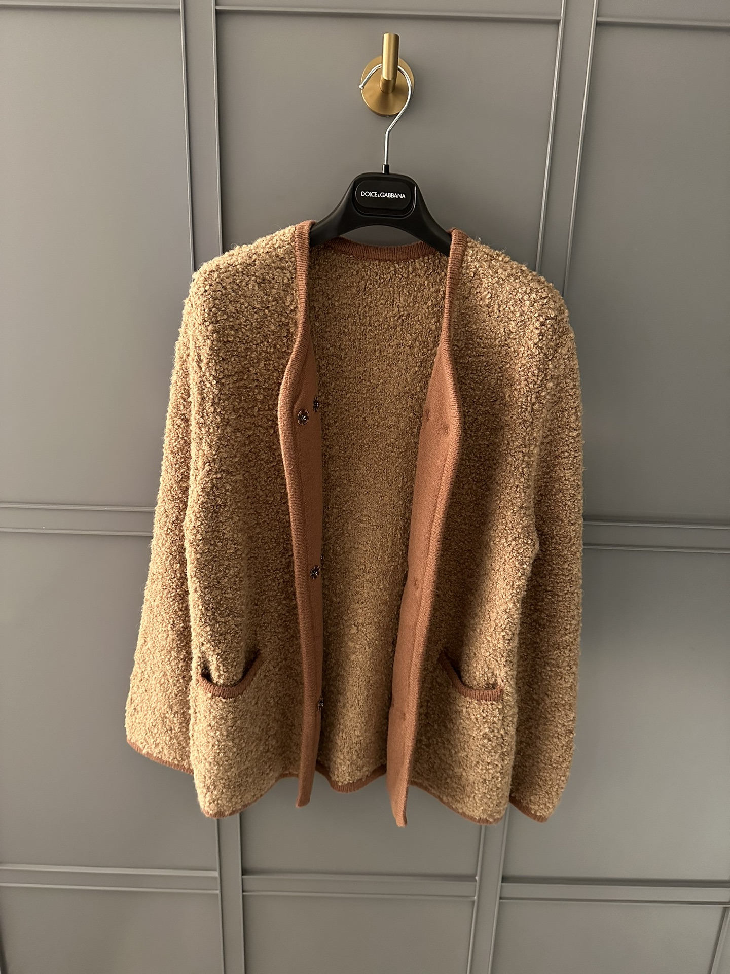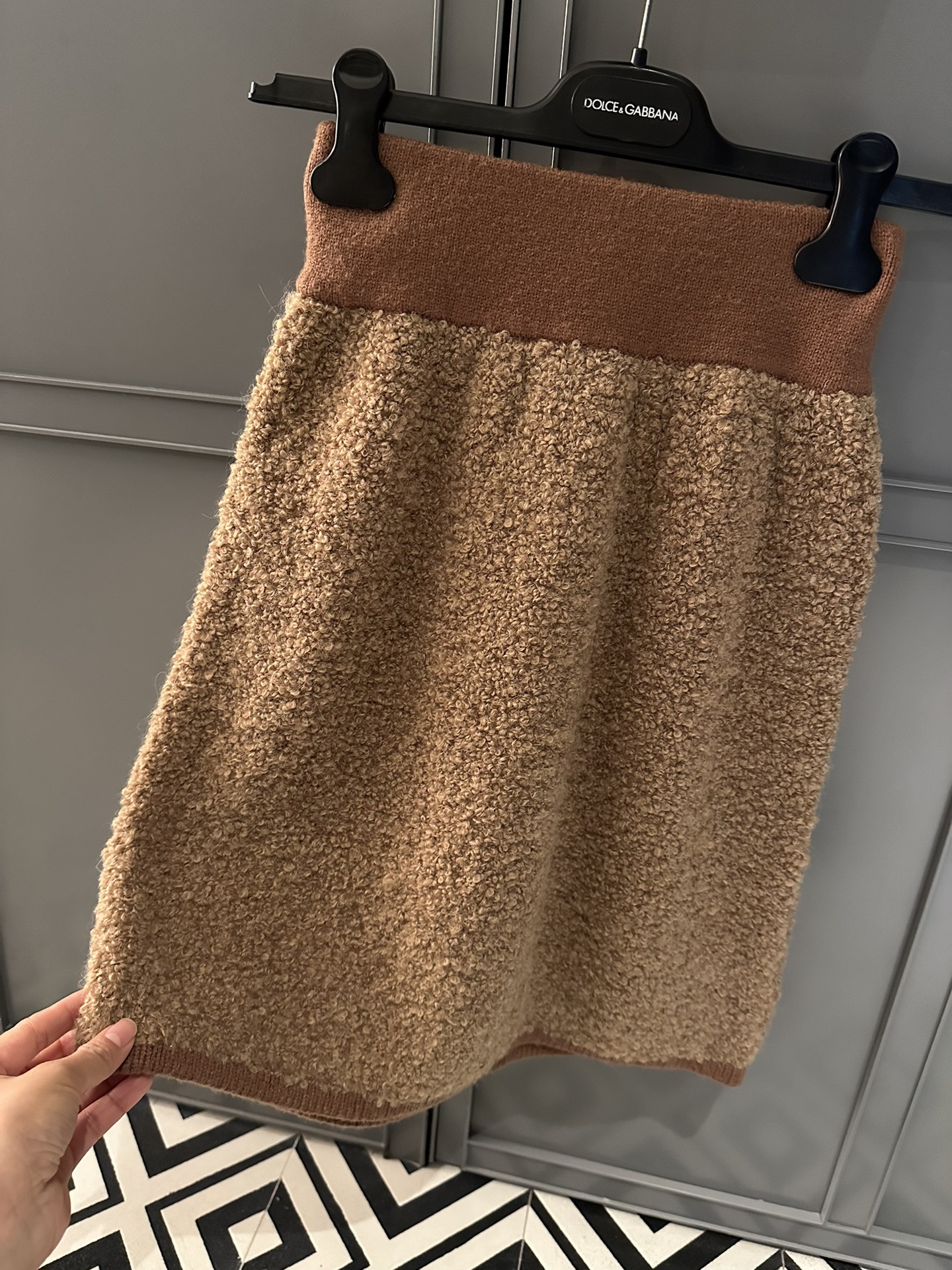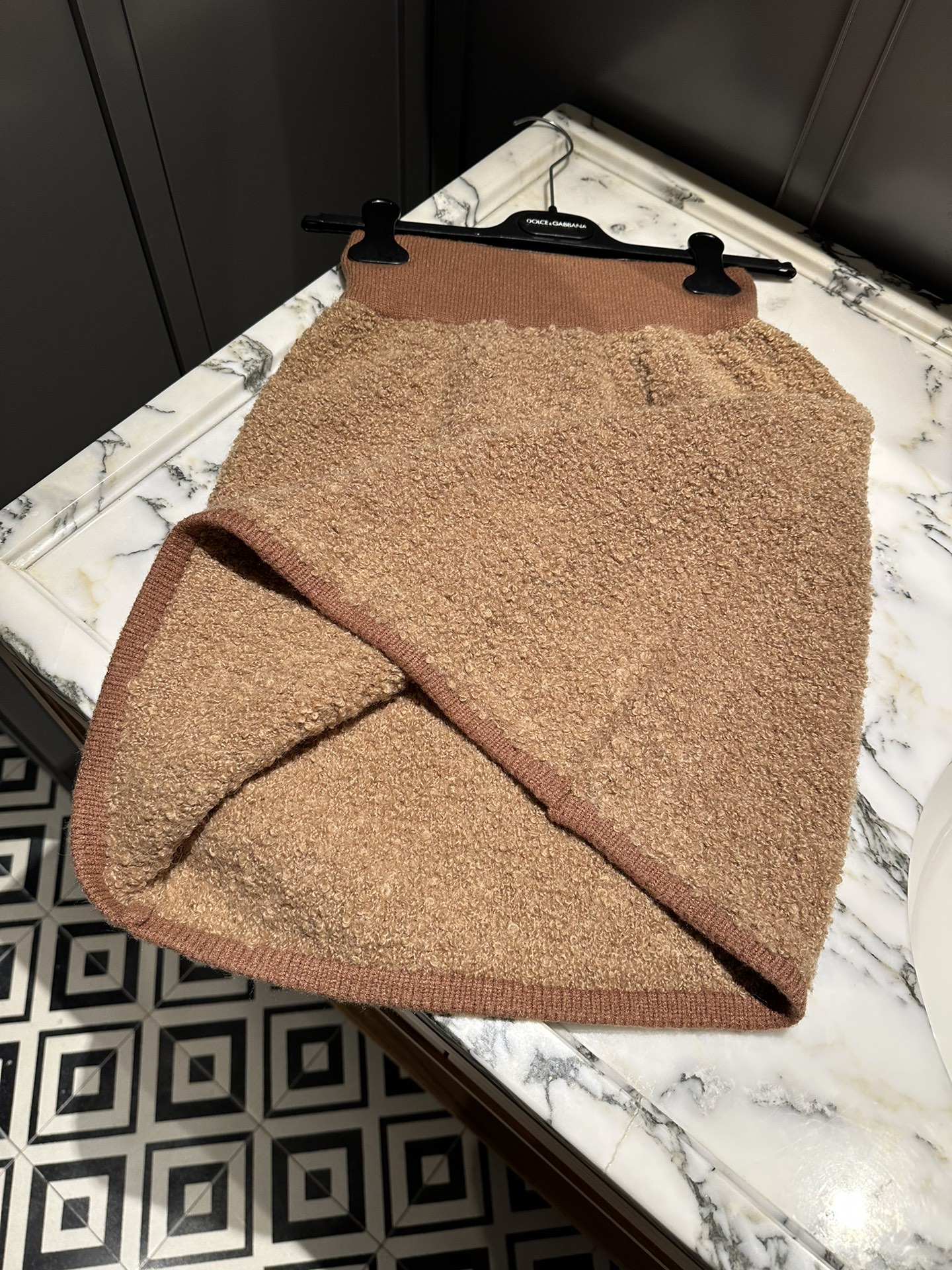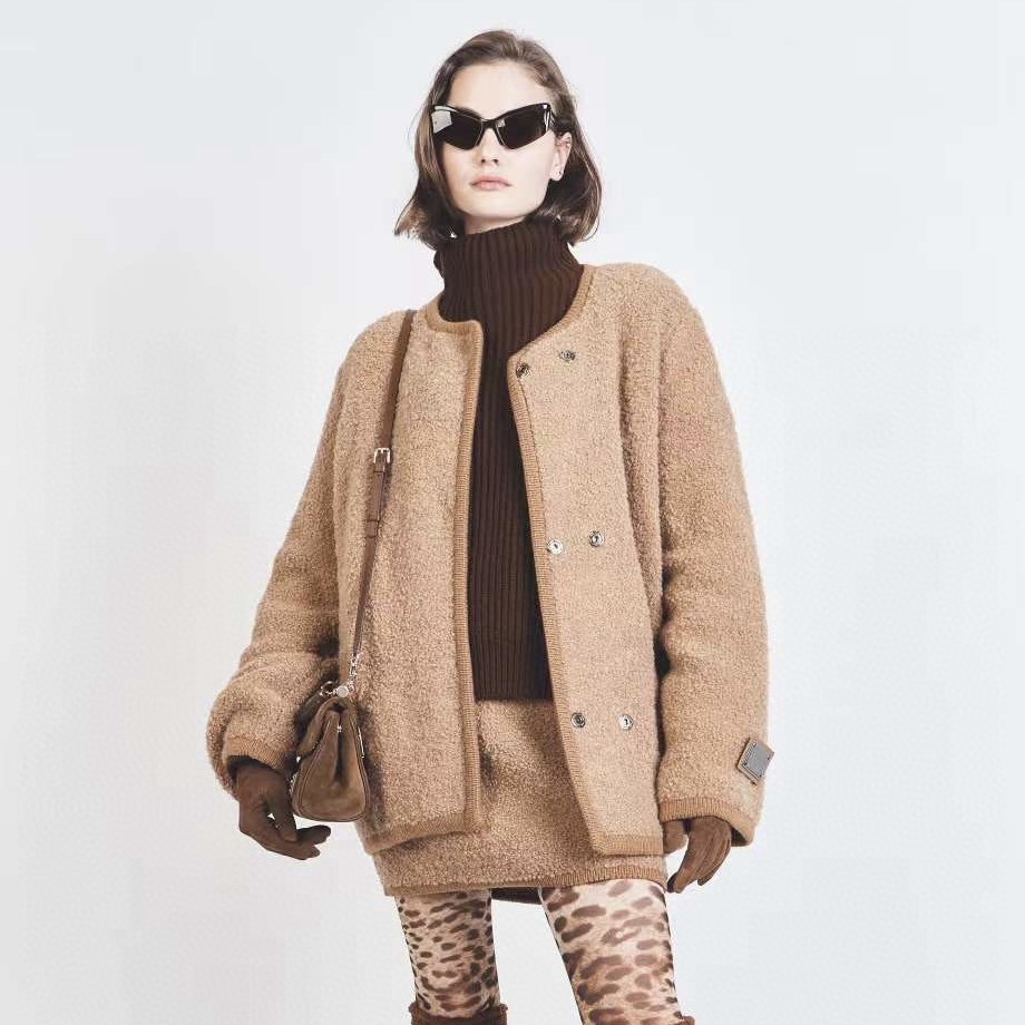 NIGO Dolce&Gabbana Women's Spring And Autumn Brown Wool Knit Knitted Cardigan Suit Set Concealed Button Jacket High Waist Hip Half-body Skirt Ngvp #nigo8943