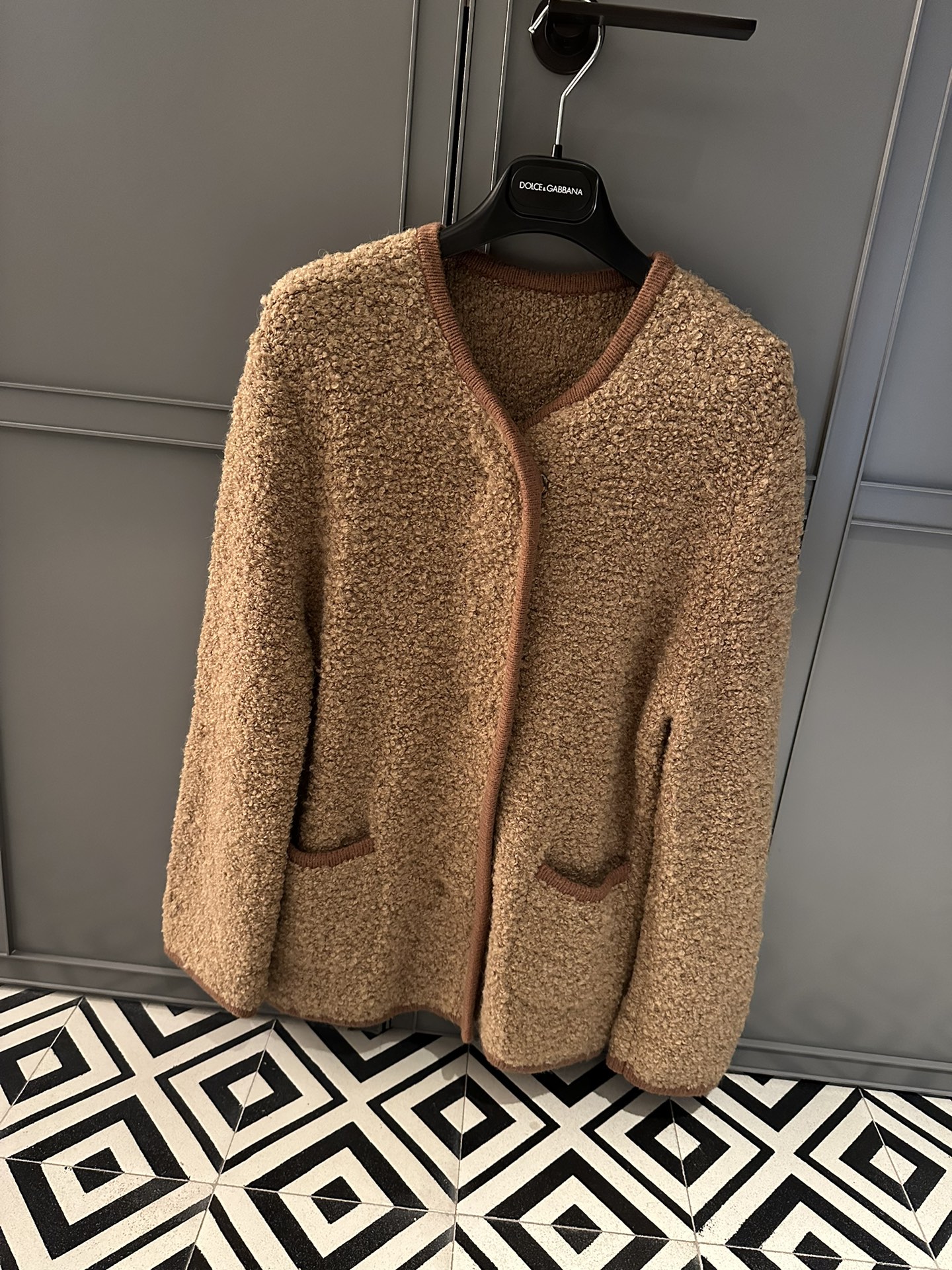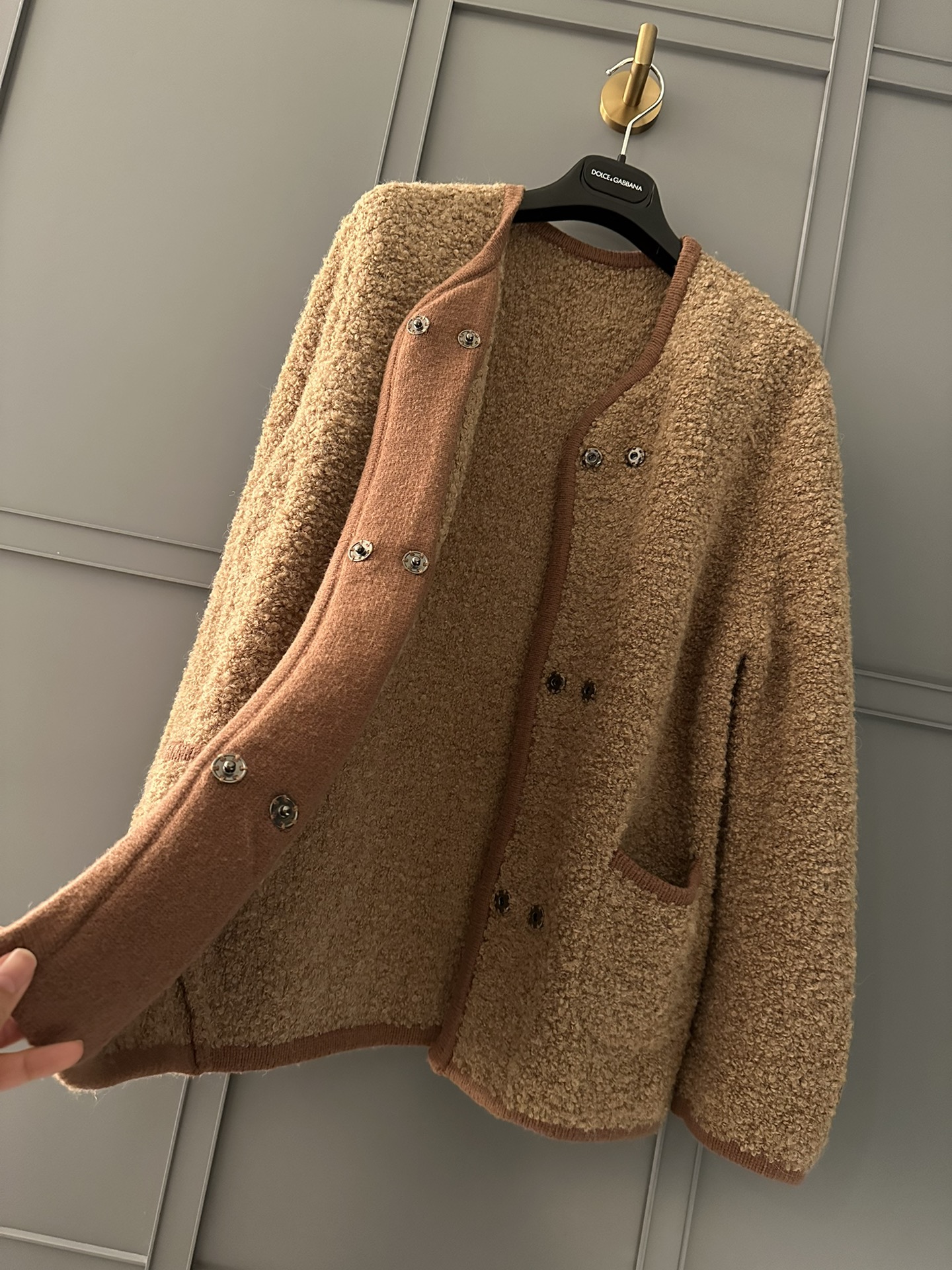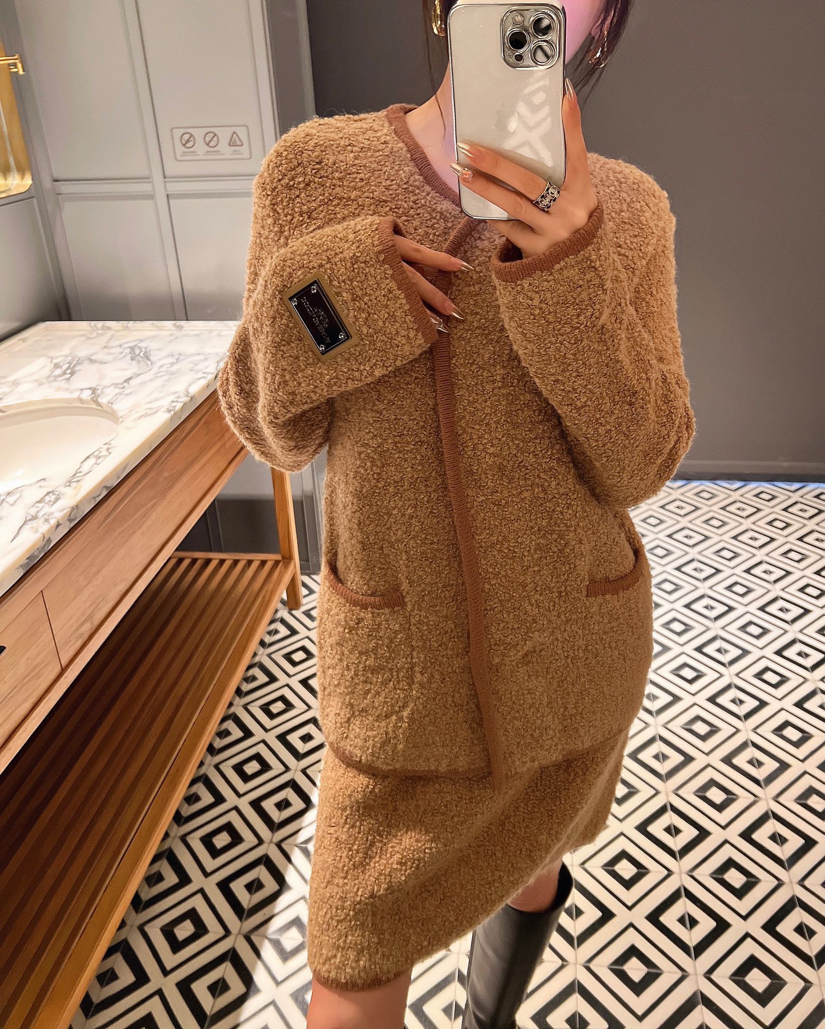 NIGO Dolce&Gabbana Women's Spring And Autumn Brown Wool Knit Knitted Cardigan Suit Set Concealed Button Jacket High Waist Hip Half-body Skirt Ngvp #nigo8943