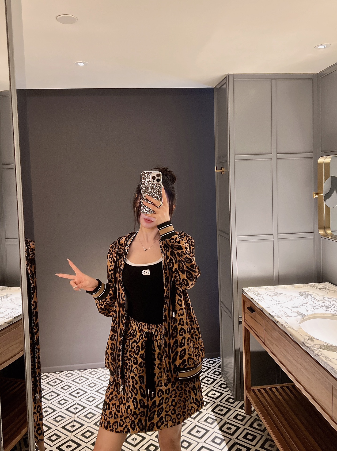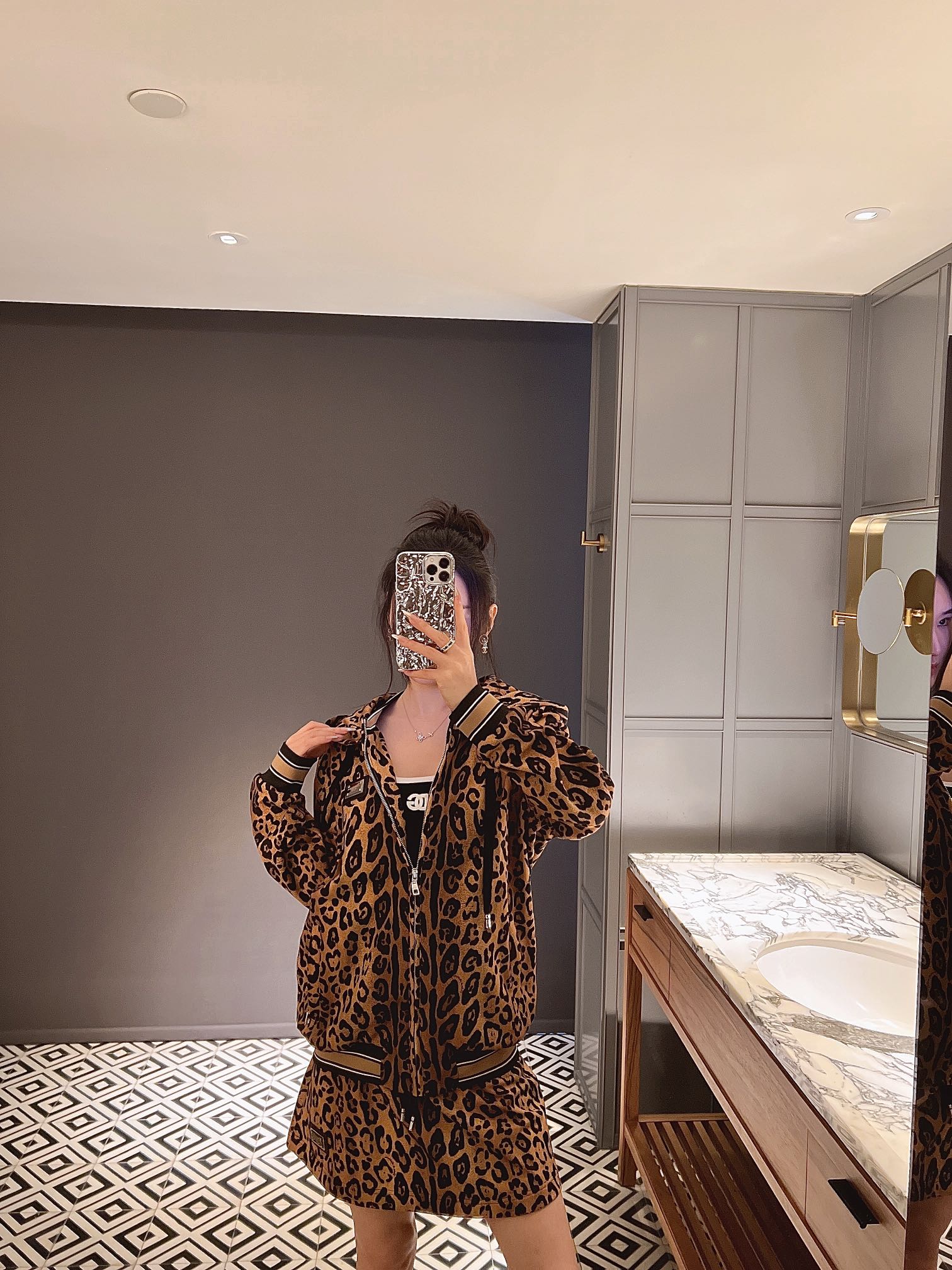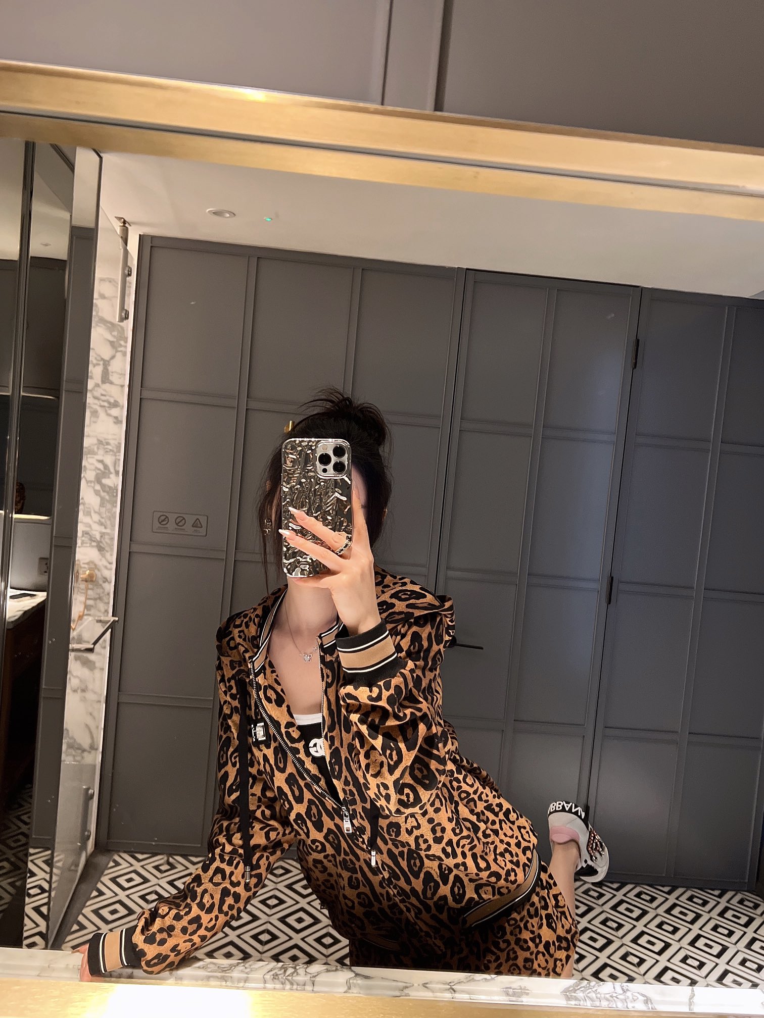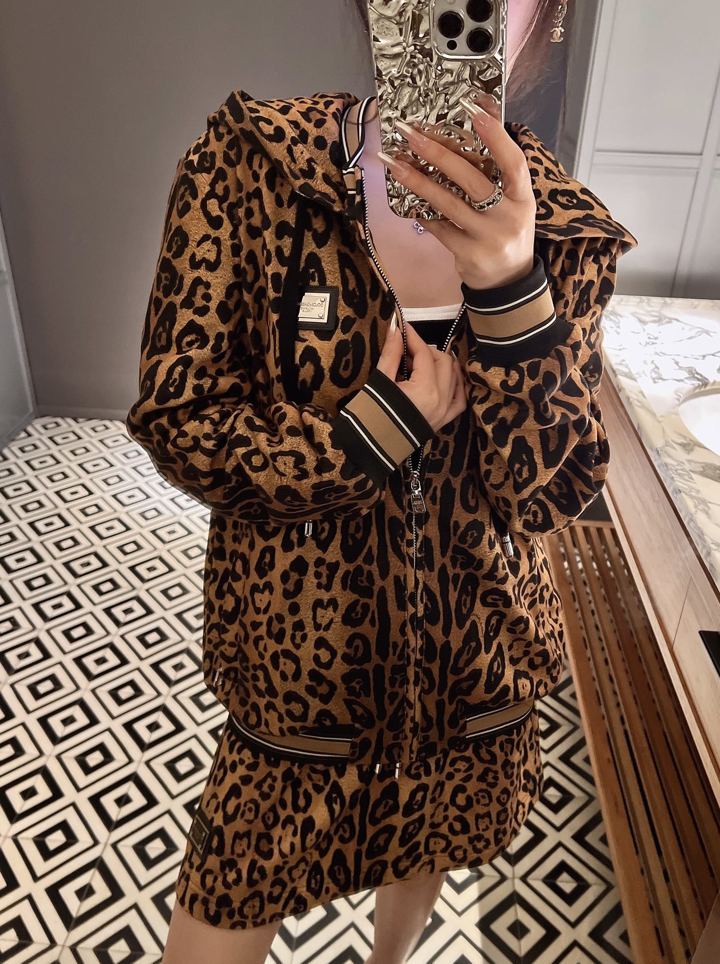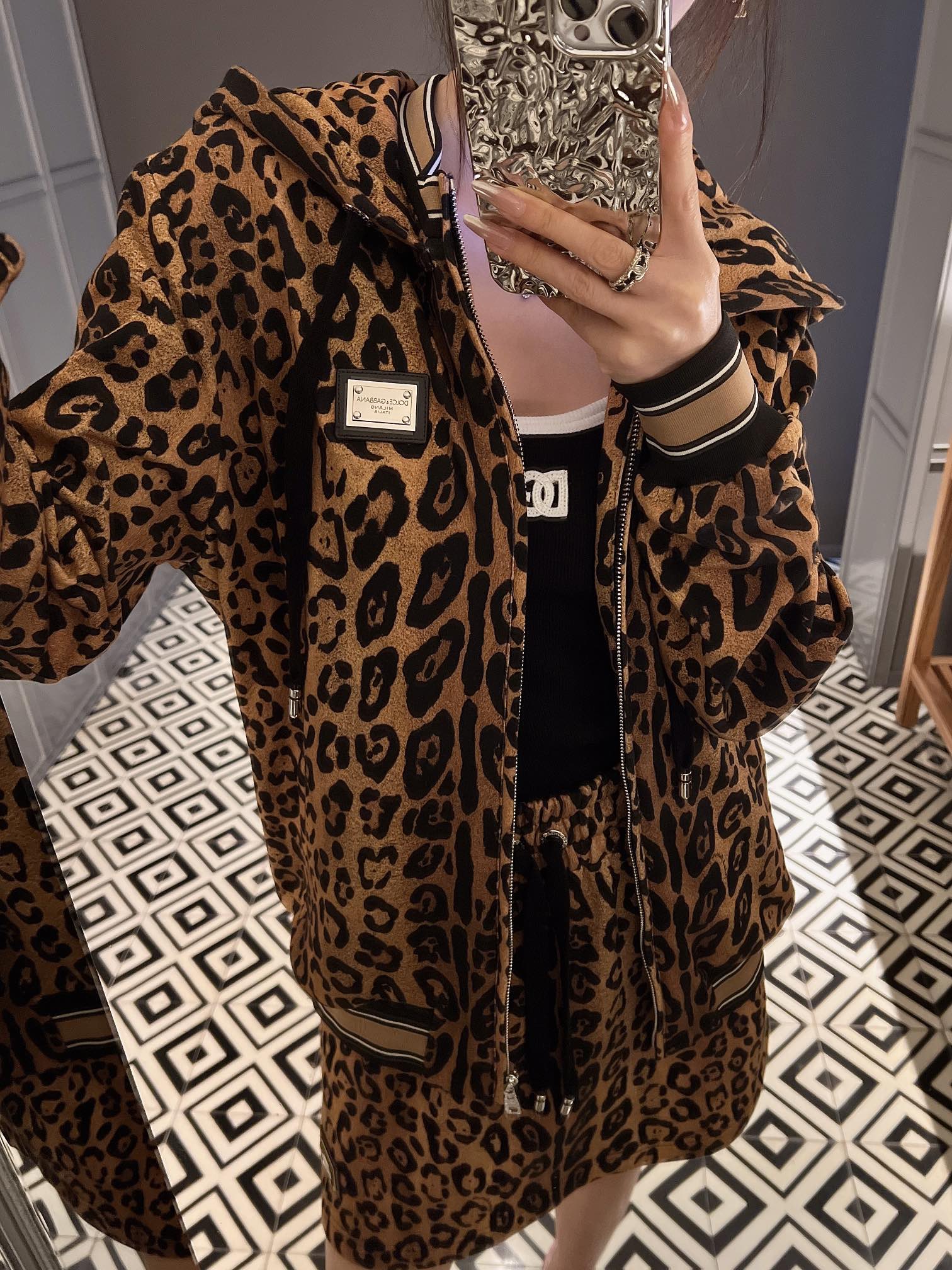 NIGO Dolce&Gabbana Women's Spring and Autumn Leopard Print Hooded Drawstring Zipper Long Sleeve Jacket #nigo72841