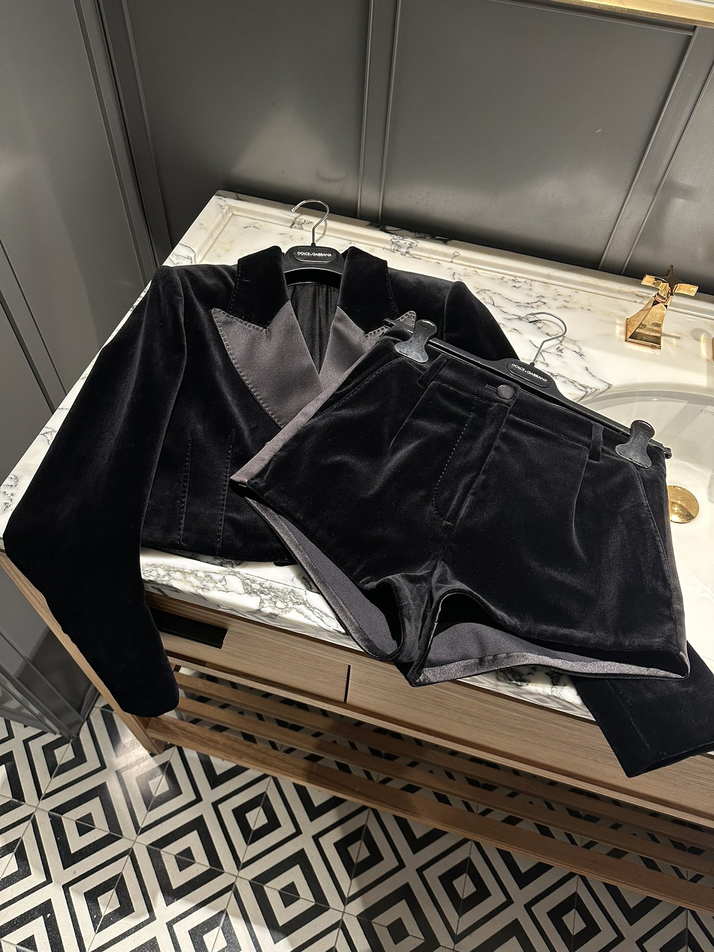 NIGO Dolce&Gabbana Women's Spring And Autumn Velvet Long Sleeve Short Blazer Jacket Casual High-Waisted Tuxedo Panties Shorts Ngvp #nigo9546