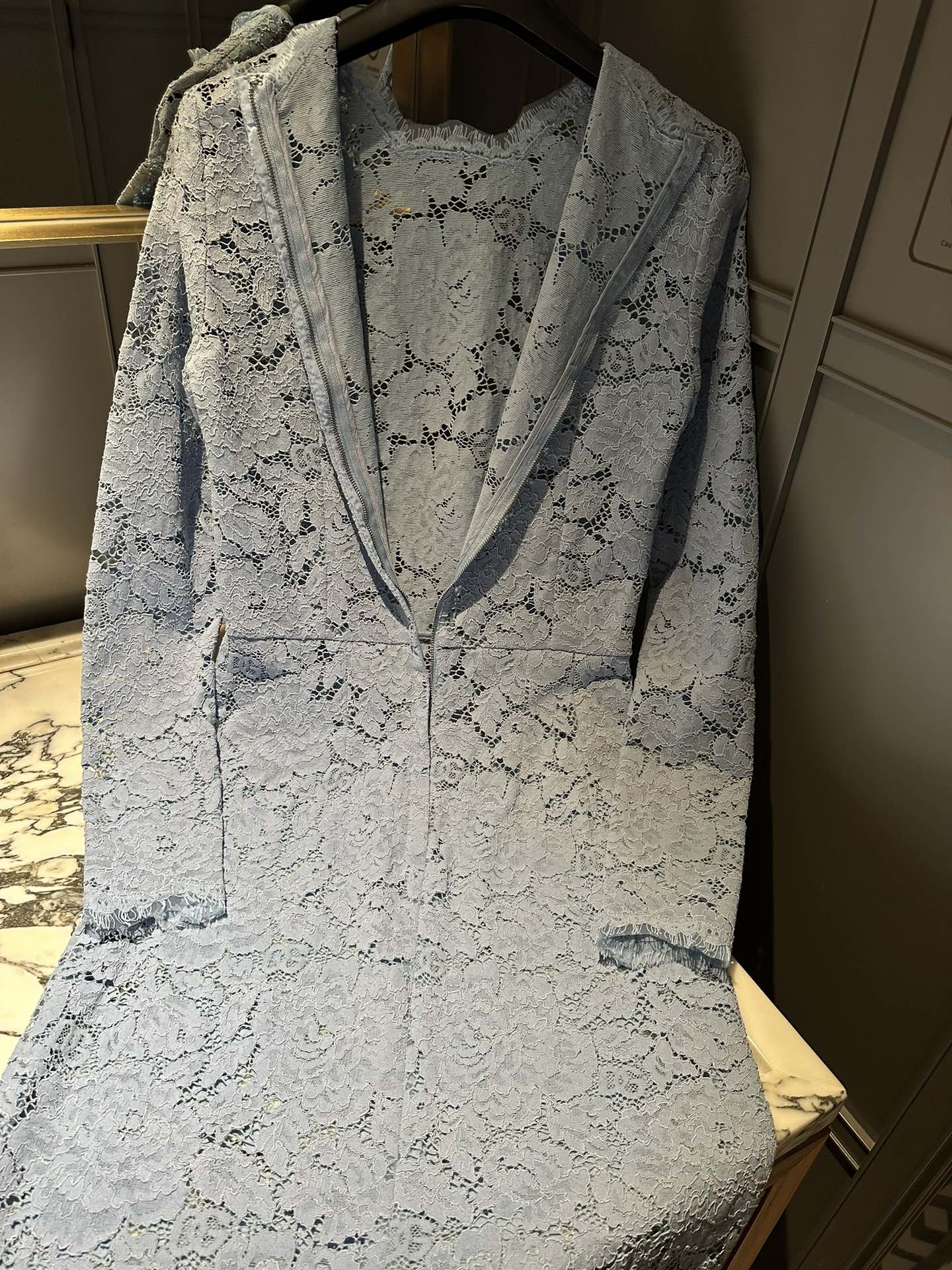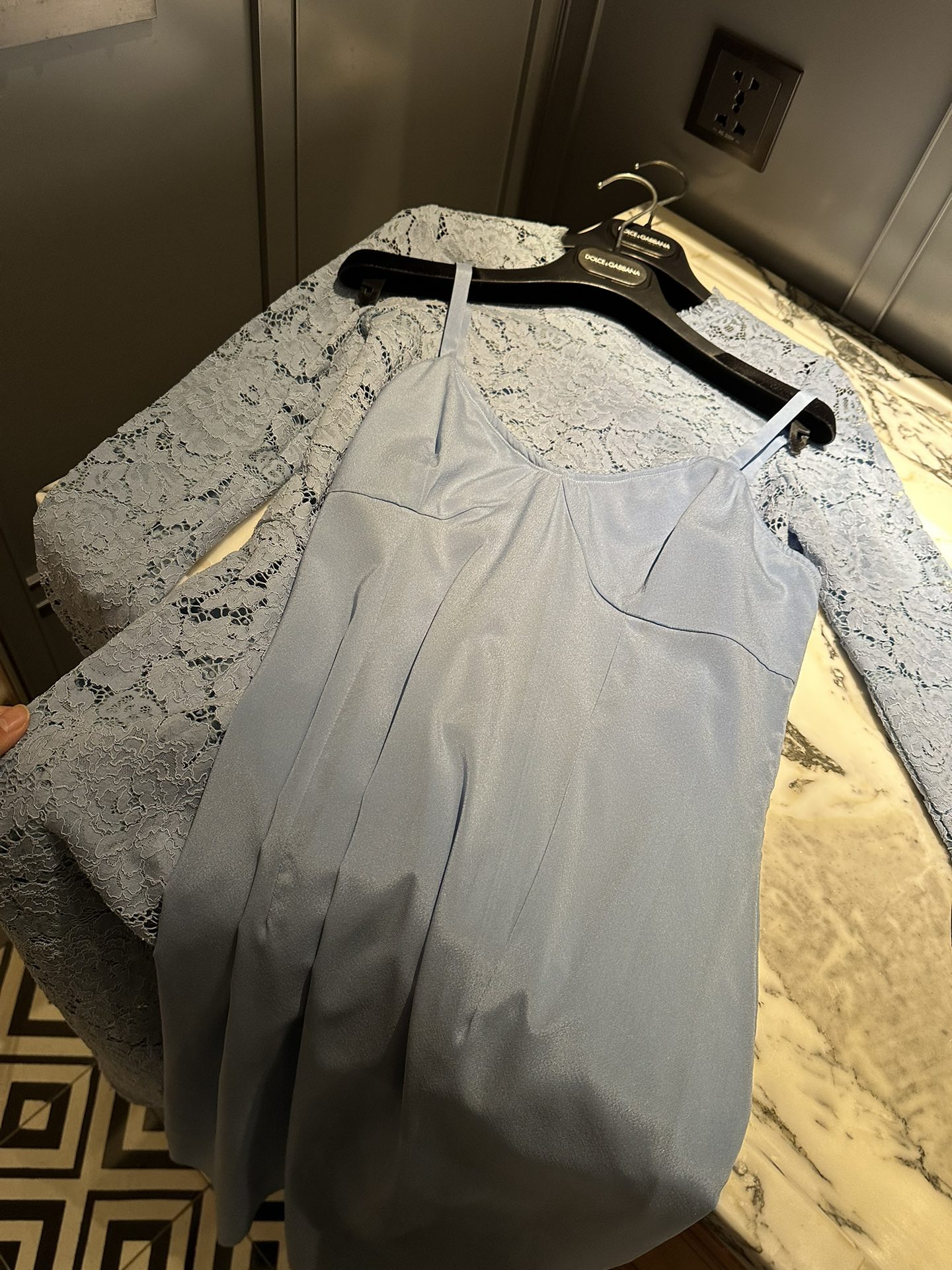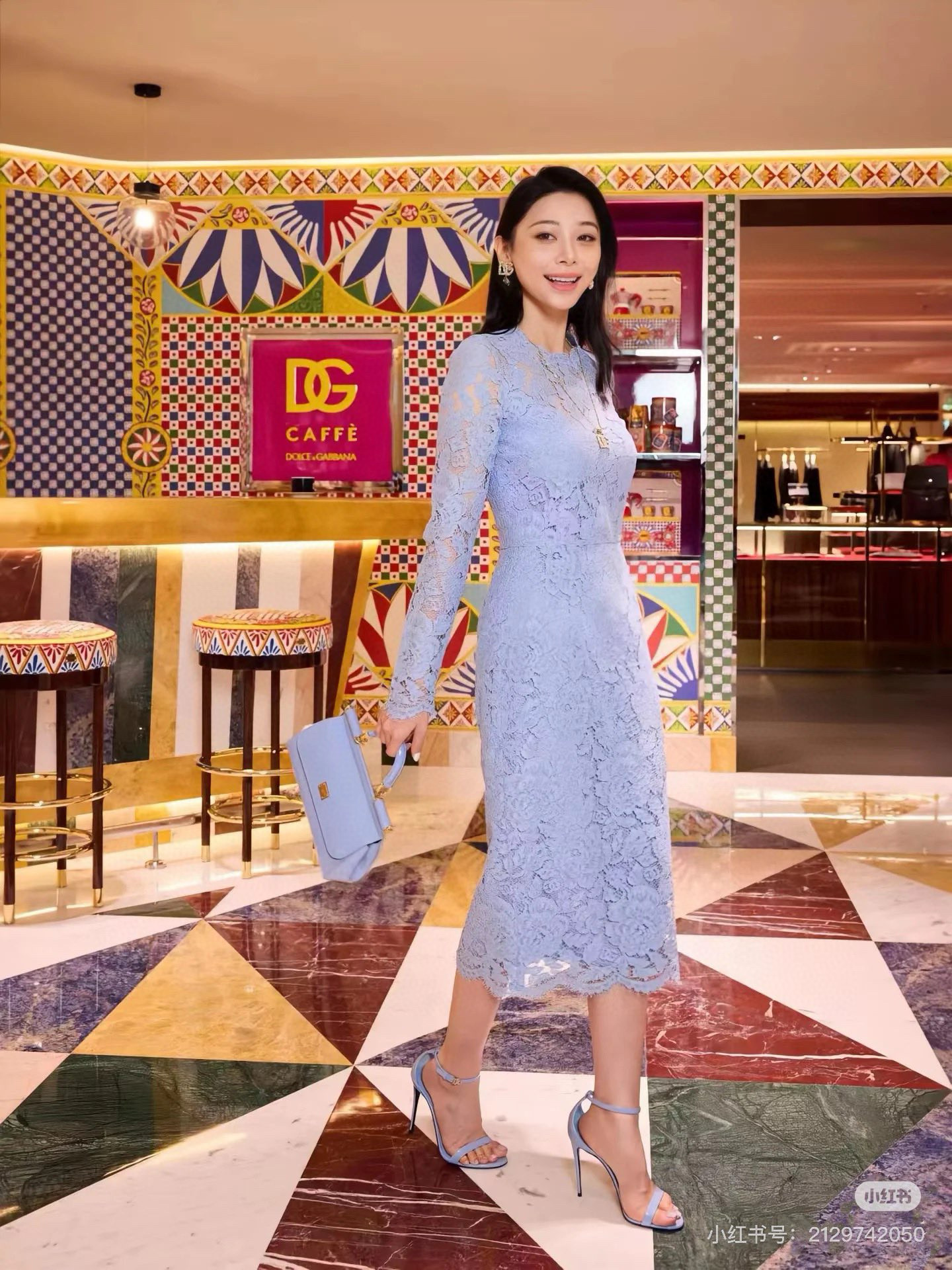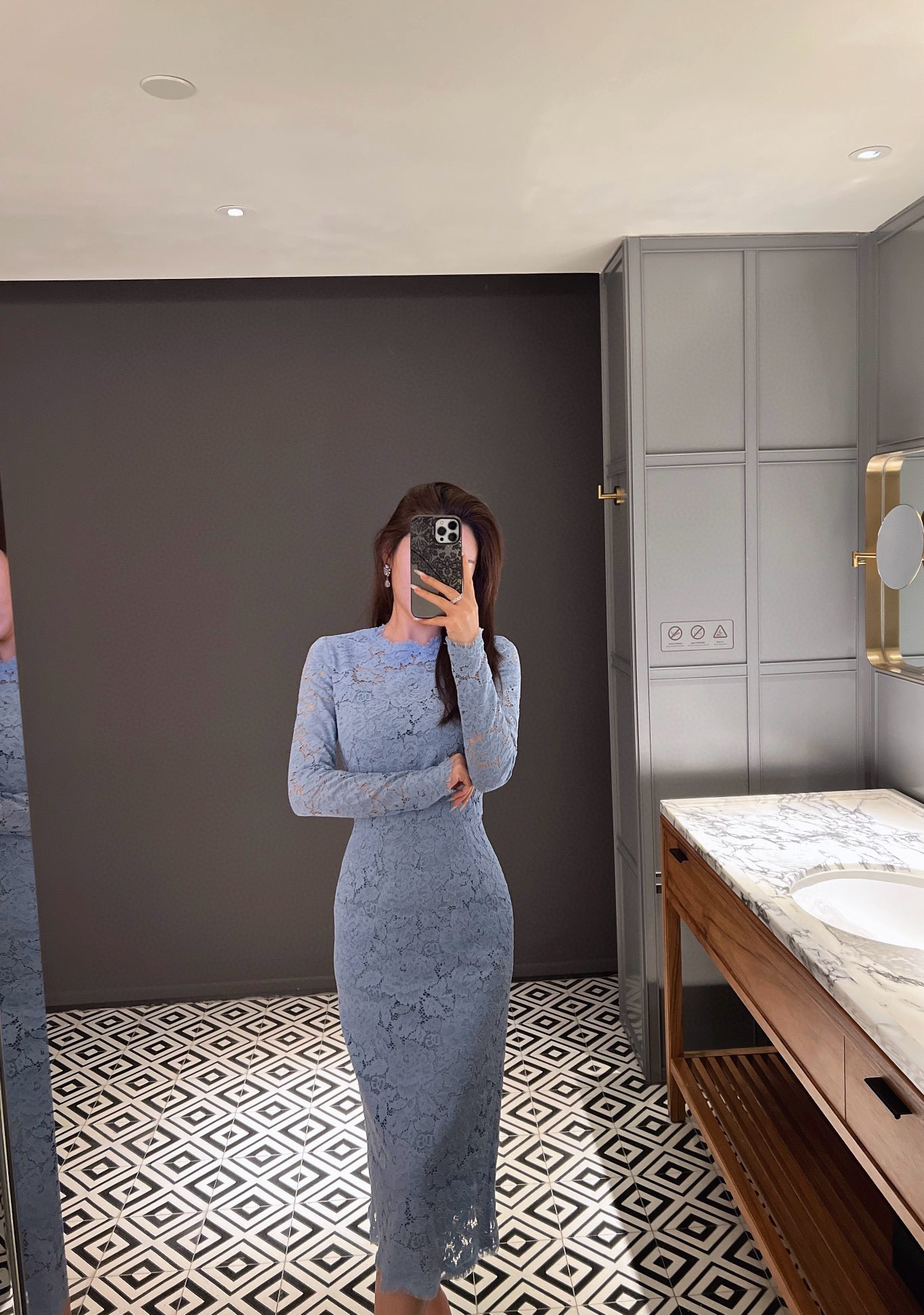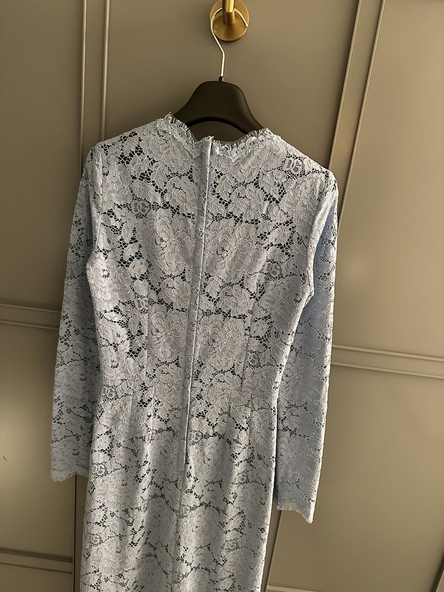 NIGO Dolce&Gabbana Women's Summer Blue Floral Lace Semi-sheer Round Neck Long Sleeve Dress Silk Camisole Lining #nigo75161