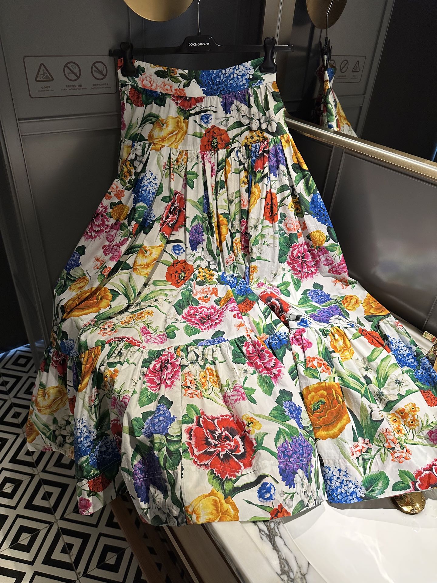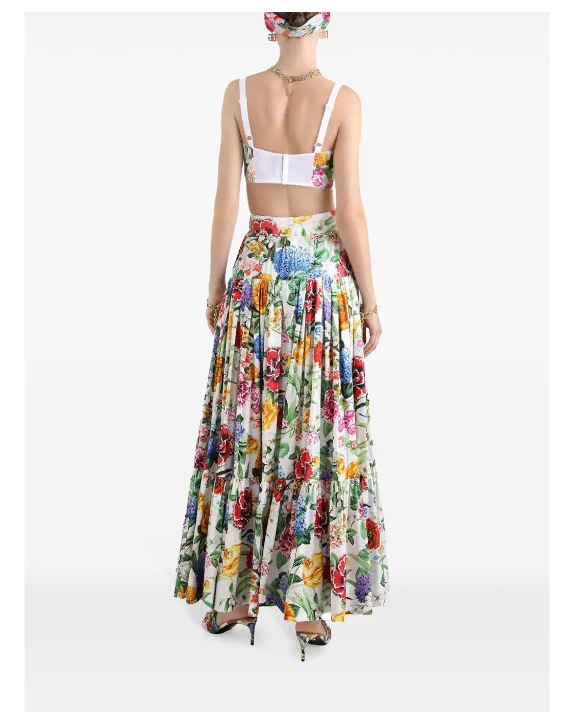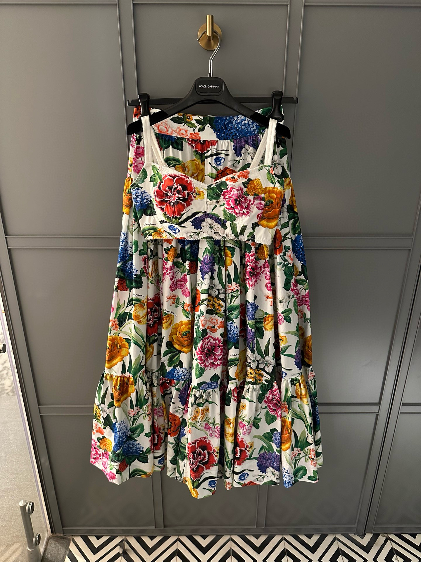 NIGO Dolce&Gabbana Women's Summer Colourful Floral Pattern Printed Zip Camisole Top Pleated Casual Half-body Skirt Set Suit #nigo76895