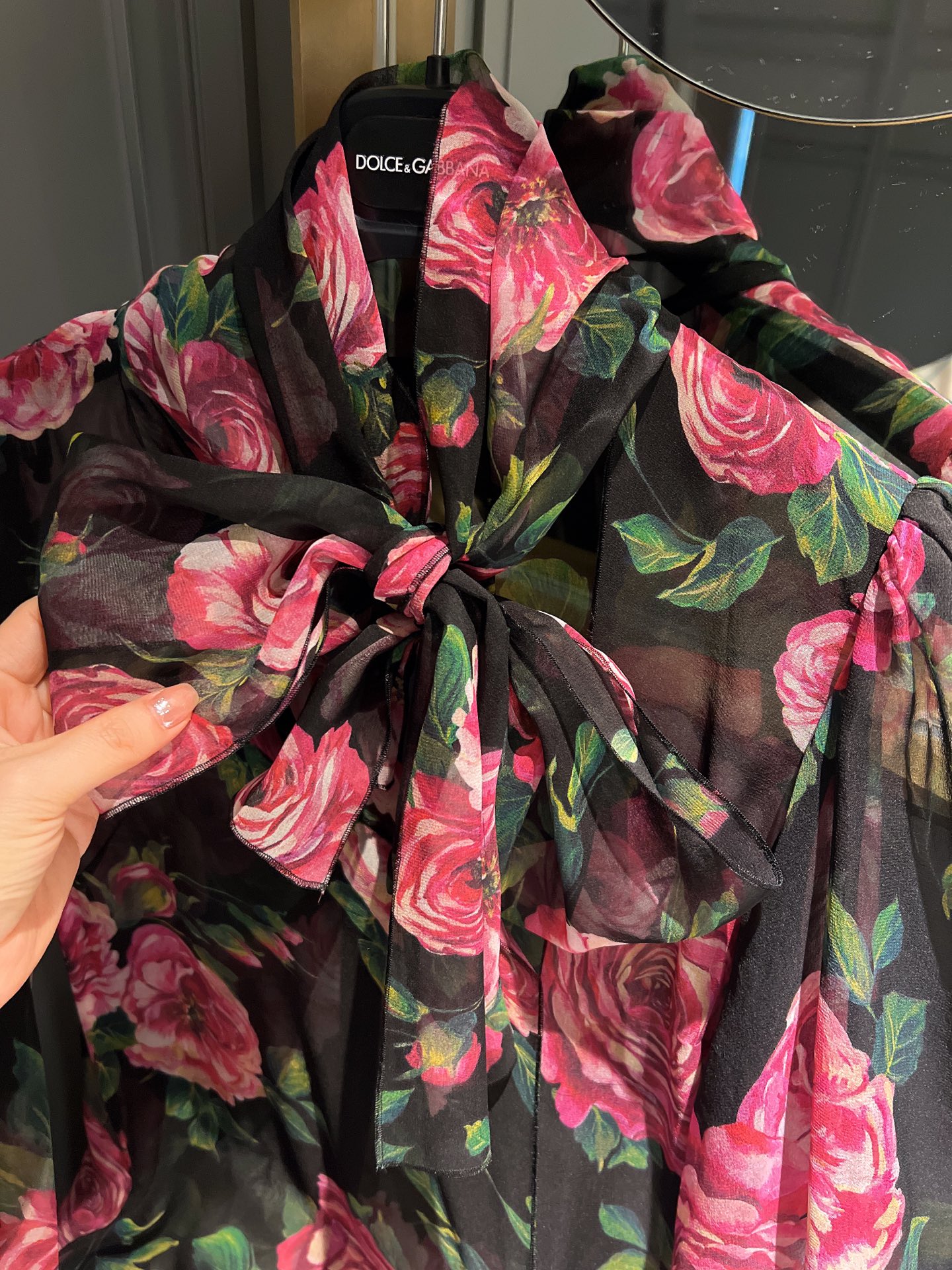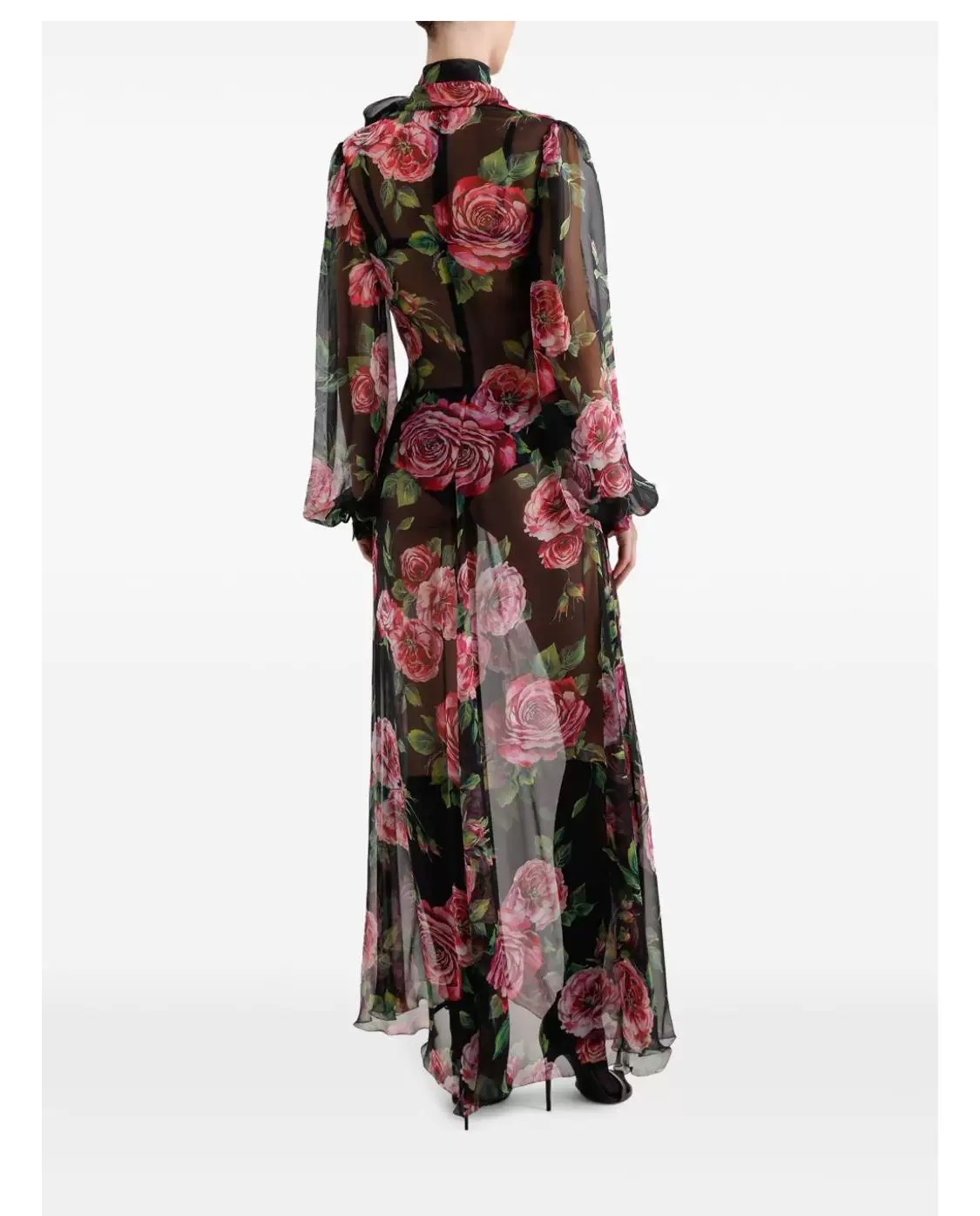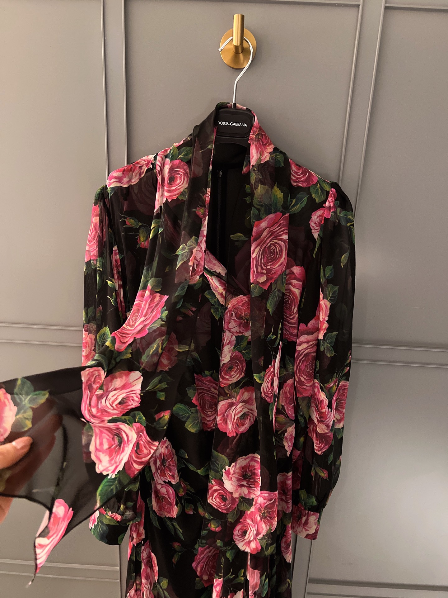 NIGO Dolce&Gabbana Women's Summer Floral Printed Half High Neck Tie Mid-Length Silk Long Sleeve Dresses Ngvp #nigo9996