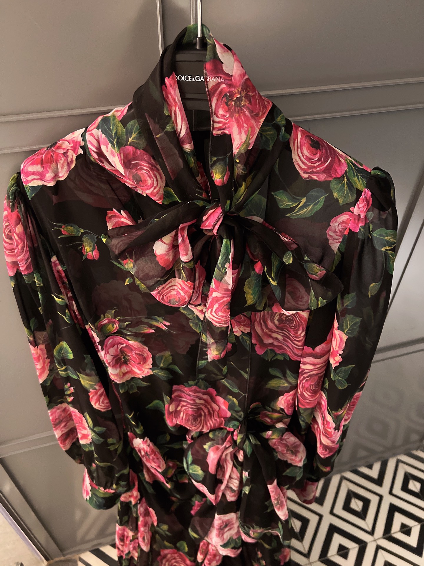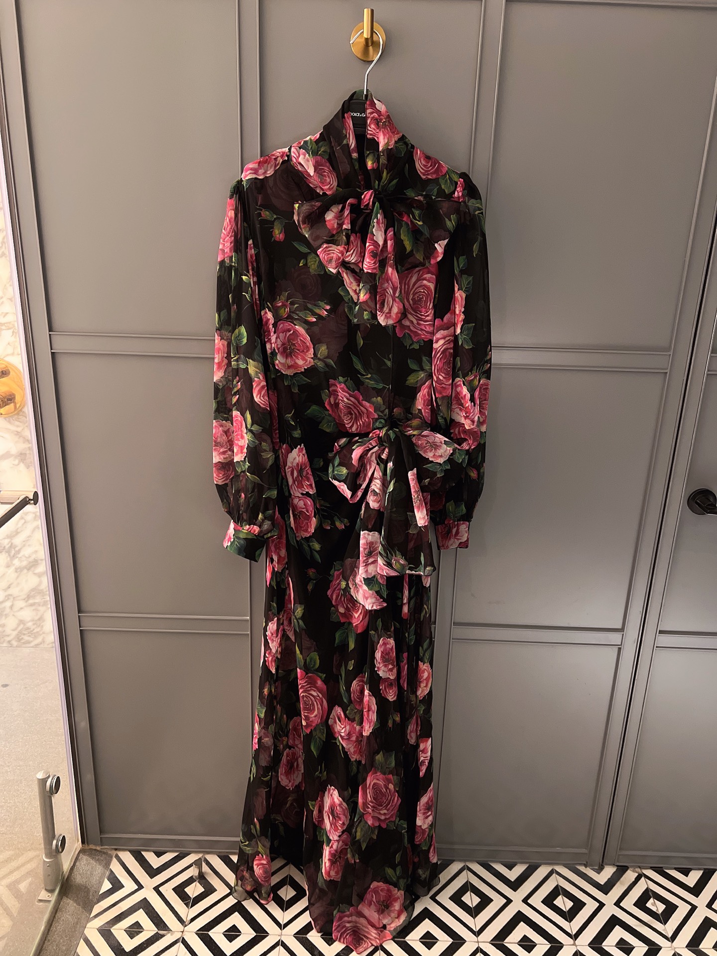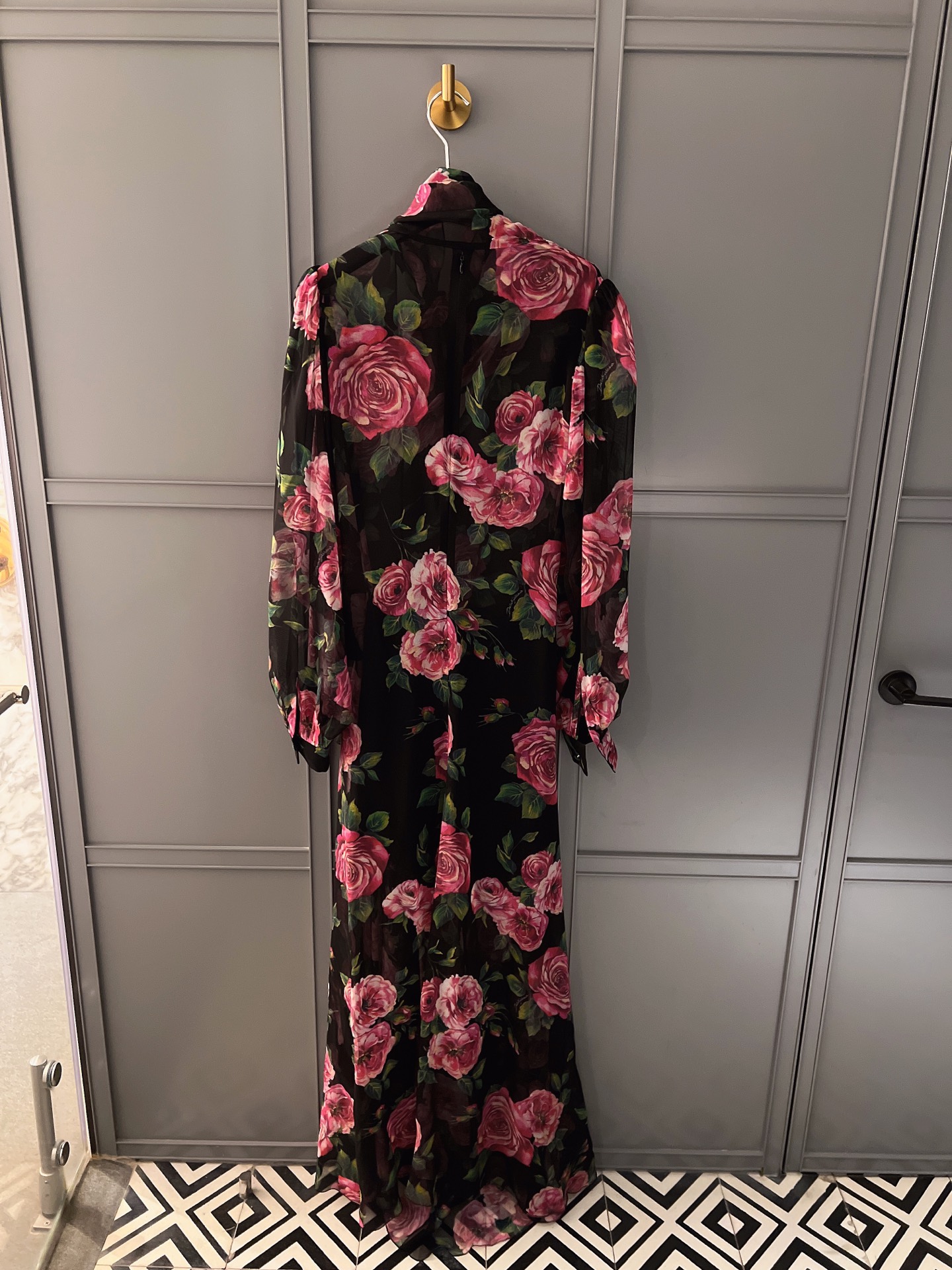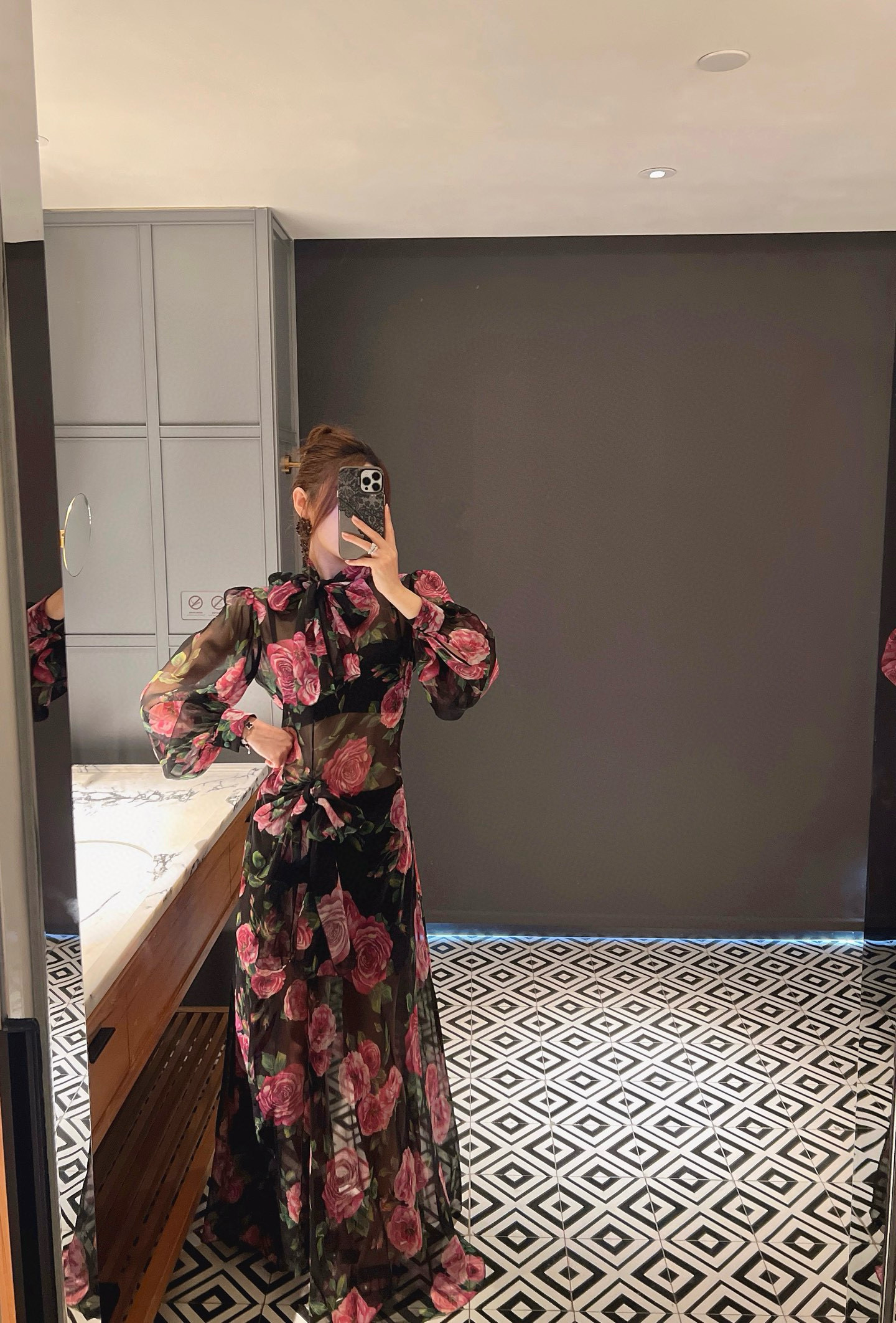 NIGO Dolce&Gabbana Women's Summer Floral Printed Half High Neck Tie Mid-Length Silk Long Sleeve Dresses Ngvp #nigo9996
