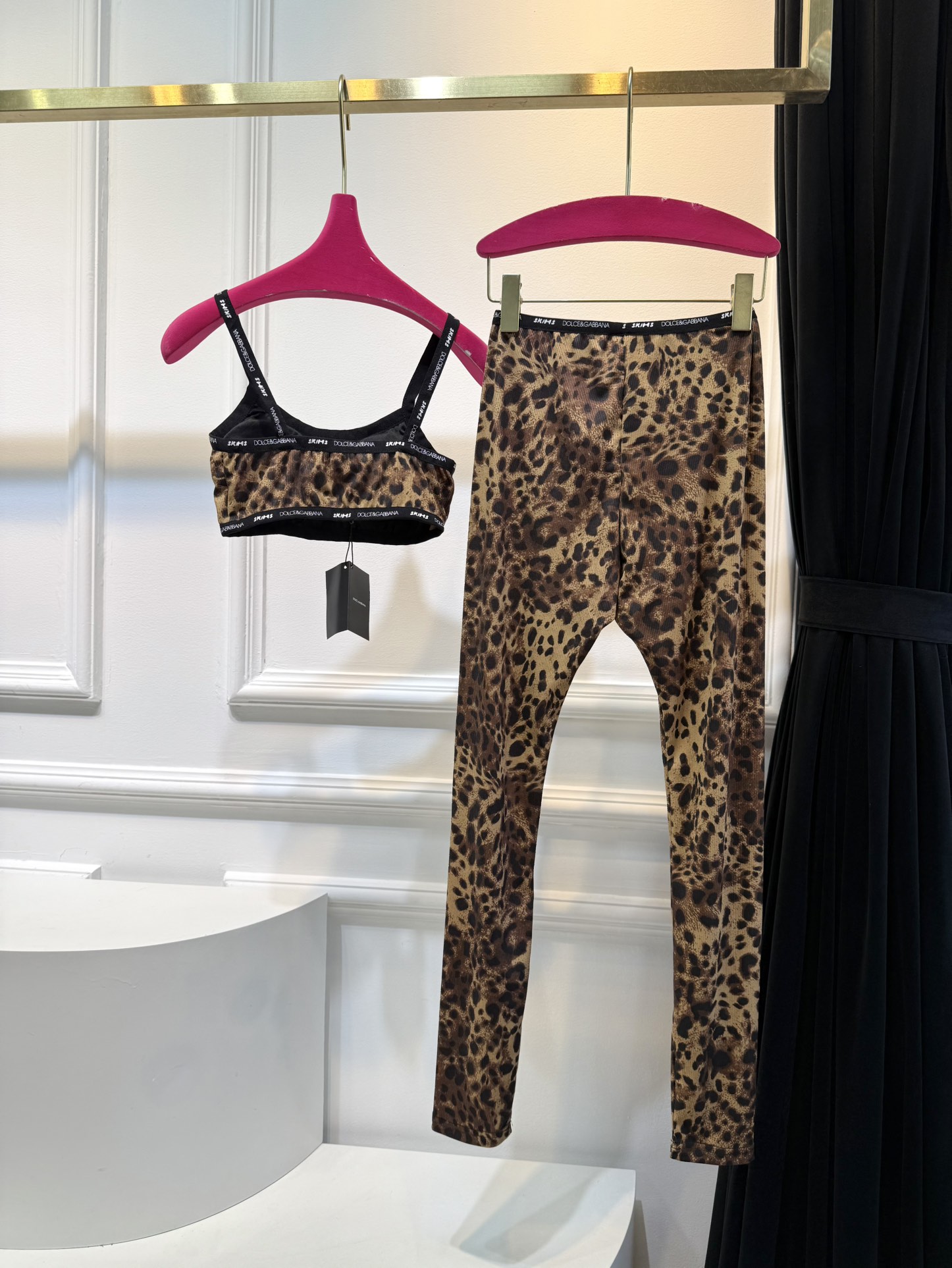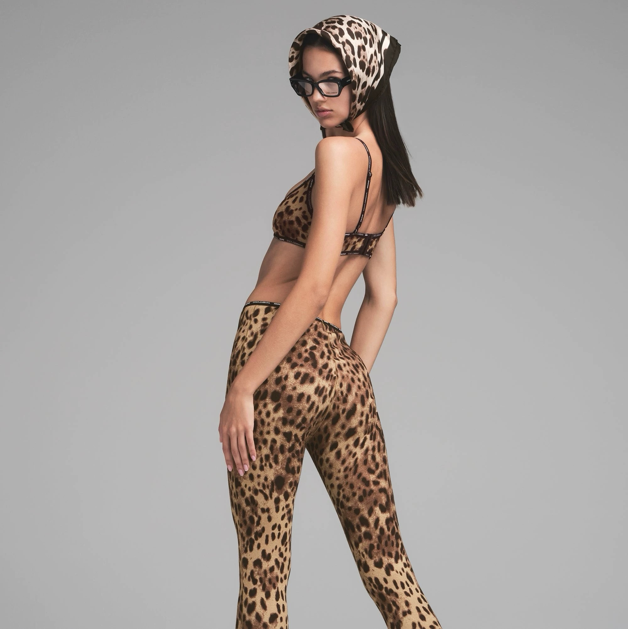 NIGO Dolce&Gabbana Women's Summer Leopard Print Adjustable Shoulder Strap Bra Slim High Waist Casual Pants Set Suit #nigo75621