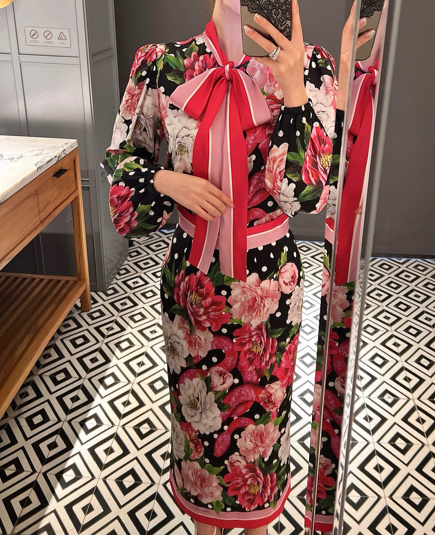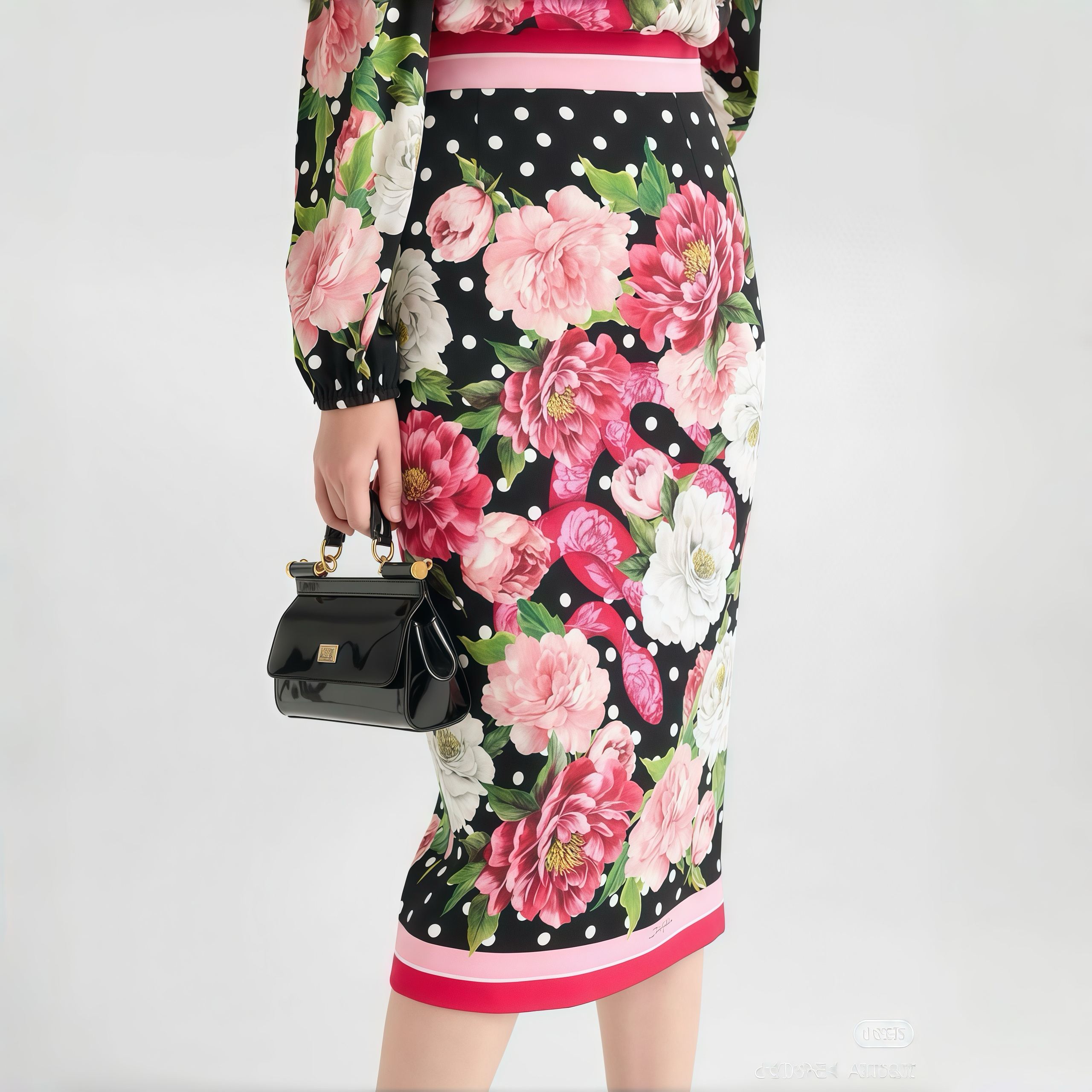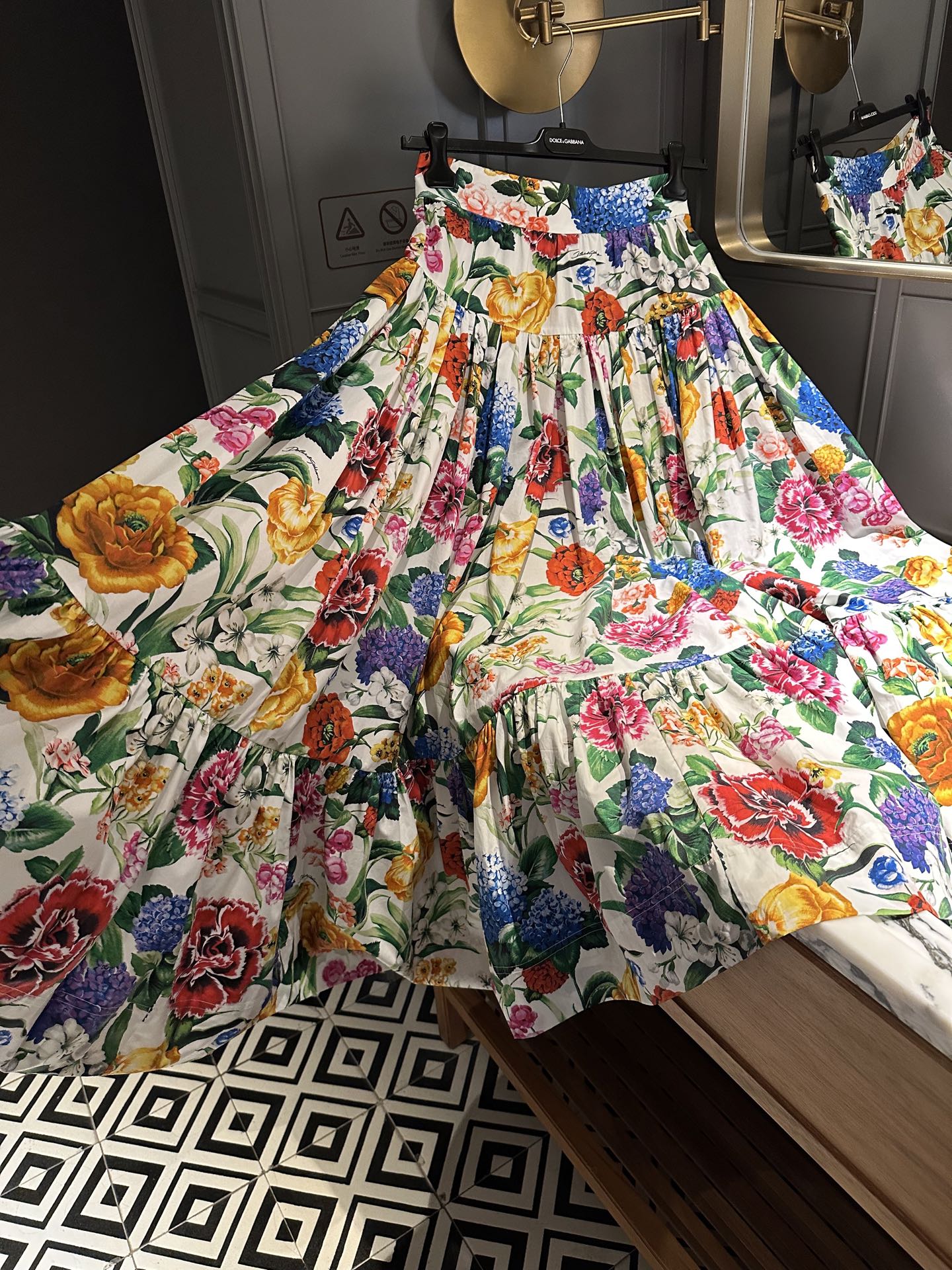 NIGO Dolce&Gabbana Women's Spring And Summer Floral Printing Lace-up Long Sleeve Silk Shirt Casual Half Skirt Ngvp #nigo1153