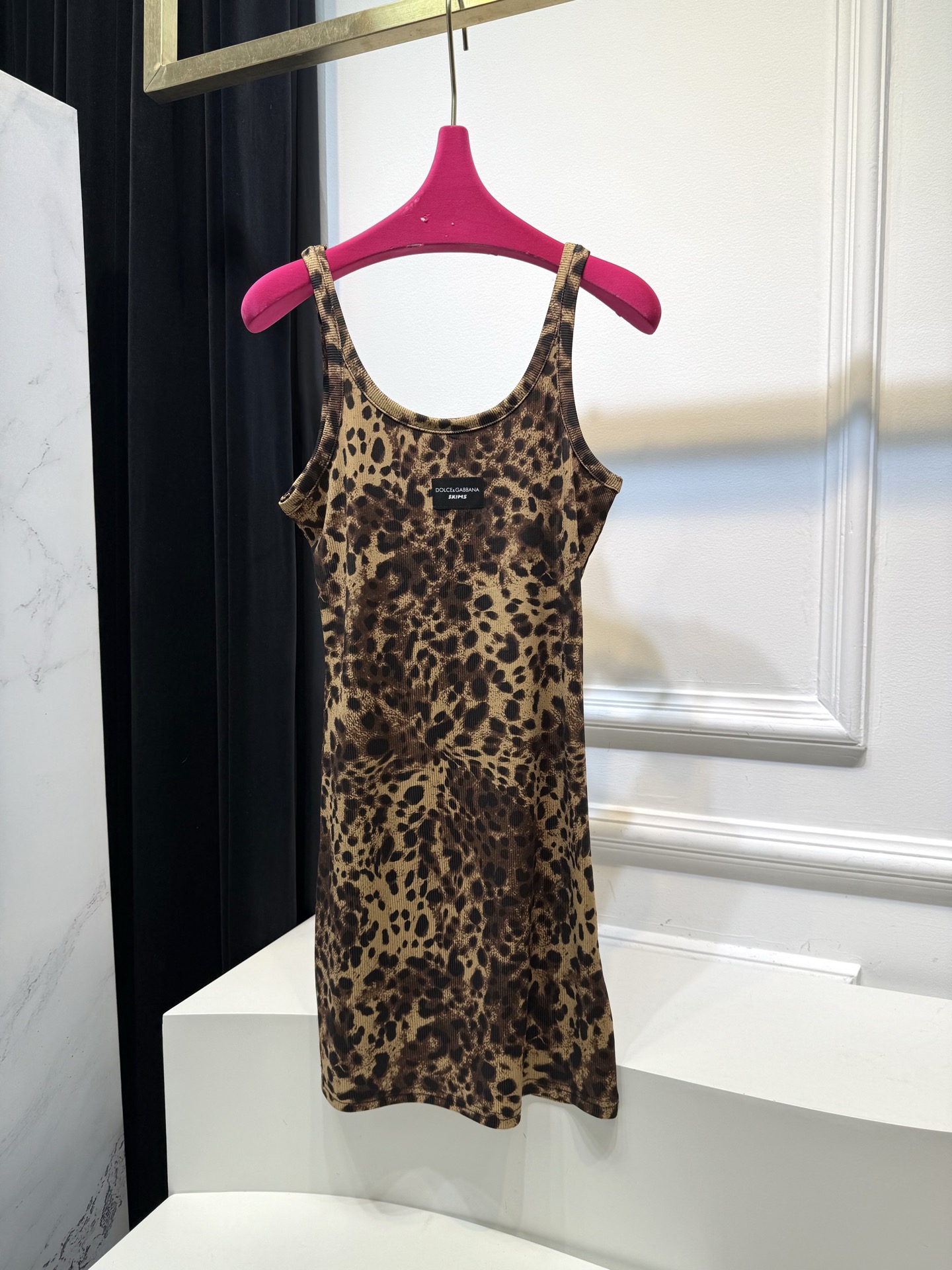 NIGO Dolce&Gabbana Women's Summer Ribbed Round Neck Slim Mini Halter Leopard Dresses #nigo75619