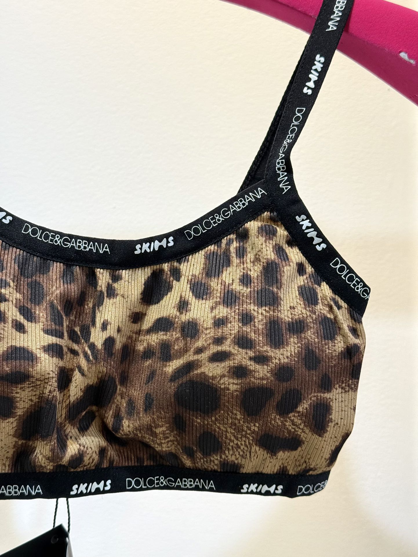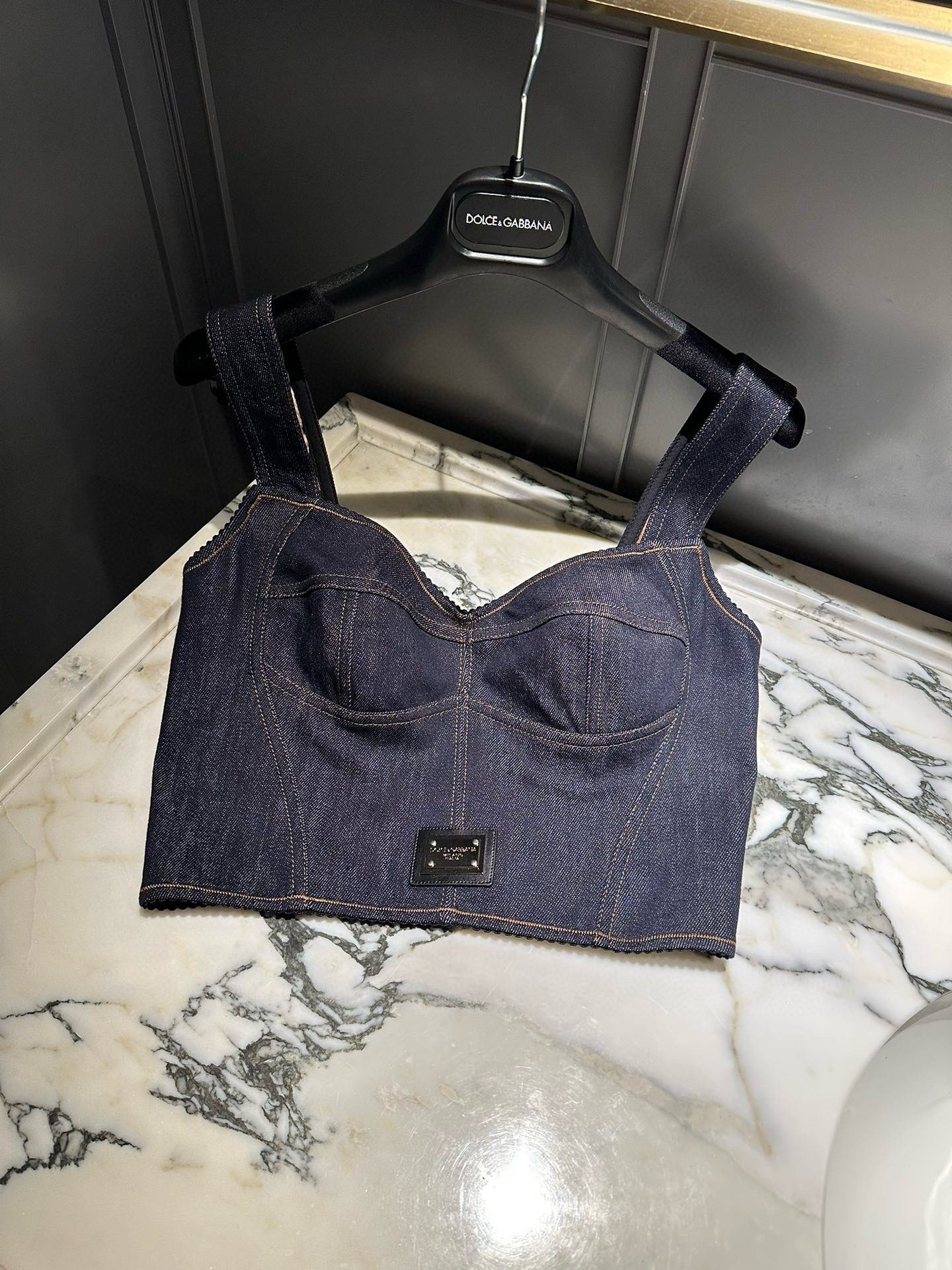 NIGO Dolce&Gabbana Women's Solid Colour Washed Denim Bra Style Suspender Jacket Lined Leopard Printed #nigo76862