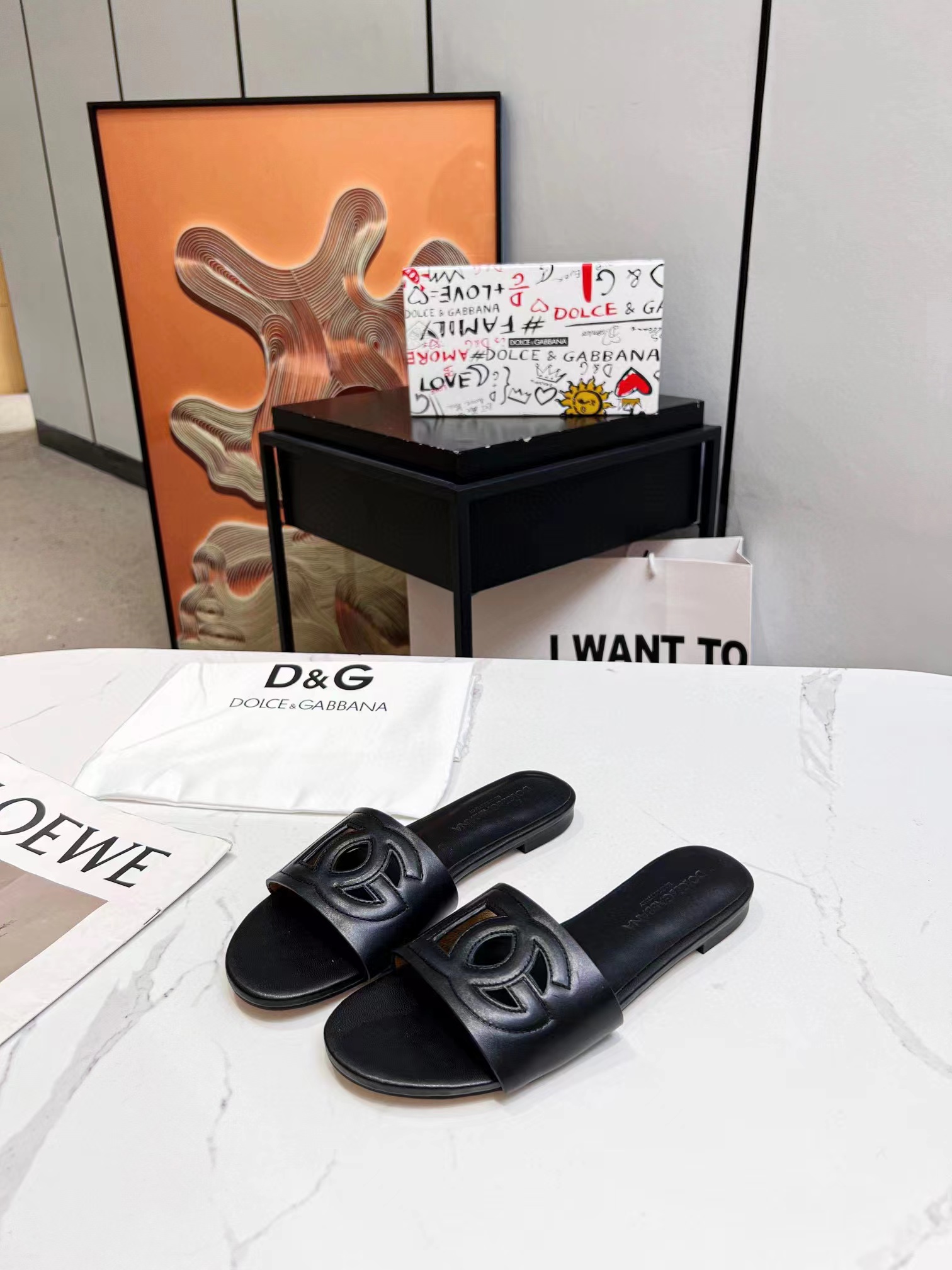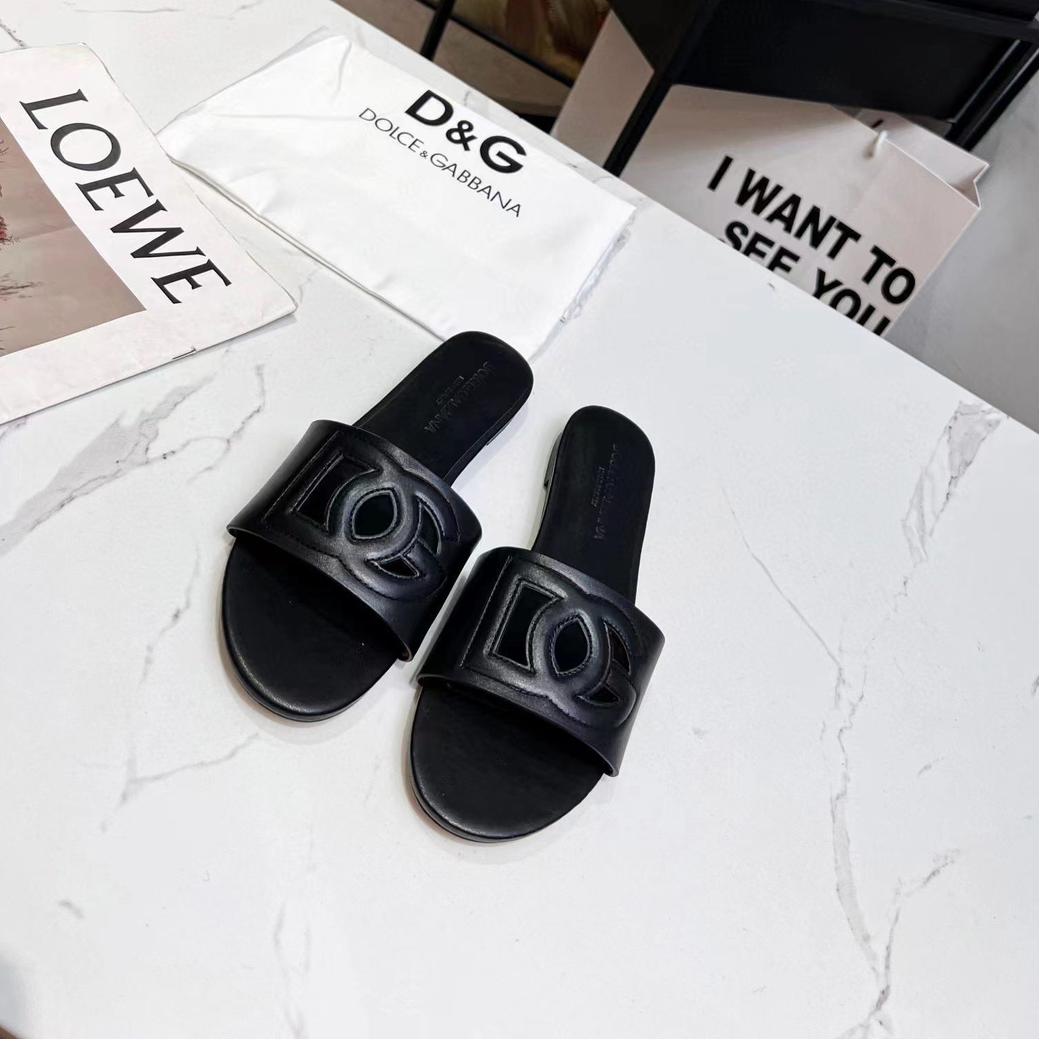 Dolce&Gabbana Women's Embossed Leather Flat Slippers Shoes #nigo51615