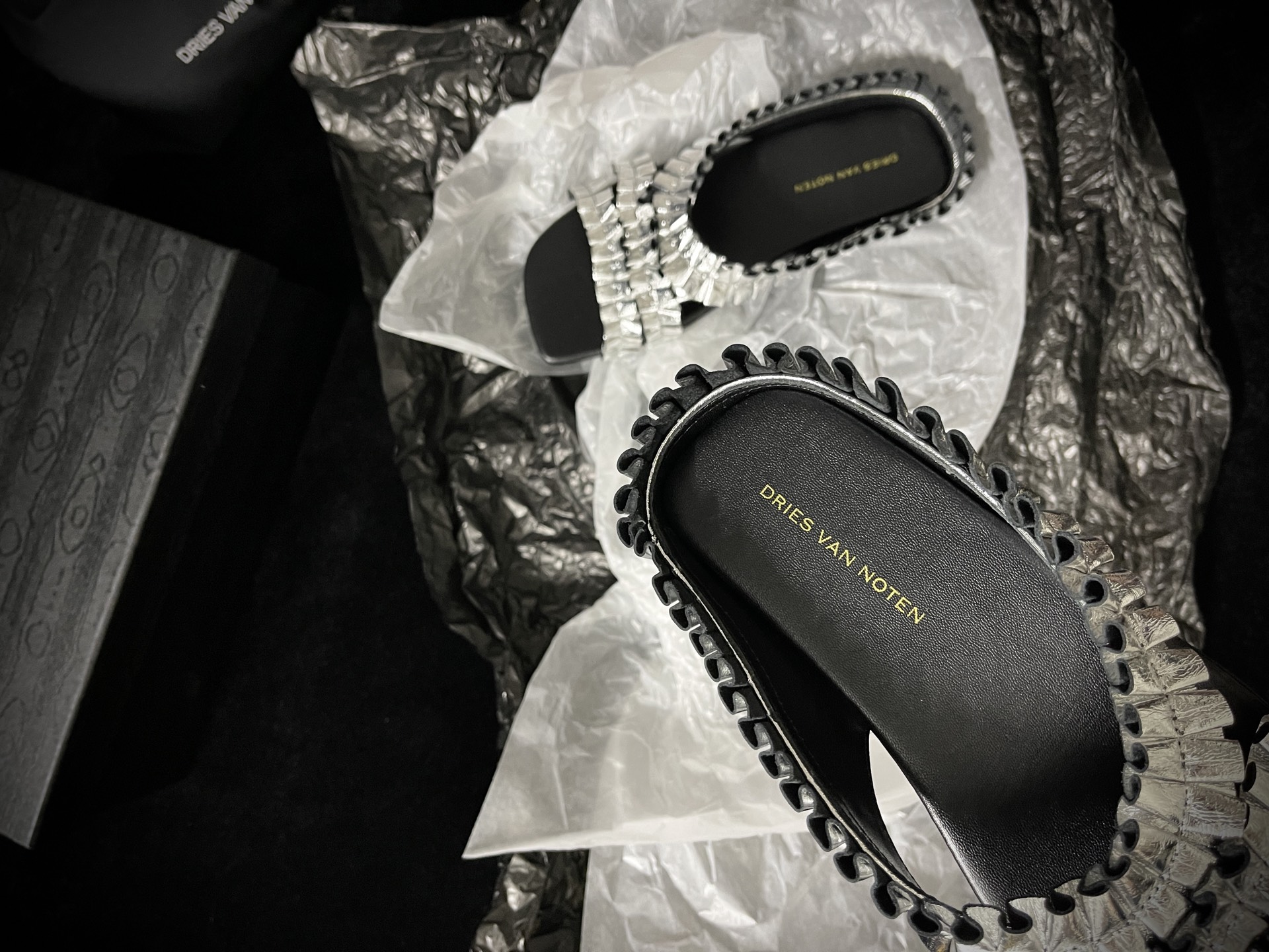 NIGO Dries Van Noten Women's Summer Solid Color Pleated Cowhide Design Flat Sandals Slippers Shoes #nigo75684