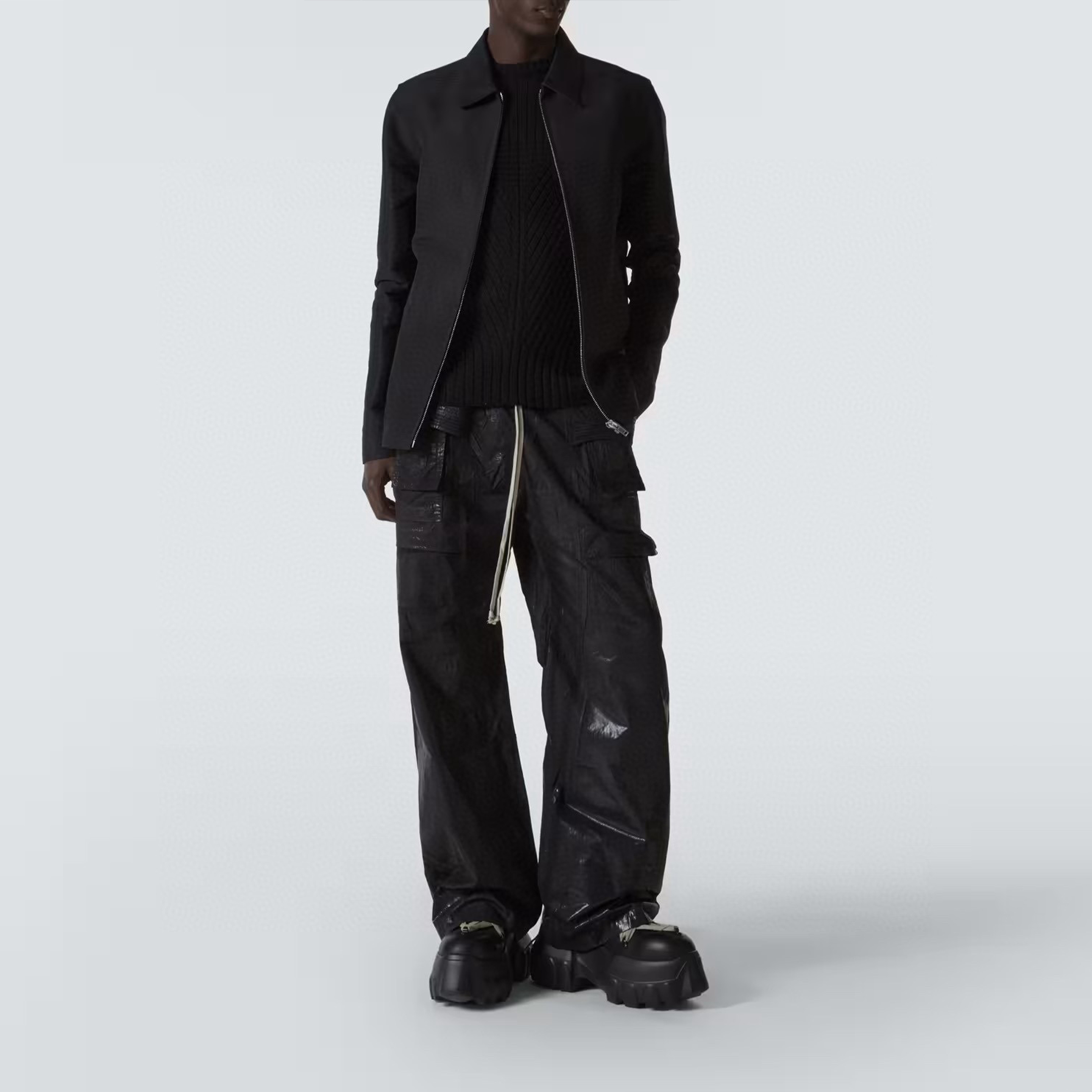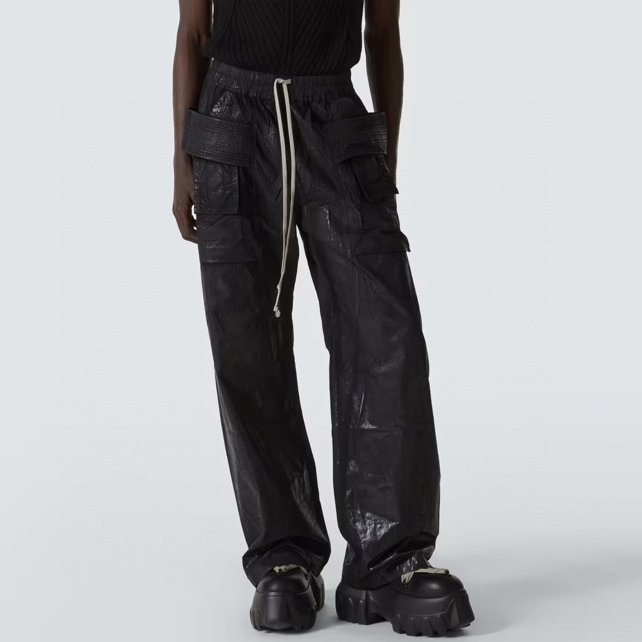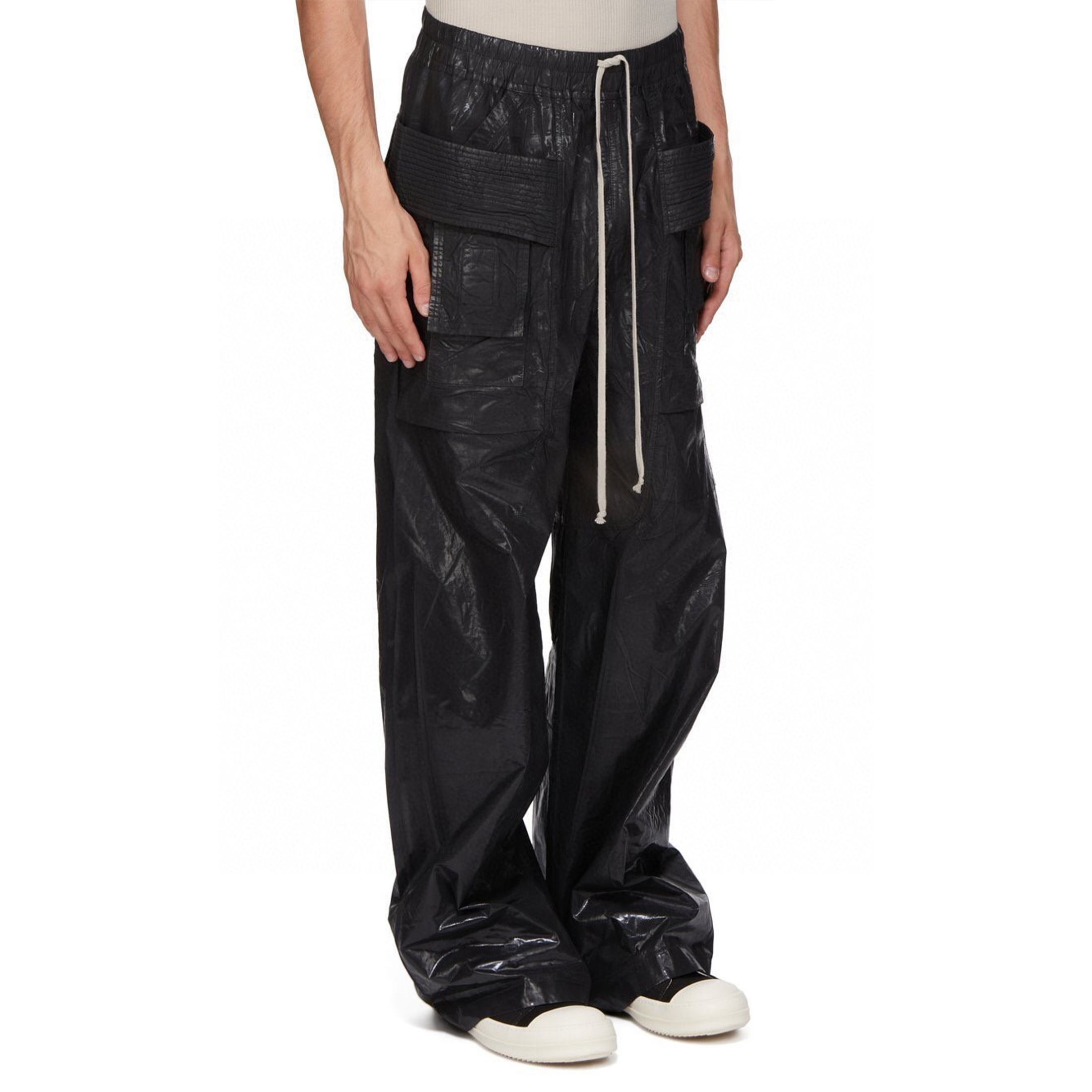 NIGO Rick Owens DRKSHDW Men's Spring Summer Waxed Double Loop Wide Leg Trousers Black High Street Shiny Loose Drawstring Straight Leg Trousers Drawstring Pants Ngvp #nigo1346