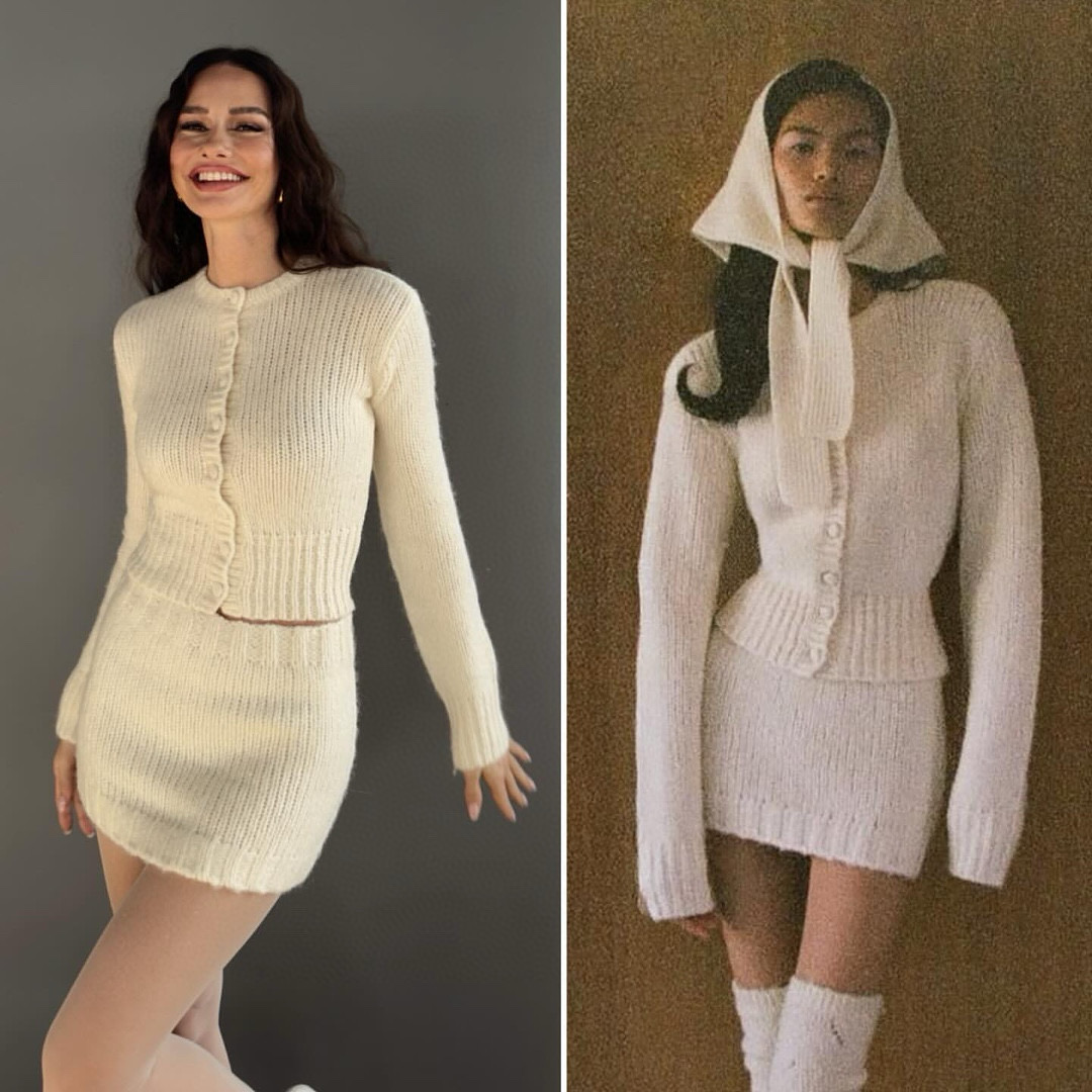 NIGO Helsa Women's Autumn And Winter Fashion Exquisite Suit Waisted Short Top Cardigan Hip Slim Daily Knit Skirt Black White Temperament Set Ngvp #nigo2475