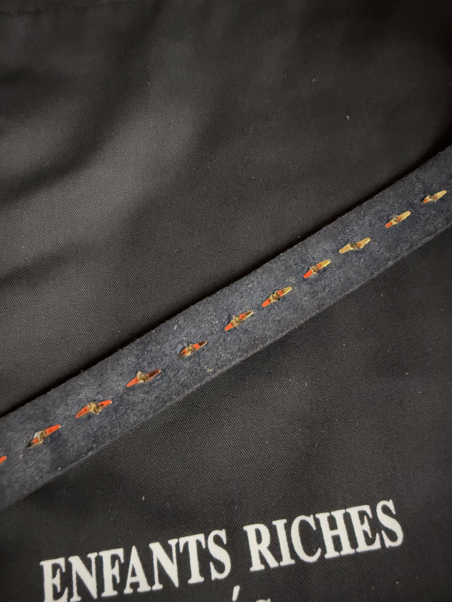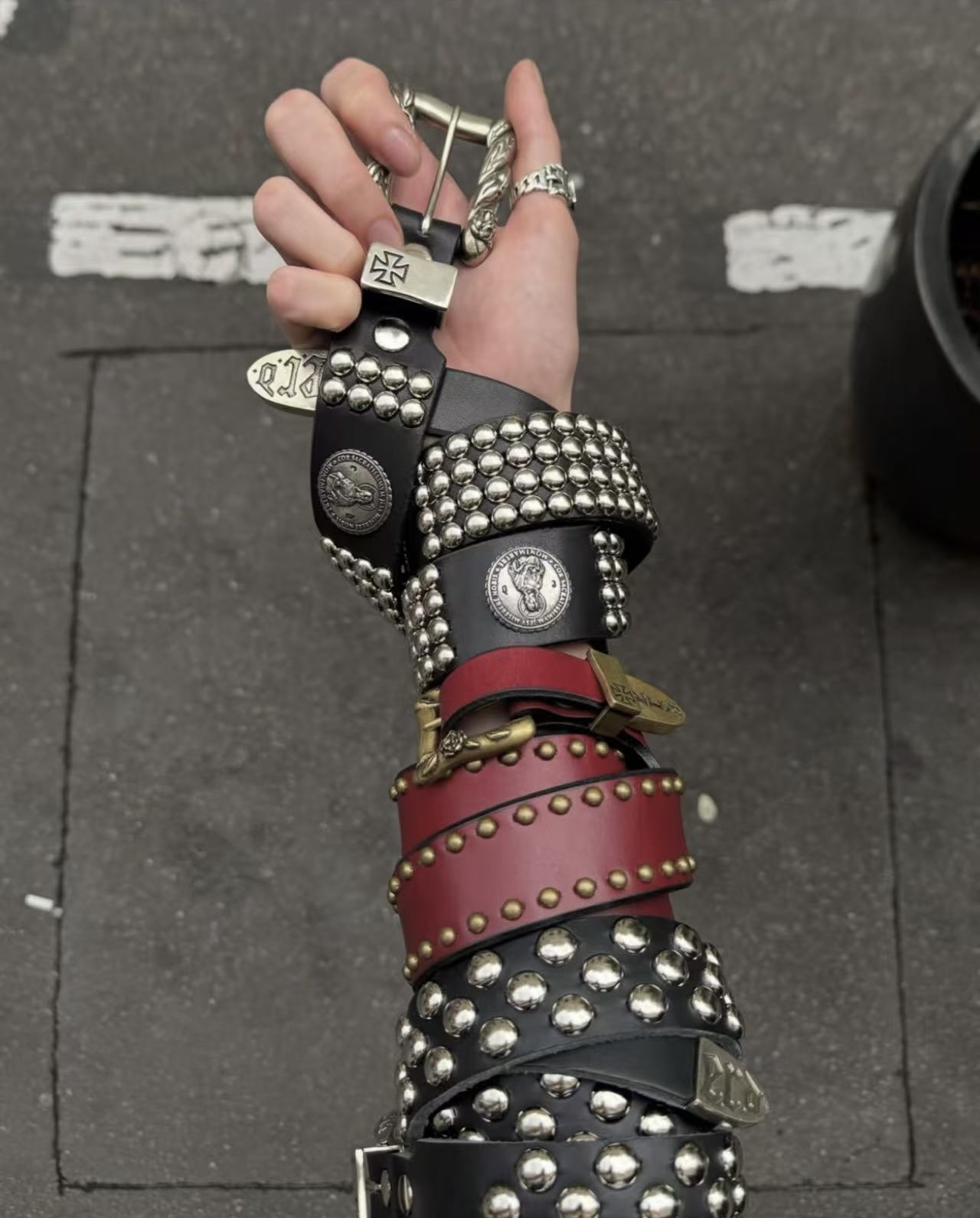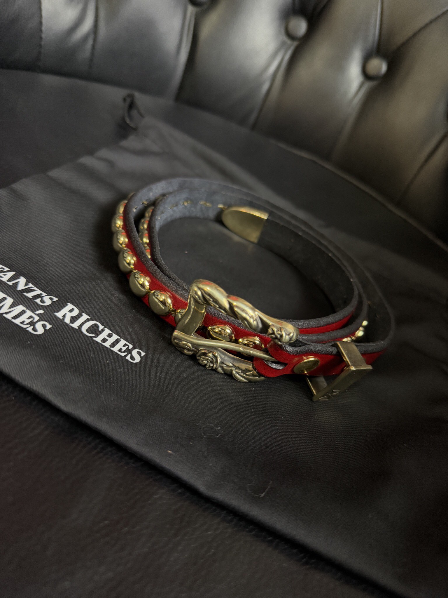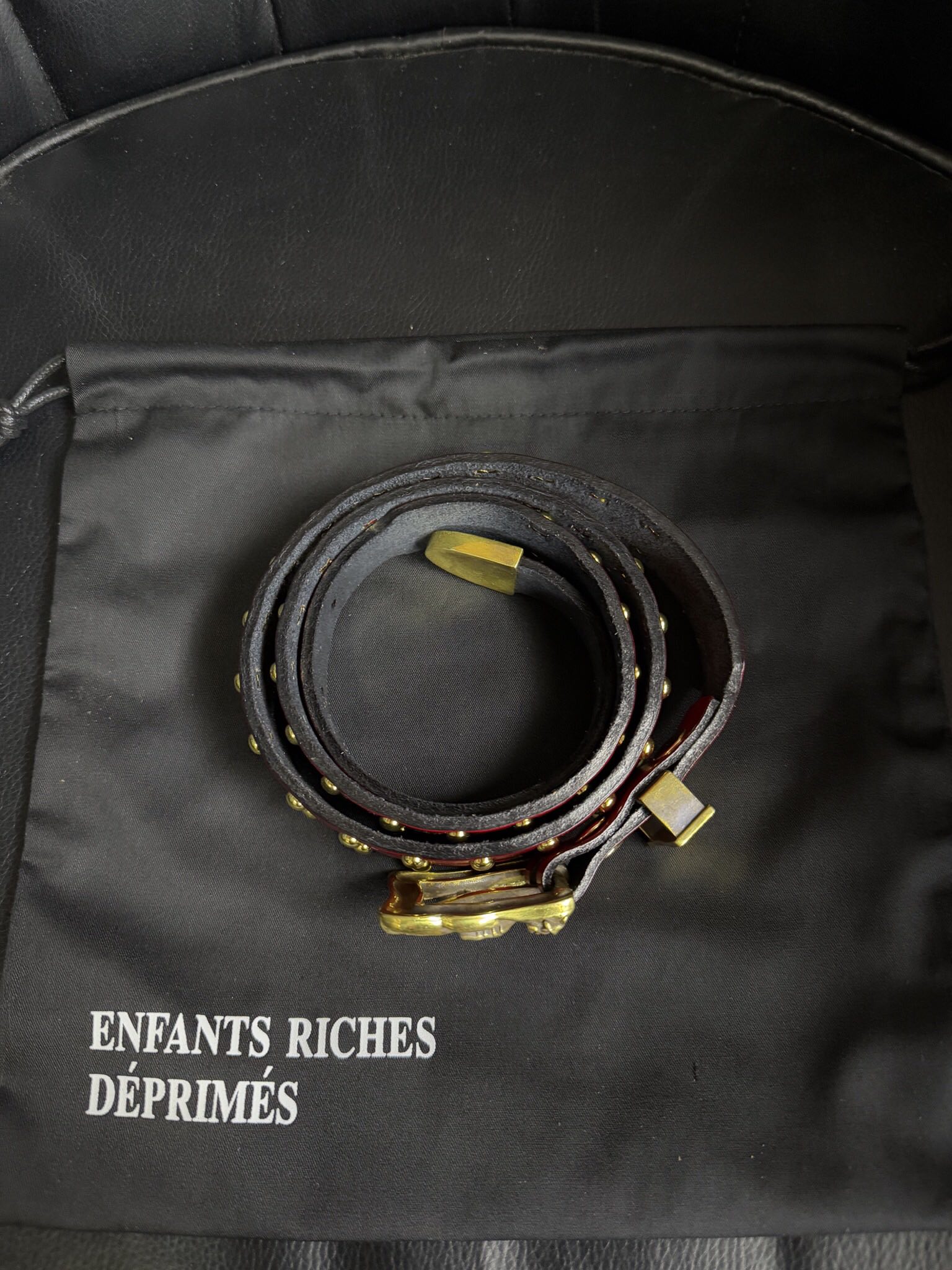 NIGO Enfants Riches Deprimes Burgundy Double Row Rivets Belt Leather Retro Old Carved Logo Belt Punk Metal Belt 2CM Accessories Ngvp #nigo2188