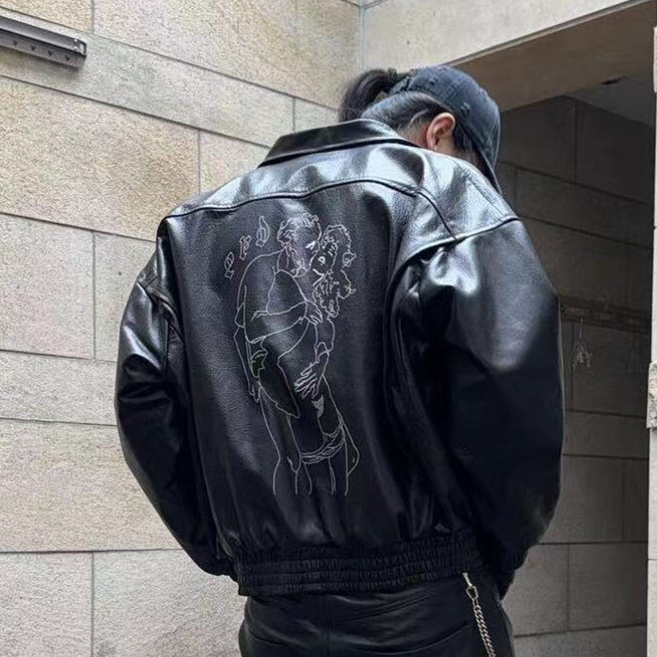 NIGO Enfants Riches Deprimes Men's Fall And Winter Fashion High Street Embroidery Zipper Leather Jacket Lapel Casual Temperament Jacket #nigo71311