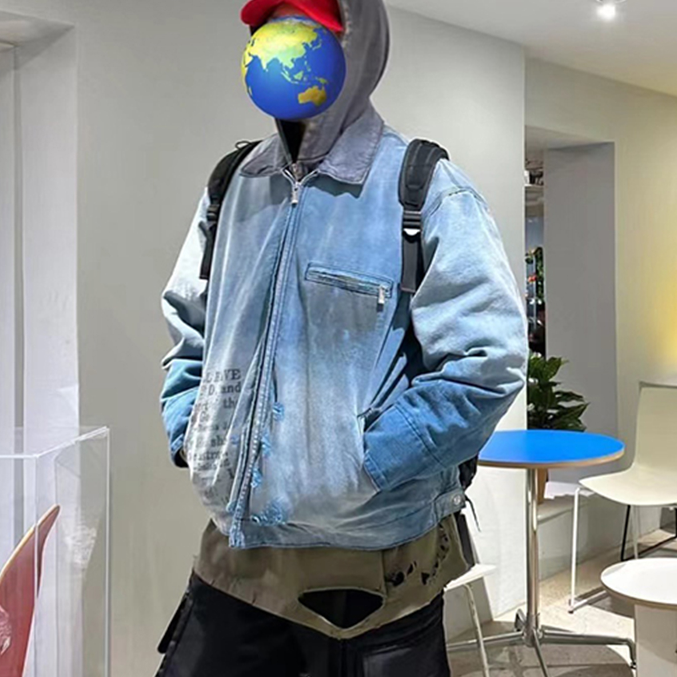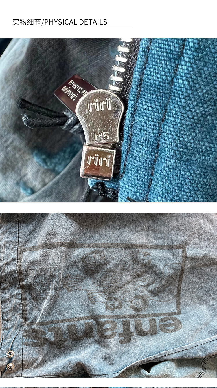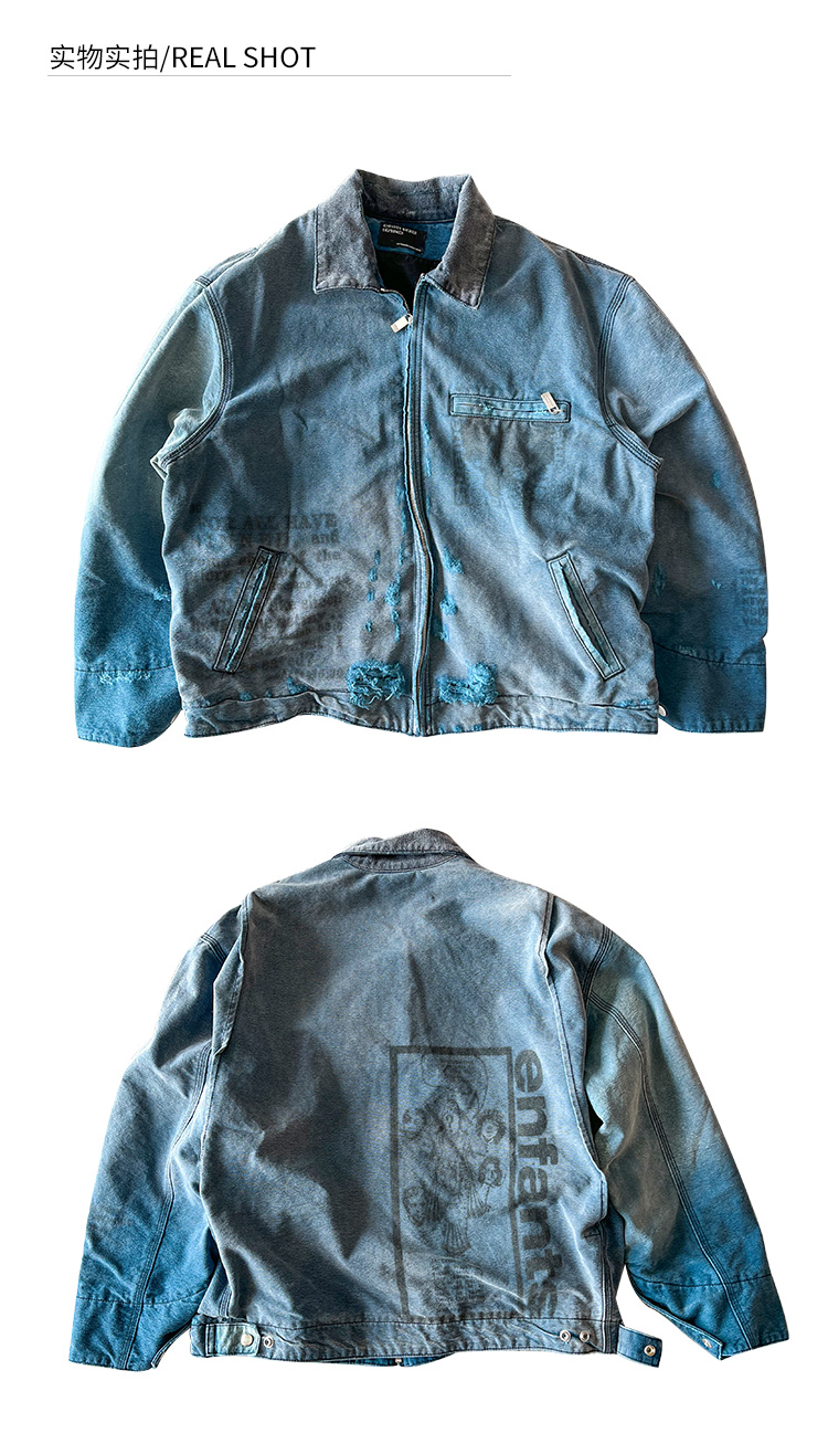 NIGO Enfants Riches Deprimes Men's Spring and Autumn Washed Damaged Long sleeved Lapel Blue Loose Work Jacket Ngvp #nigo7918