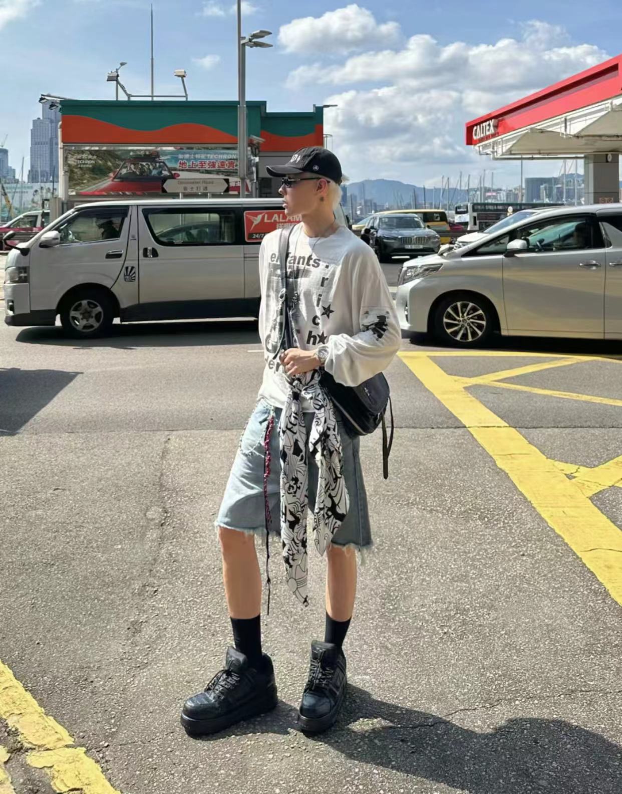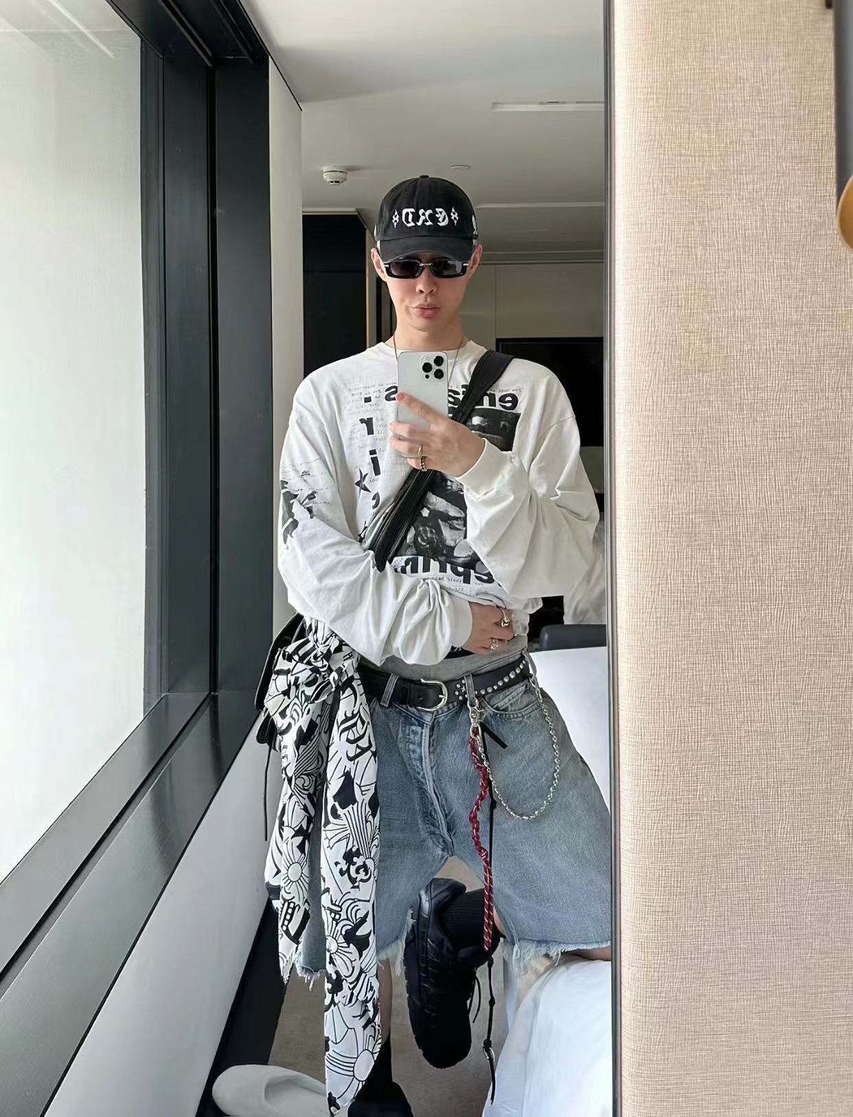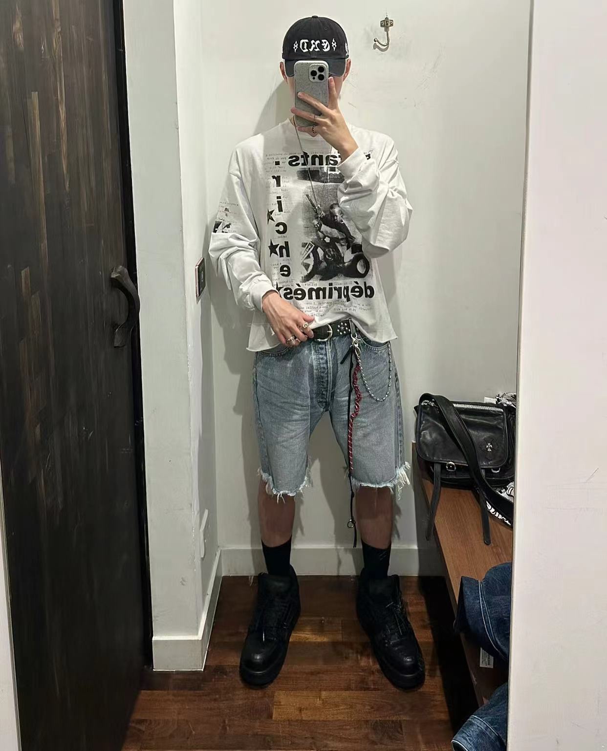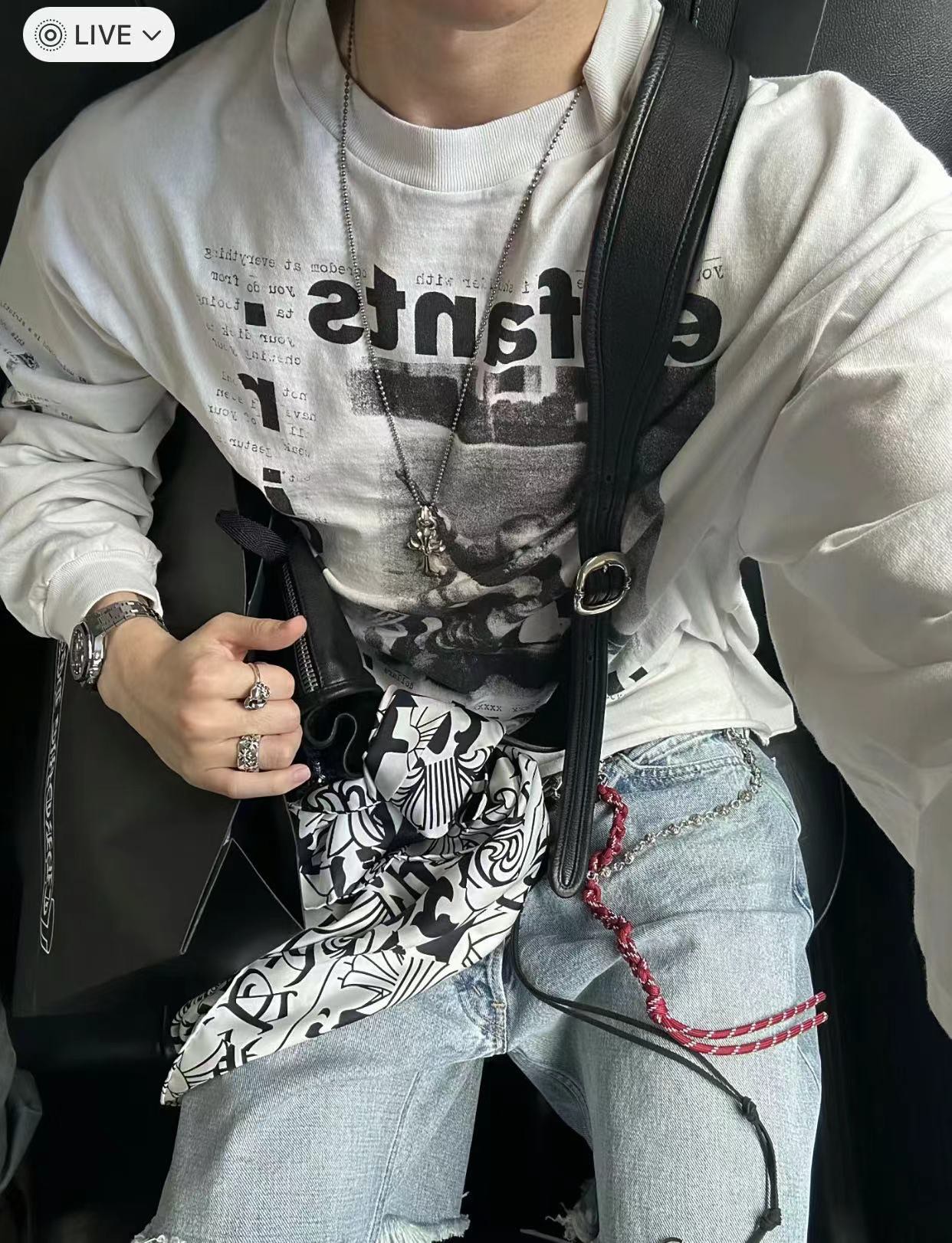 NIGO Enfants Riches Deprimes Men's Summer Ribbed Knit Washed Loose Pattern Printed Long Sleeve T-Shirt Pullover Ngvp #nigo73357