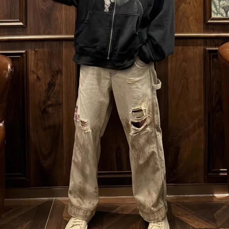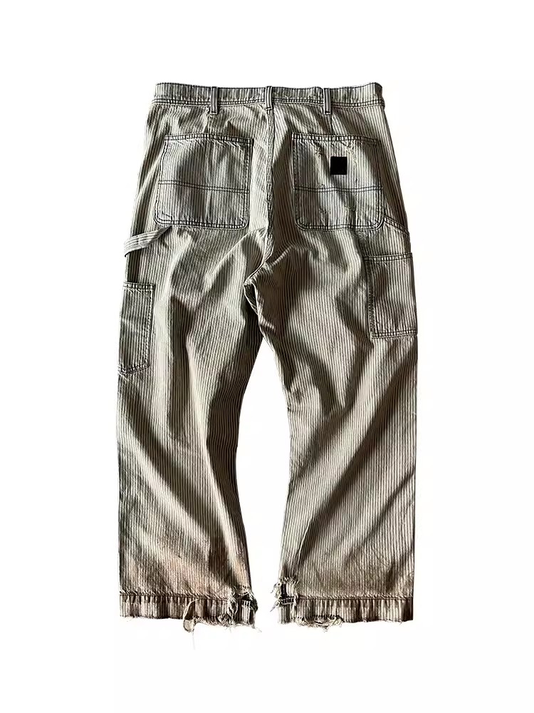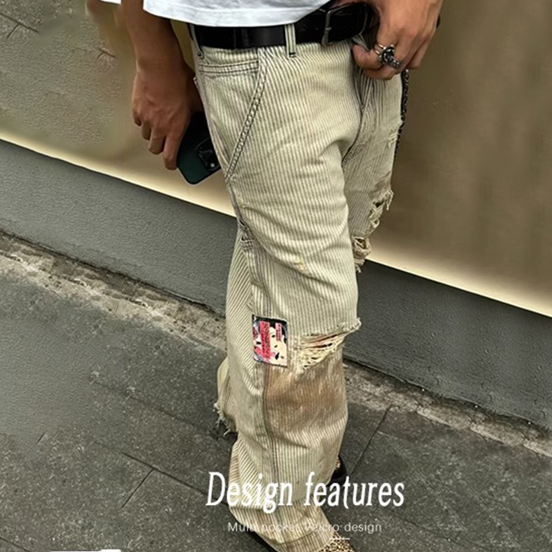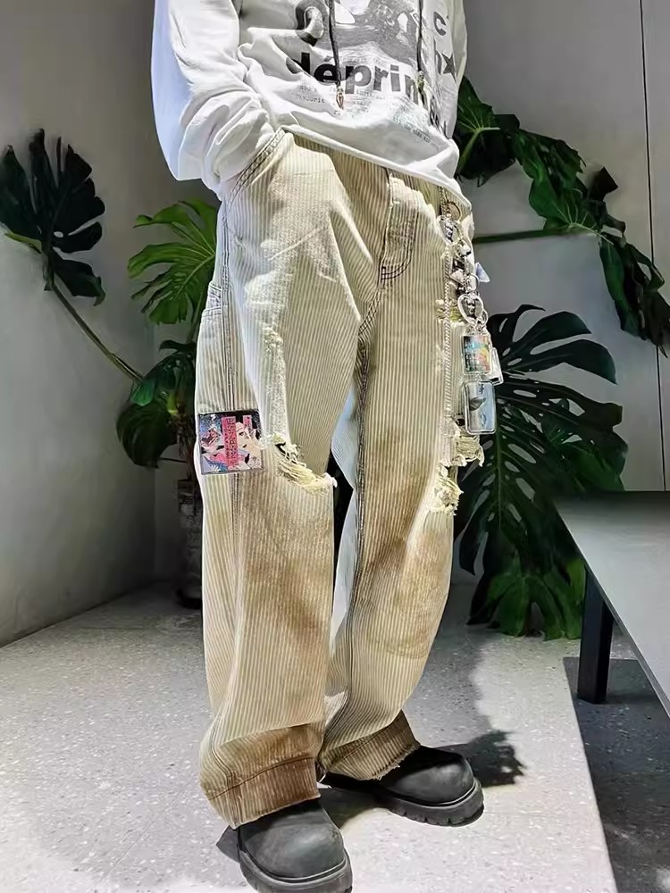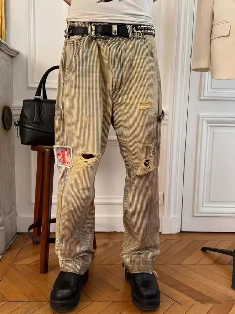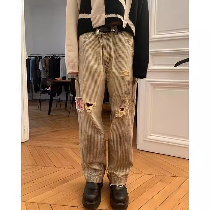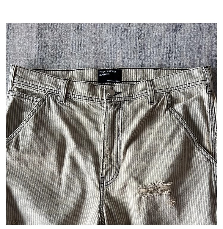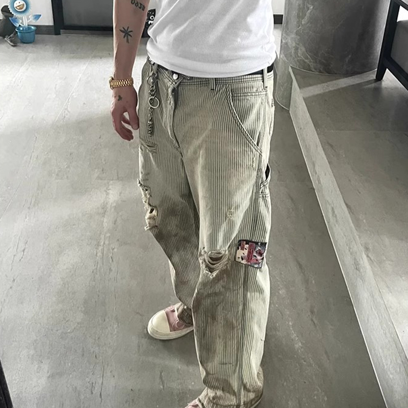 NIGO Enfants Riches Deprimes Men's Women's Four Seasons Solid Colour Logo Patch Aged Destroyed Stripe Workwear Trousers Straight Leg Casual Denim Pants Ngvp #nigo8844