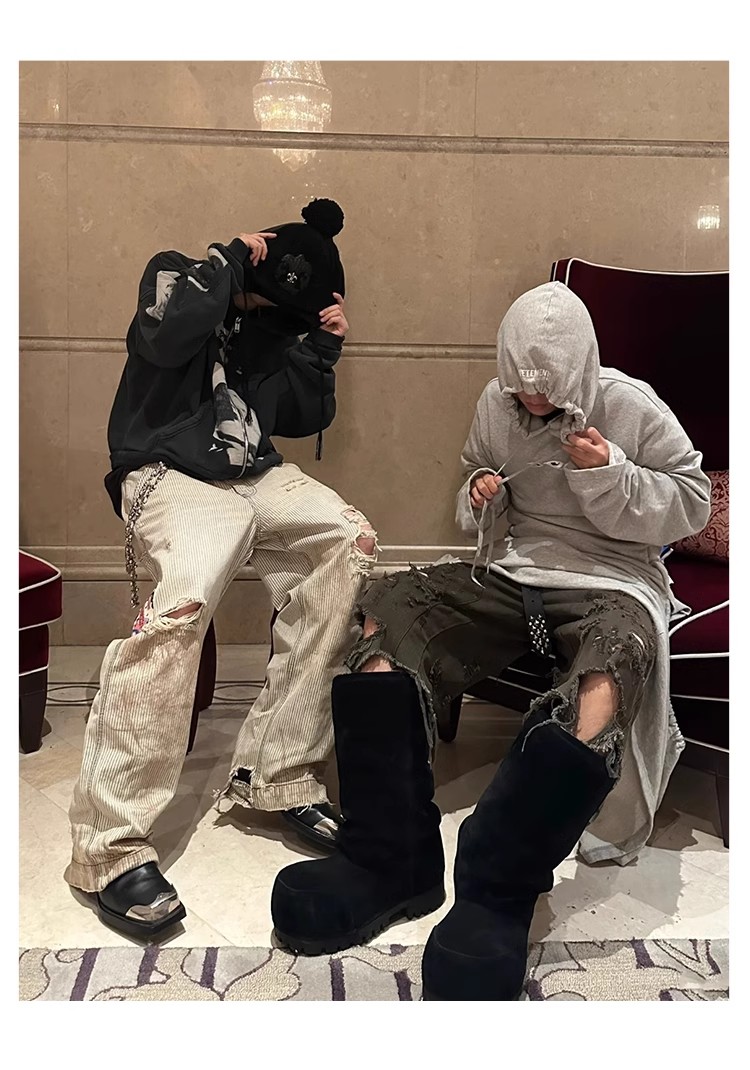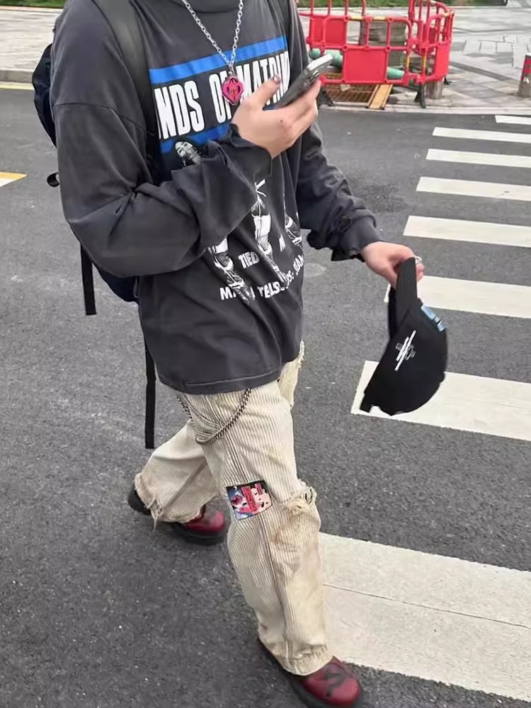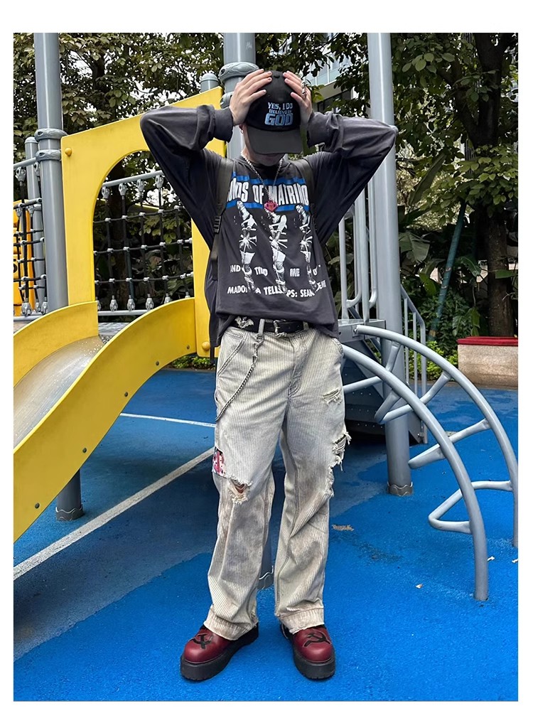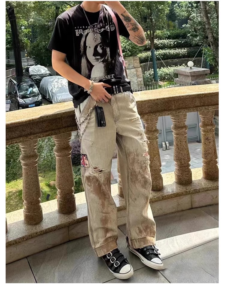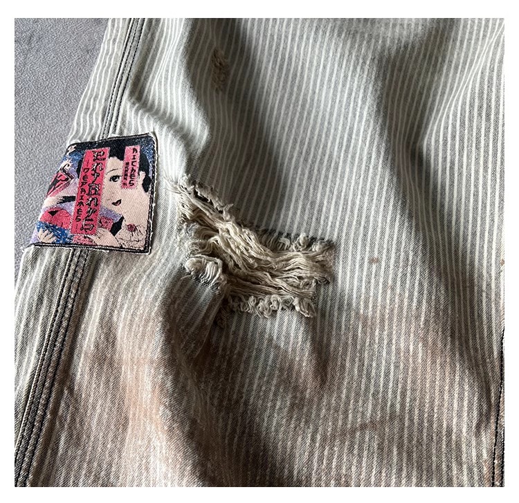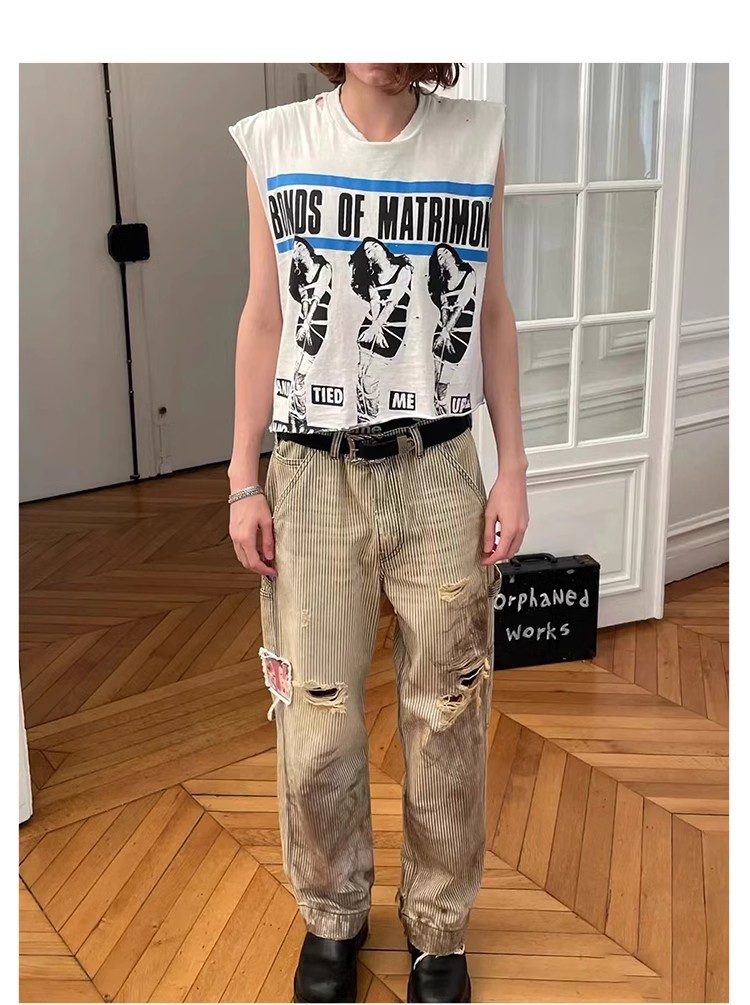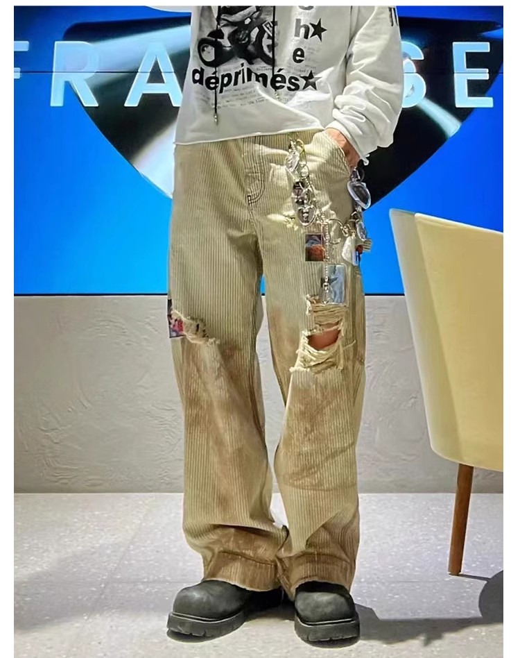 NIGO Enfants Riches Deprimes Men's Women's Four Seasons Solid Colour Logo Patch Aged Destroyed Stripe Workwear Trousers Straight Leg Casual Denim Pants Ngvp #nigo8844