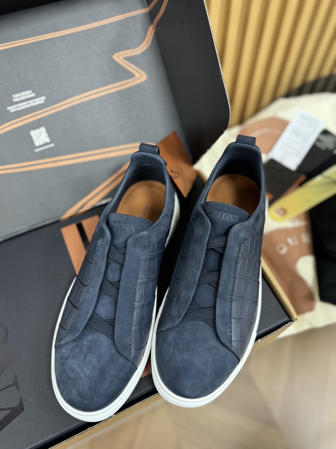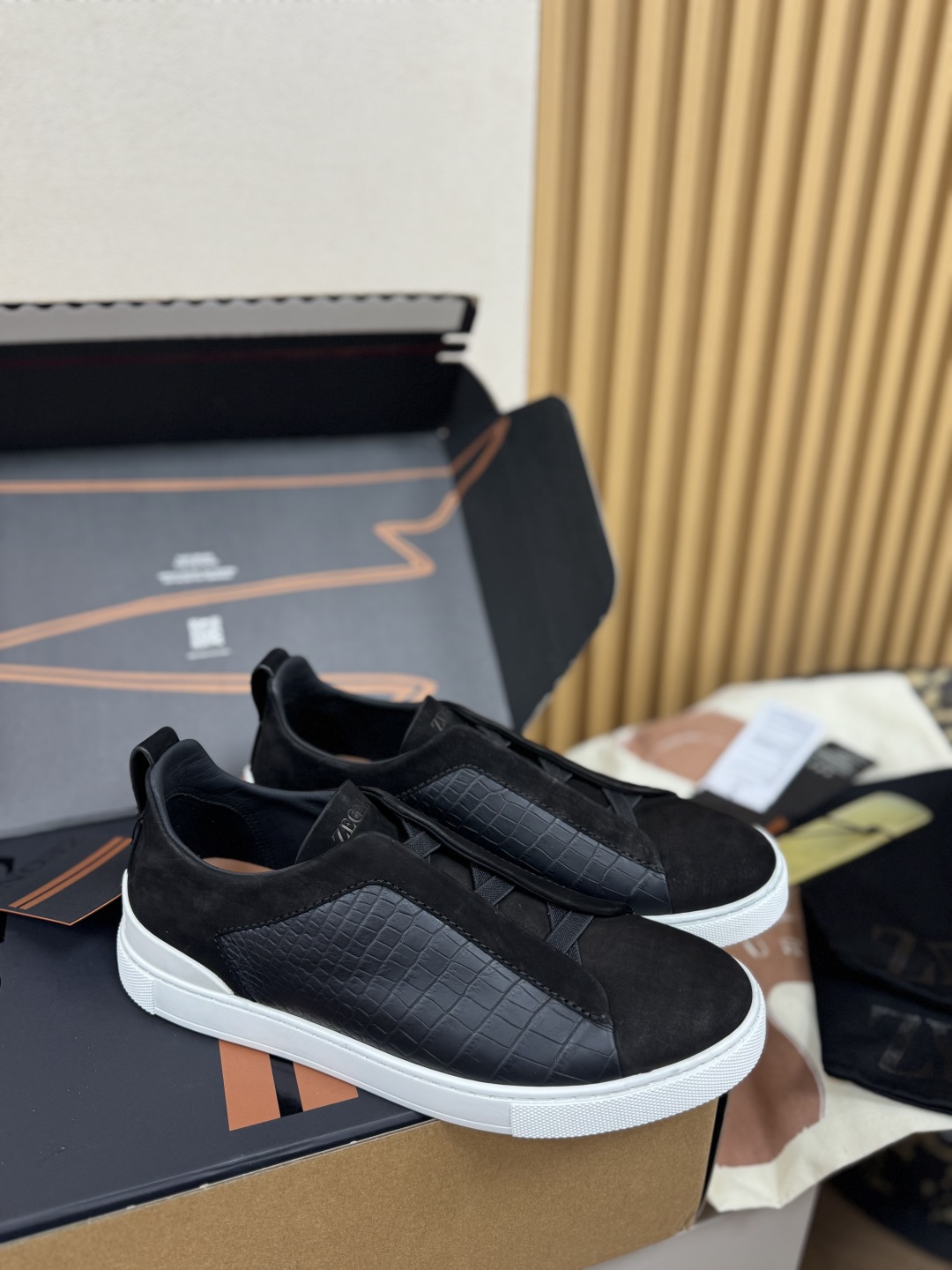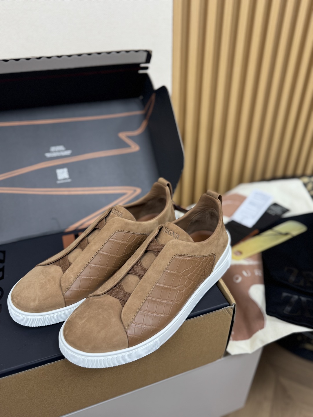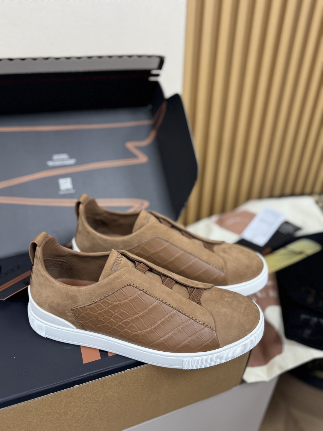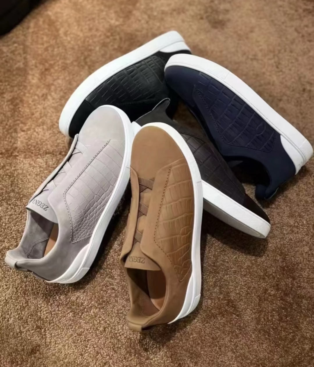 NIGO Ermenegildo Zegna Men's Fashion Classic Round Toe Slip On Flat Low Top Crocodile Leather Suede Patchwork Luxury Business Casual Shoes #nigo79375