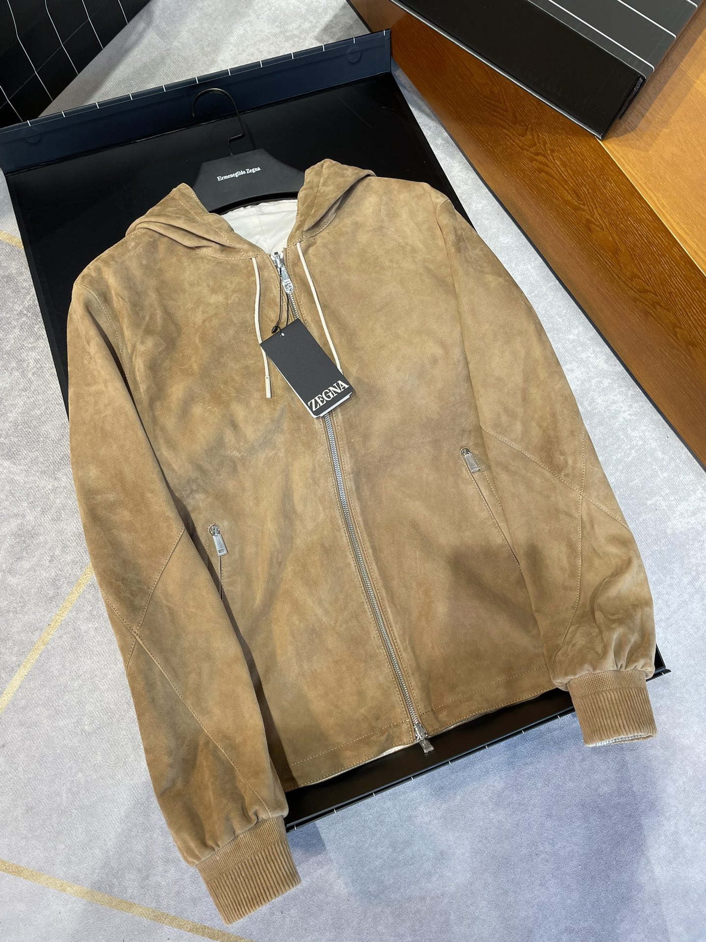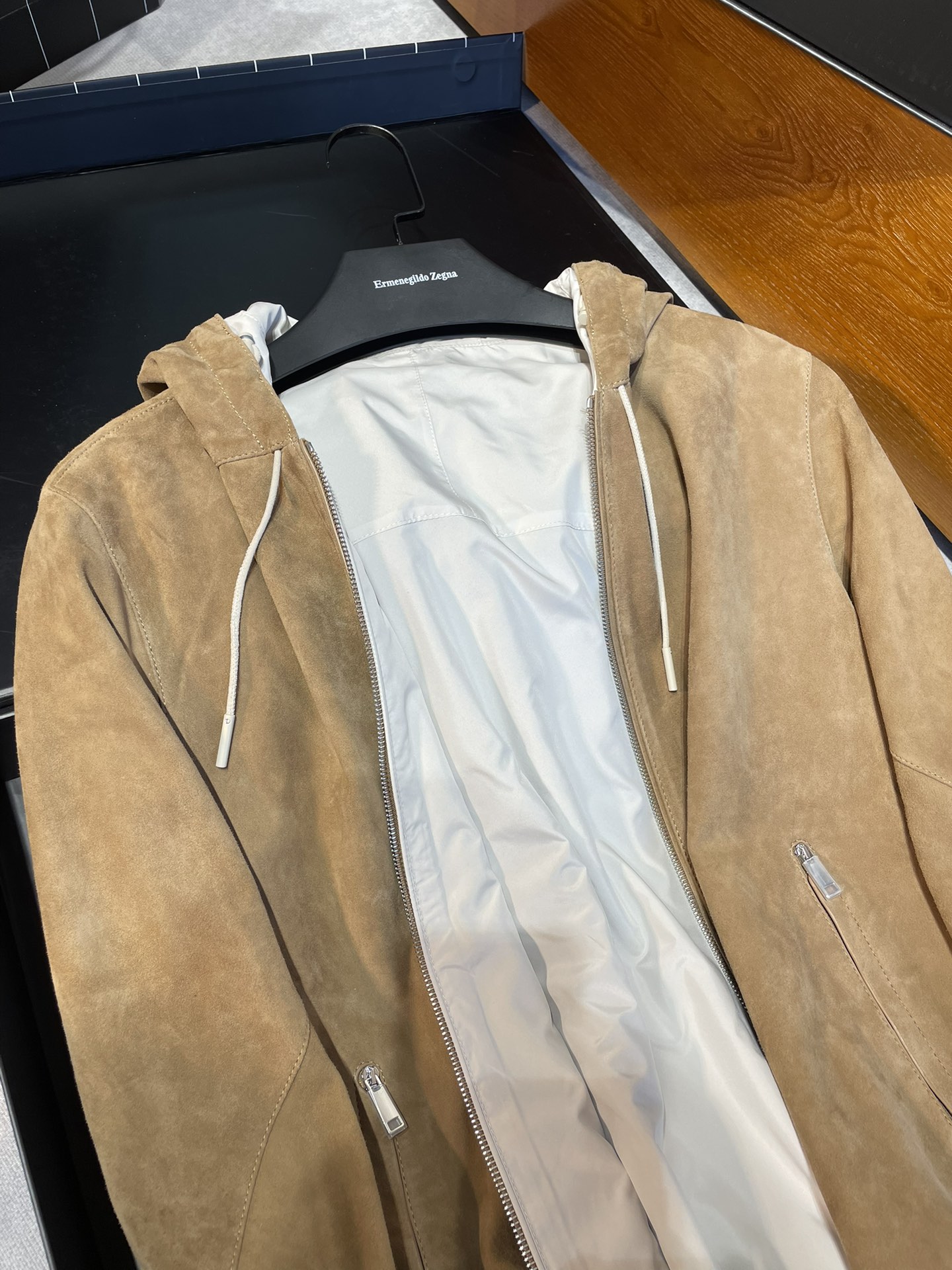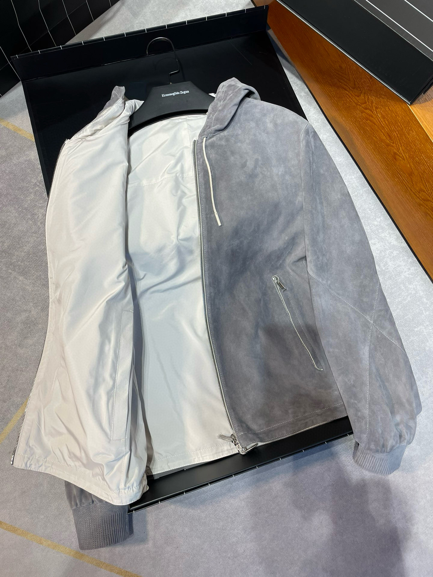 NIGO Ermenegildo Zegna Men's Spring And Autumn Reversible Leather Coat Zip Hooded Jacket Pure Colour Temperament Comfortable Leather Jacket Ngvp #nigo1592