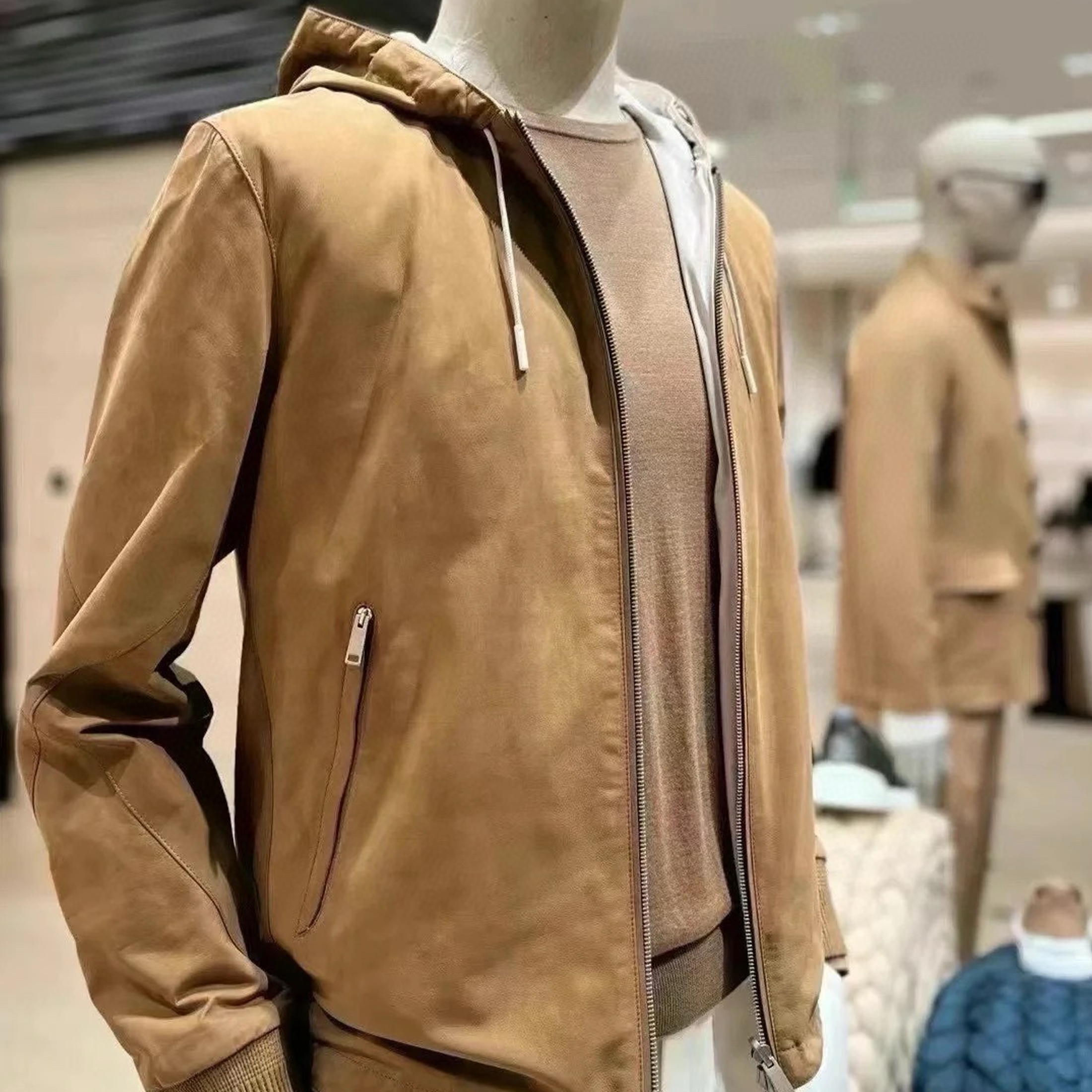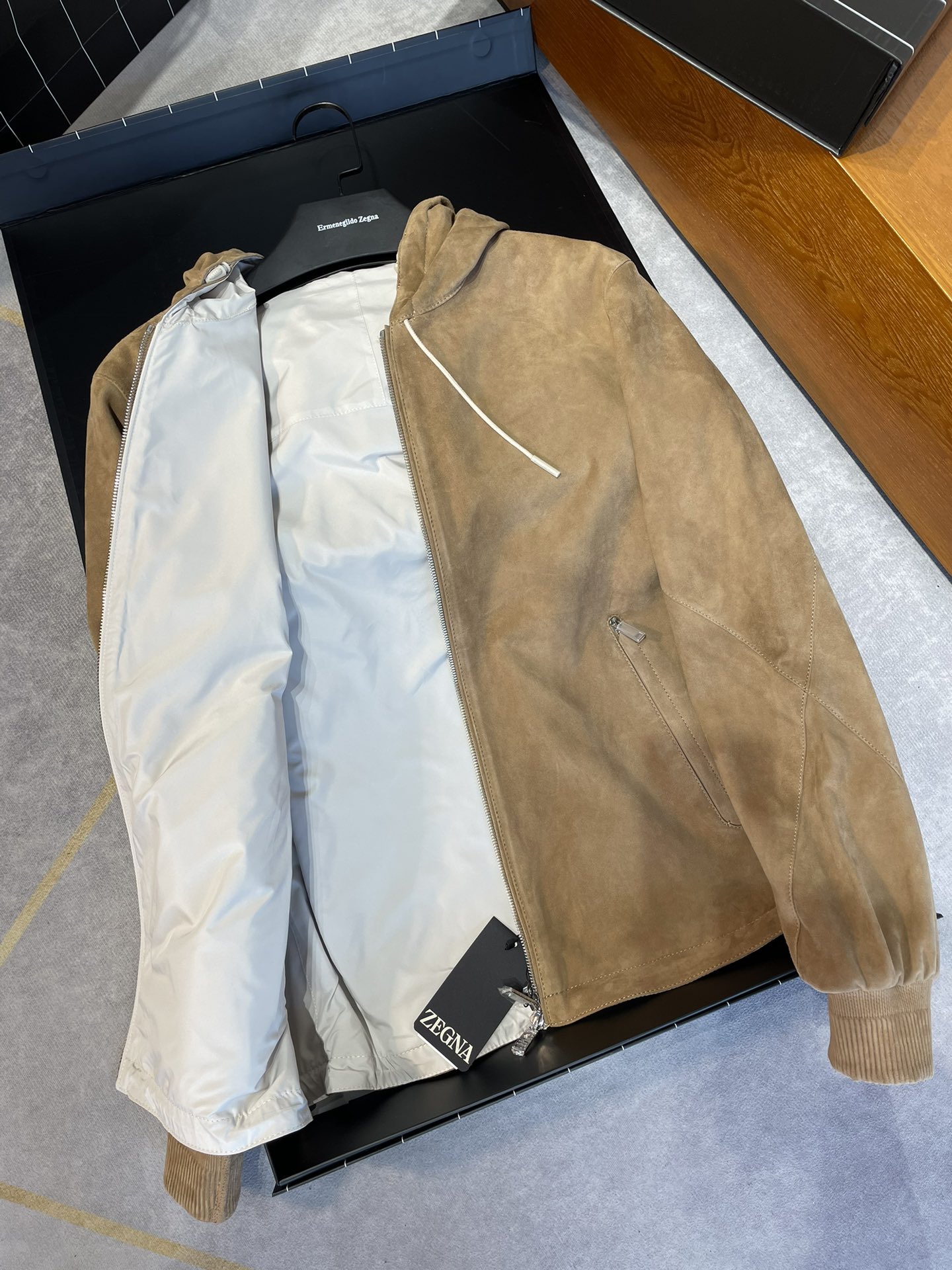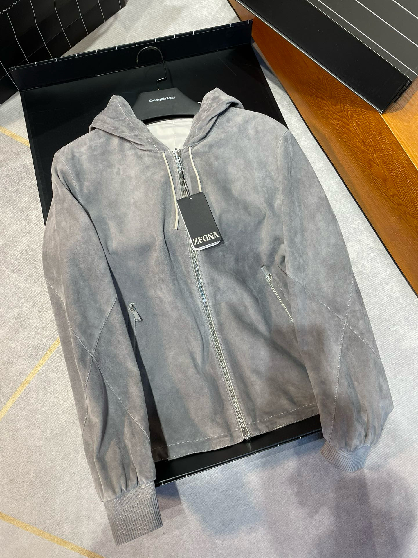 NIGO Ermenegildo Zegna Men's Spring And Autumn Reversible Leather Coat Zip Hooded Jacket Pure Colour Temperament Comfortable Leather Jacket Ngvp #nigo1592