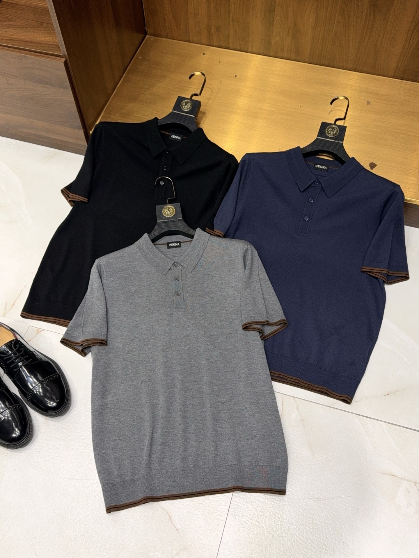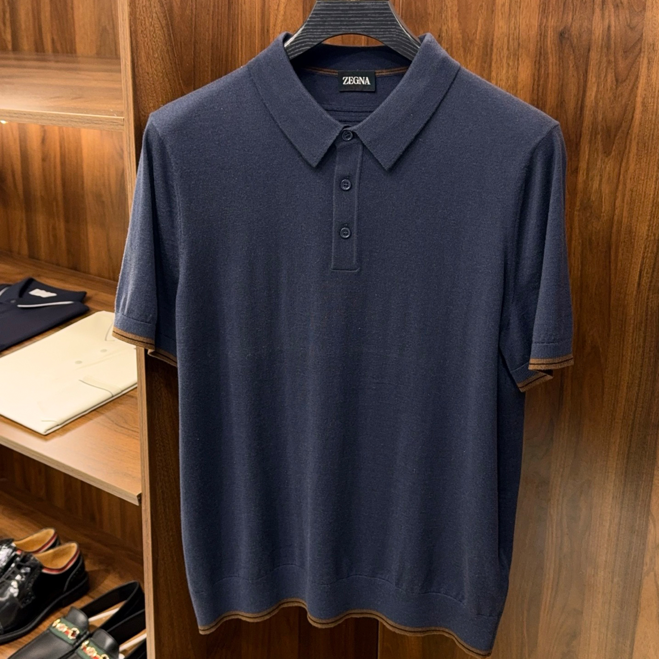 NIGO Ermenegildo Zegna Men's Summer Colour Blocking Line Knitted Polo Shirt Lapel Short Sleeve T-Shirt Fashion Casual Comfortable #nigo81155