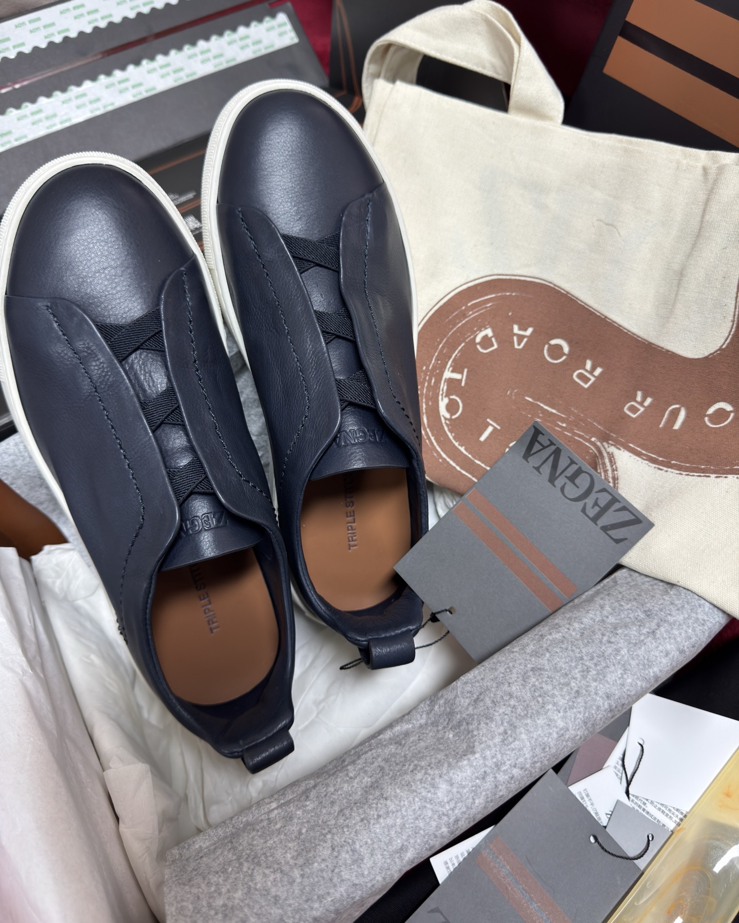 NIGO Ermenegildo Zegna TRIPLE STITCH™ SECONDSKIN Luxury Casual Shoes Men's All-Season Genuine Leather Fashion Footwear Lace-Free Comfort Shoes #nigo81456