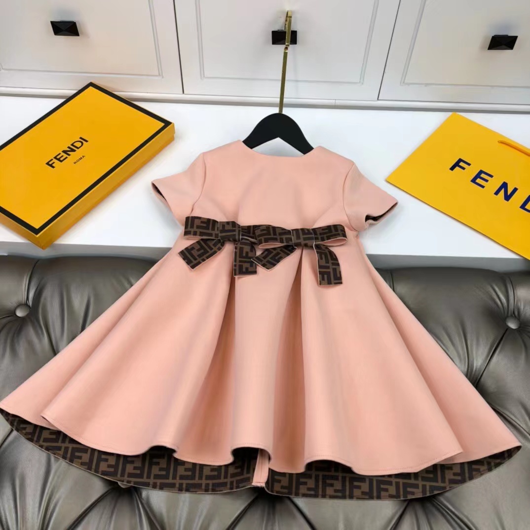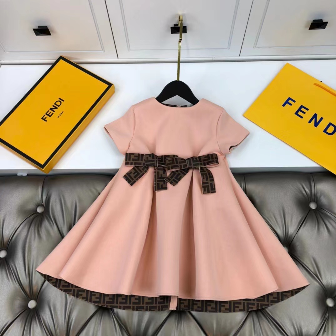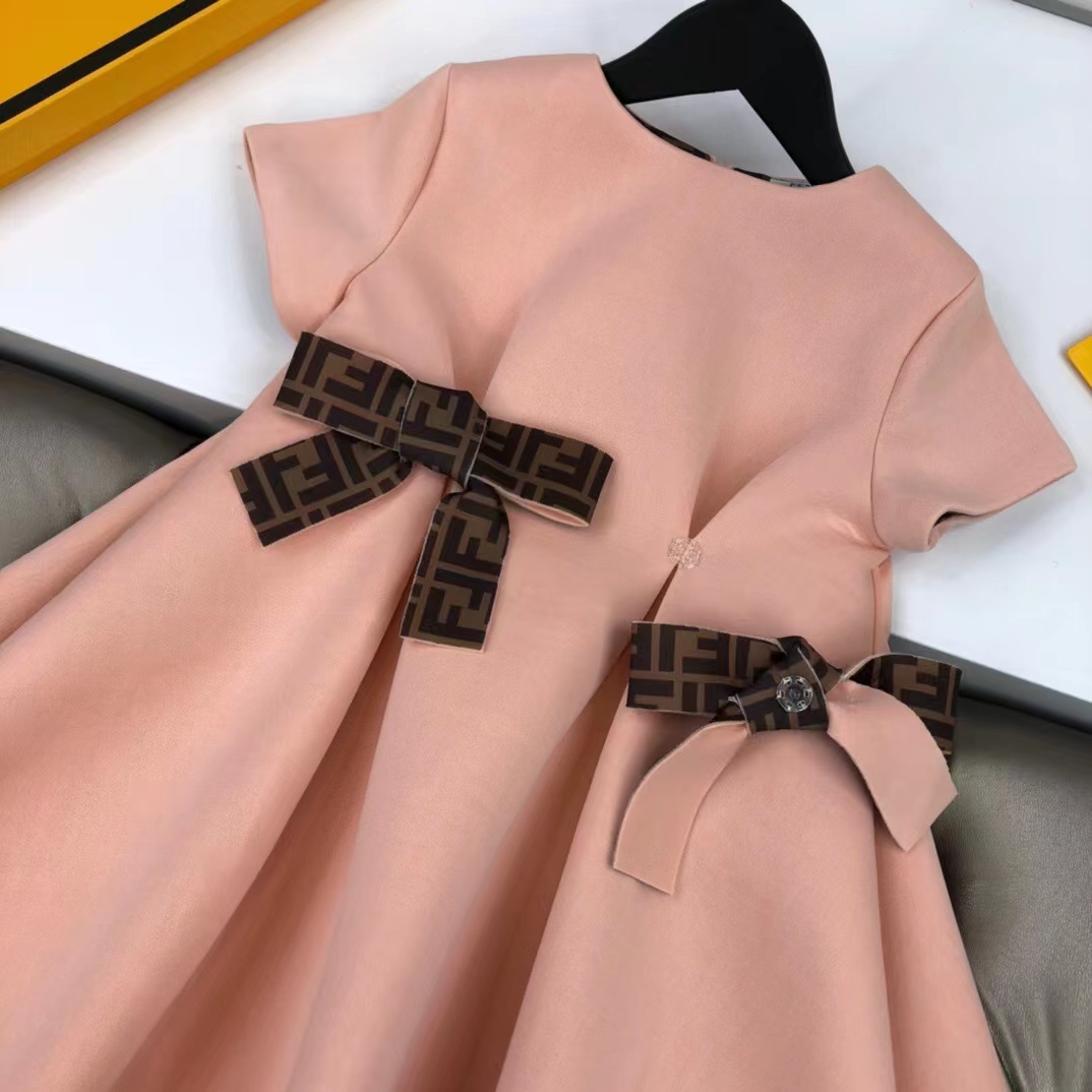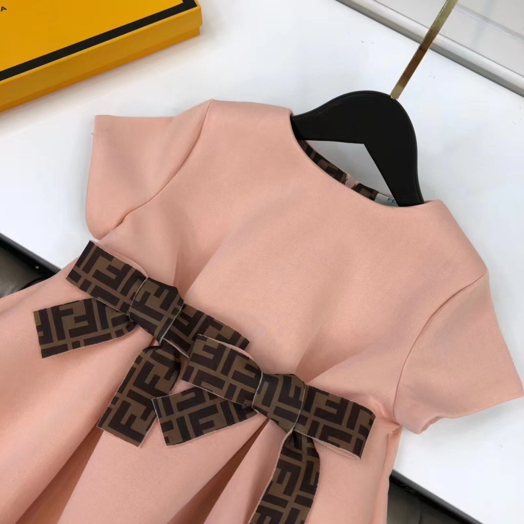 NIGO Fendi Kid's Summer Logo Printed Bow Casual Short Sleeve Dresses #nigo34336
