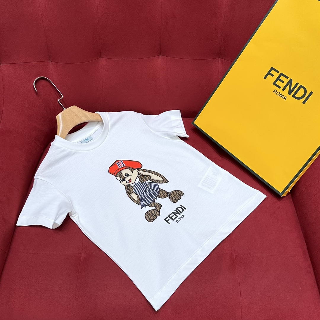NIGO Fendi Kid's Summer Pattern Printed Short Sleeve Pullover Round Neck Cotton White Junior T-Shirt #nigo31341