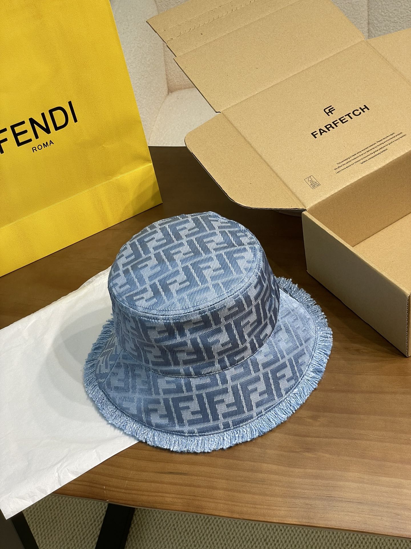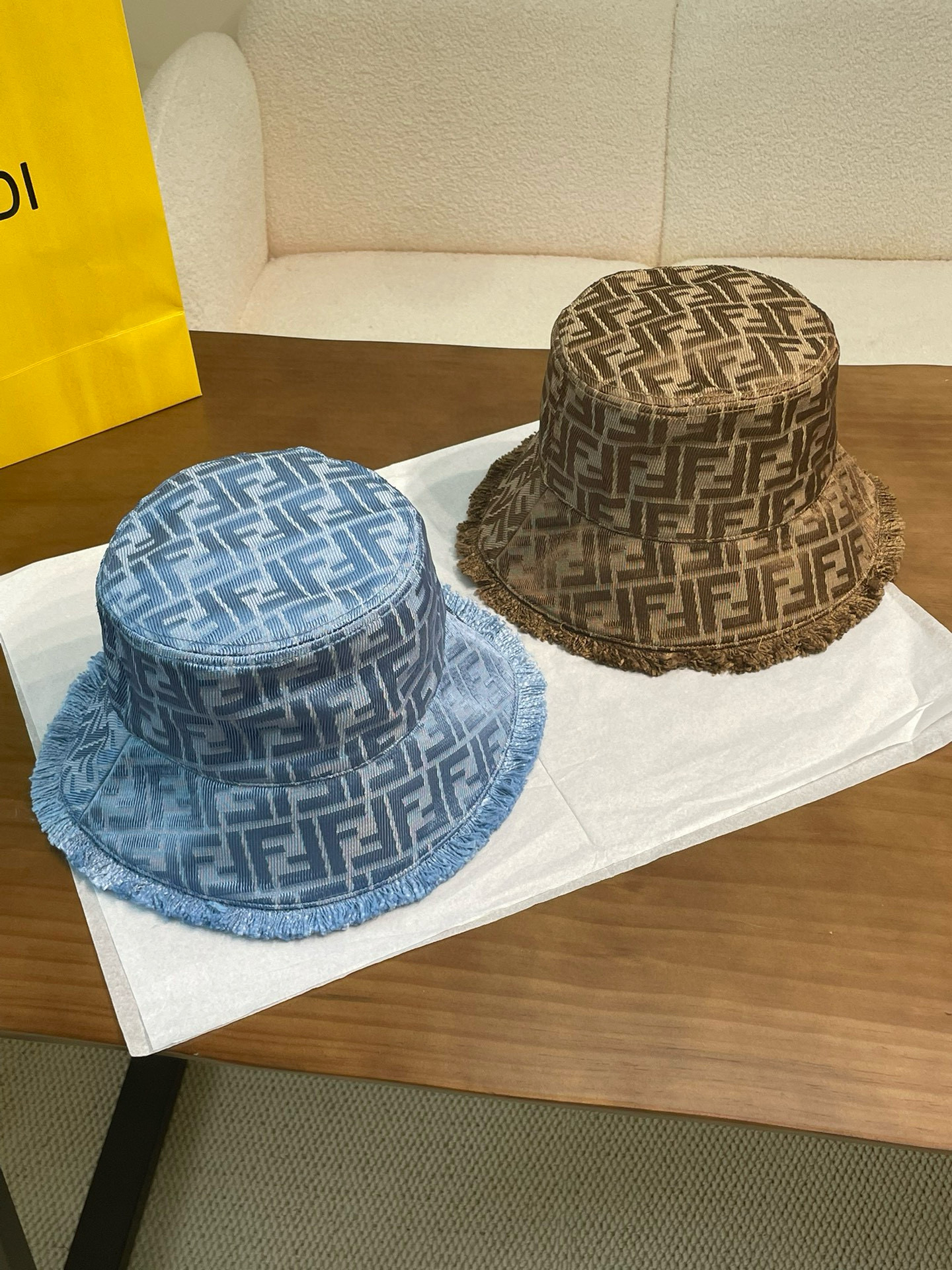 NIGO Fendi Men's And Women's Solid Colour Letters Jacquard Tassel Burlap Denim Fisherman Cap Baseball Hat #nigo76889