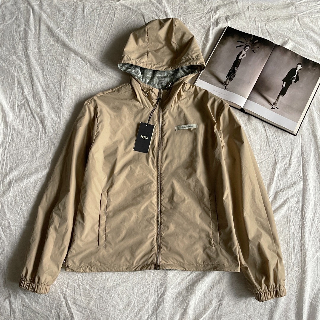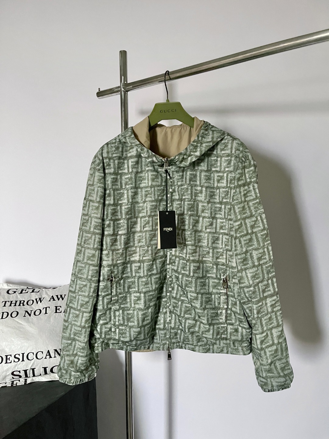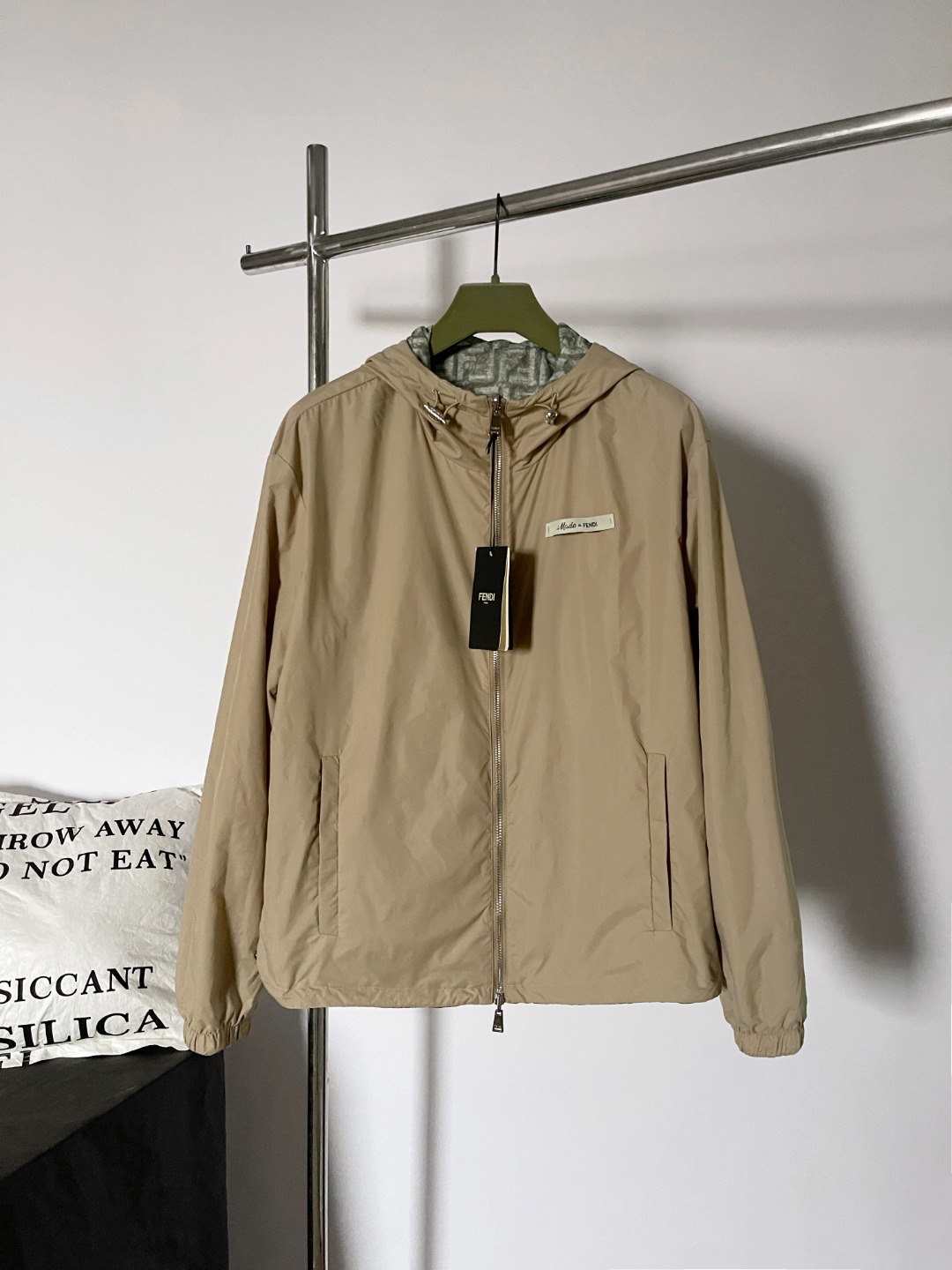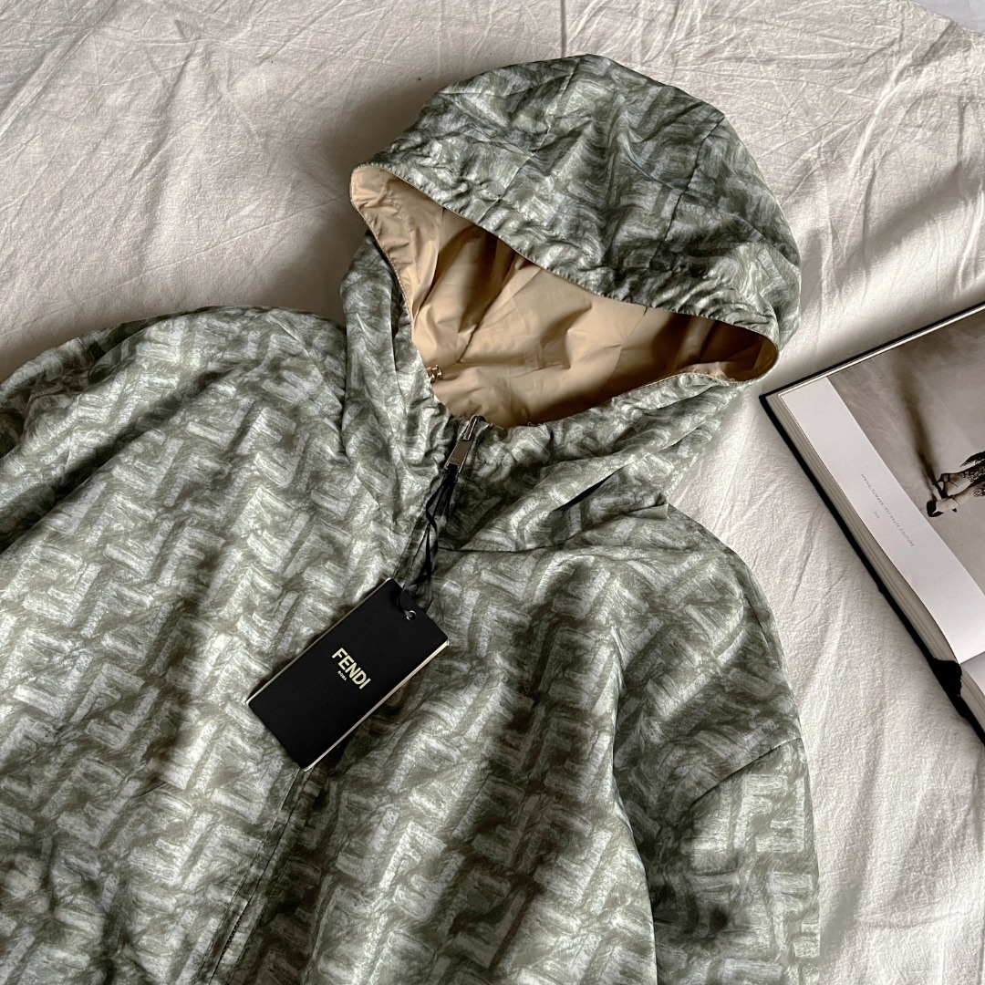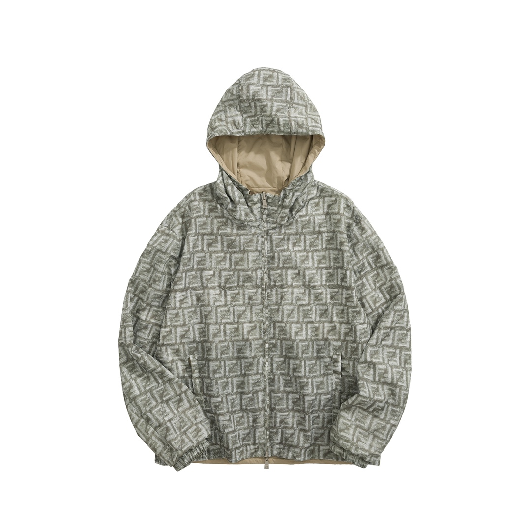 NIGO Fendi Men's Autumn/Winter Solid Colour Logo Full Print Pattern Reversible Hooded Zipper Long Sleeve Jacket #nigo99465