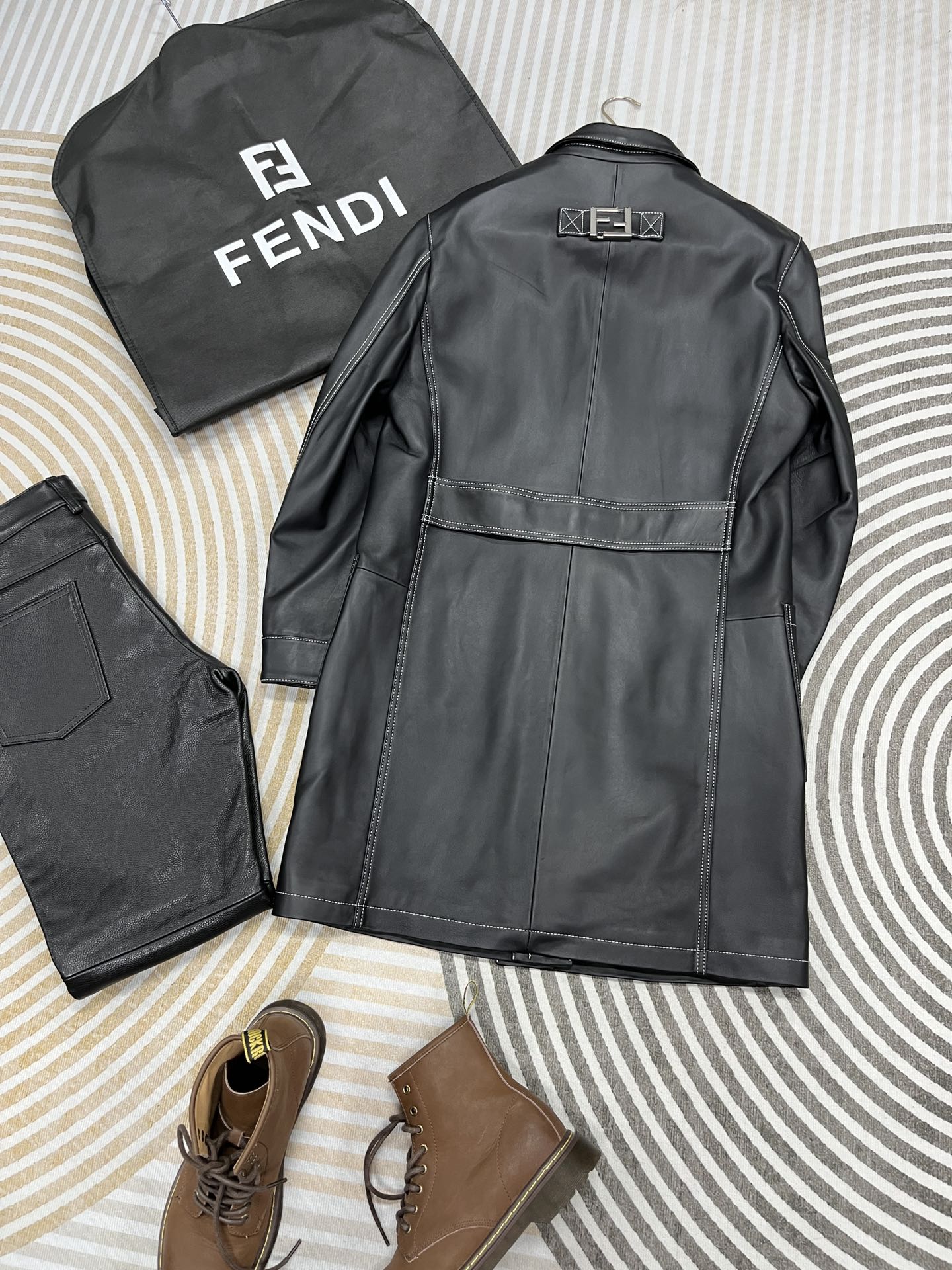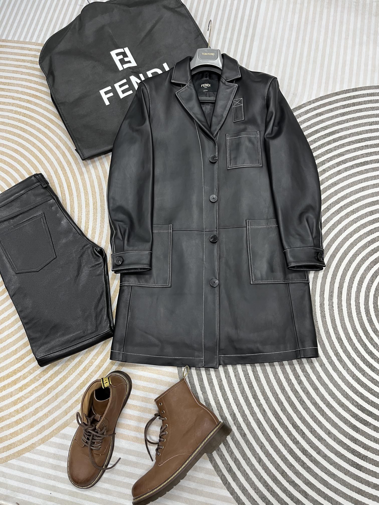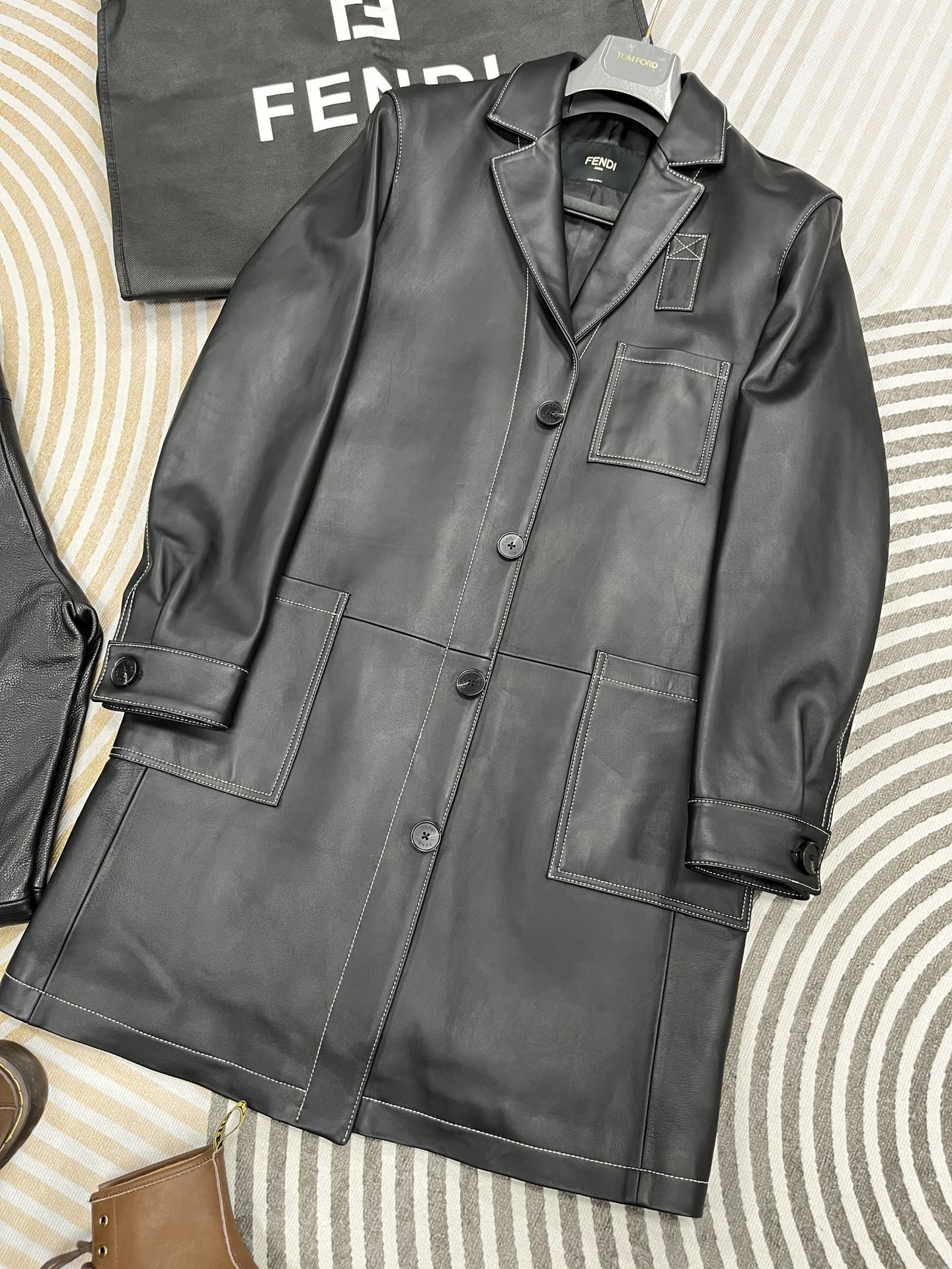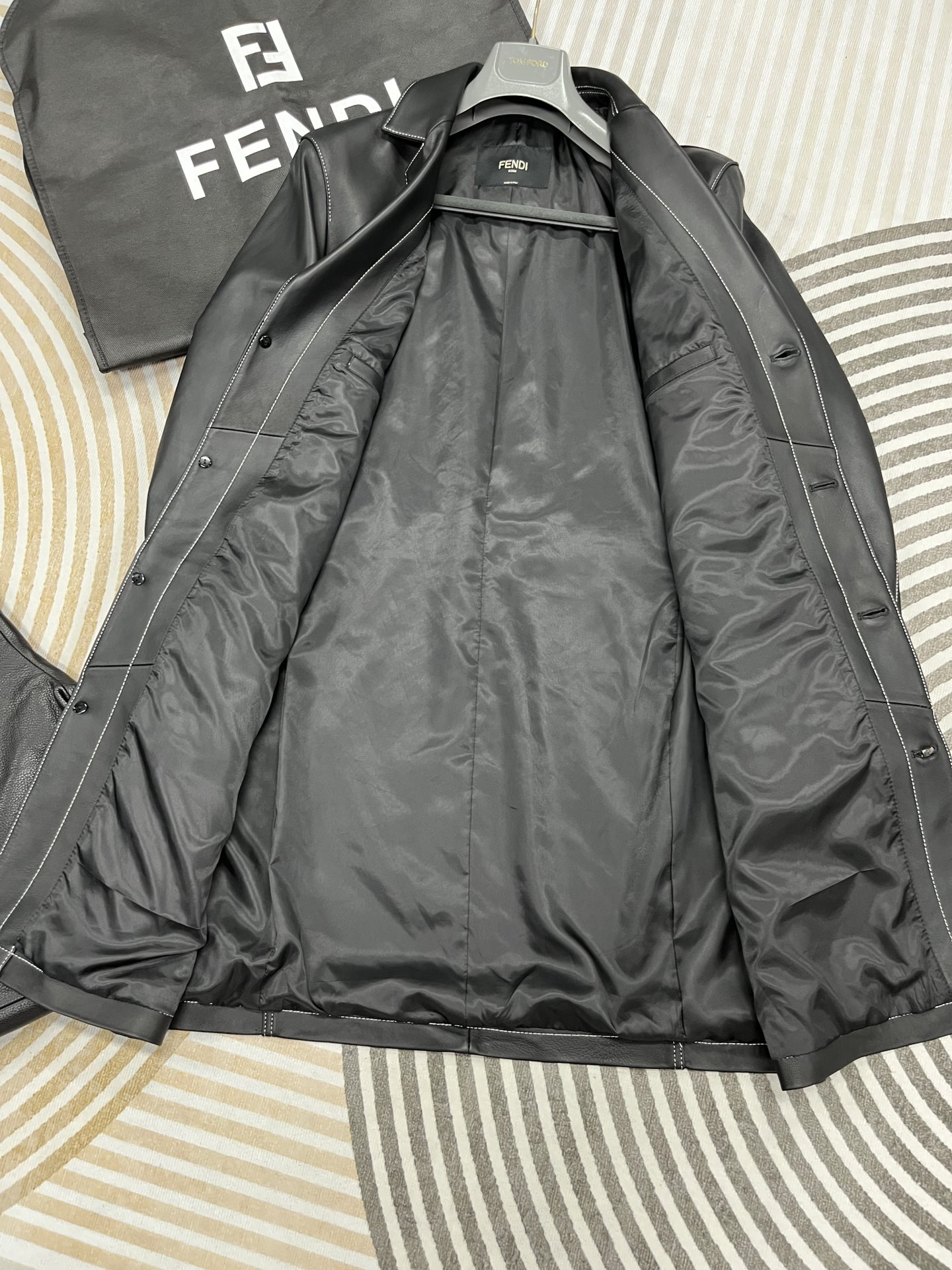 NIGO Fendi Men's Fall And Winter Black Long Sheepskin Jacket Fashion Bright Line Retro Single-breasted Luxury Leisure Jacket Coat Ngvp #nigo8948