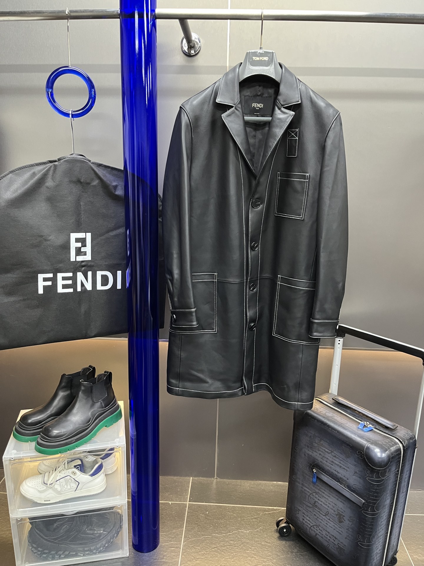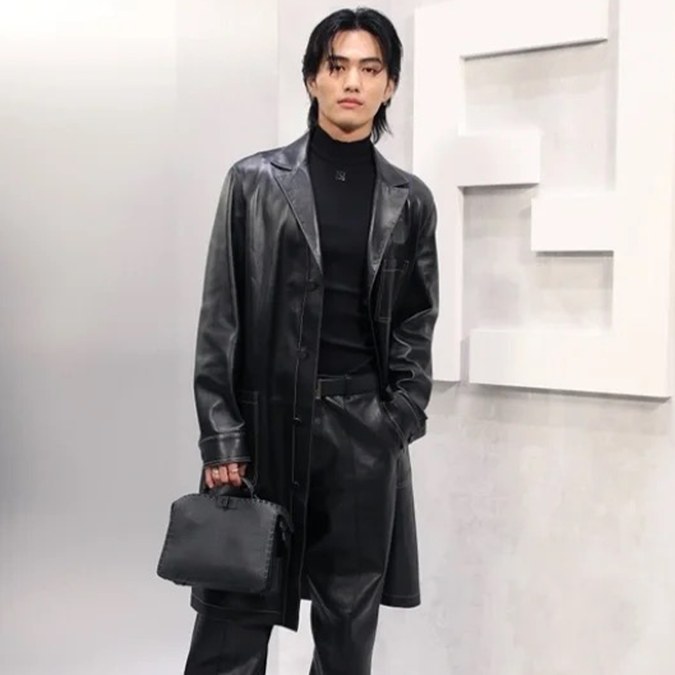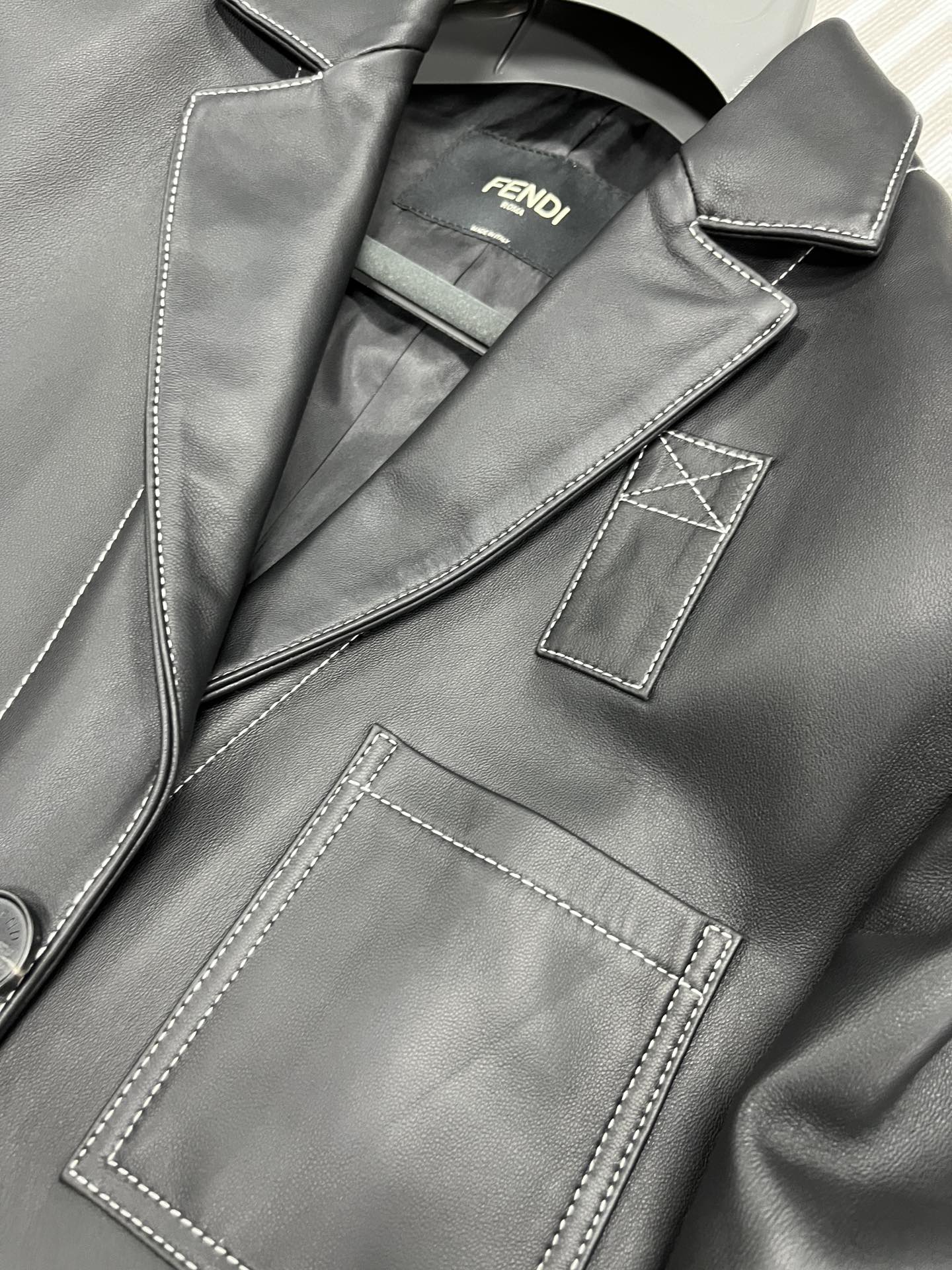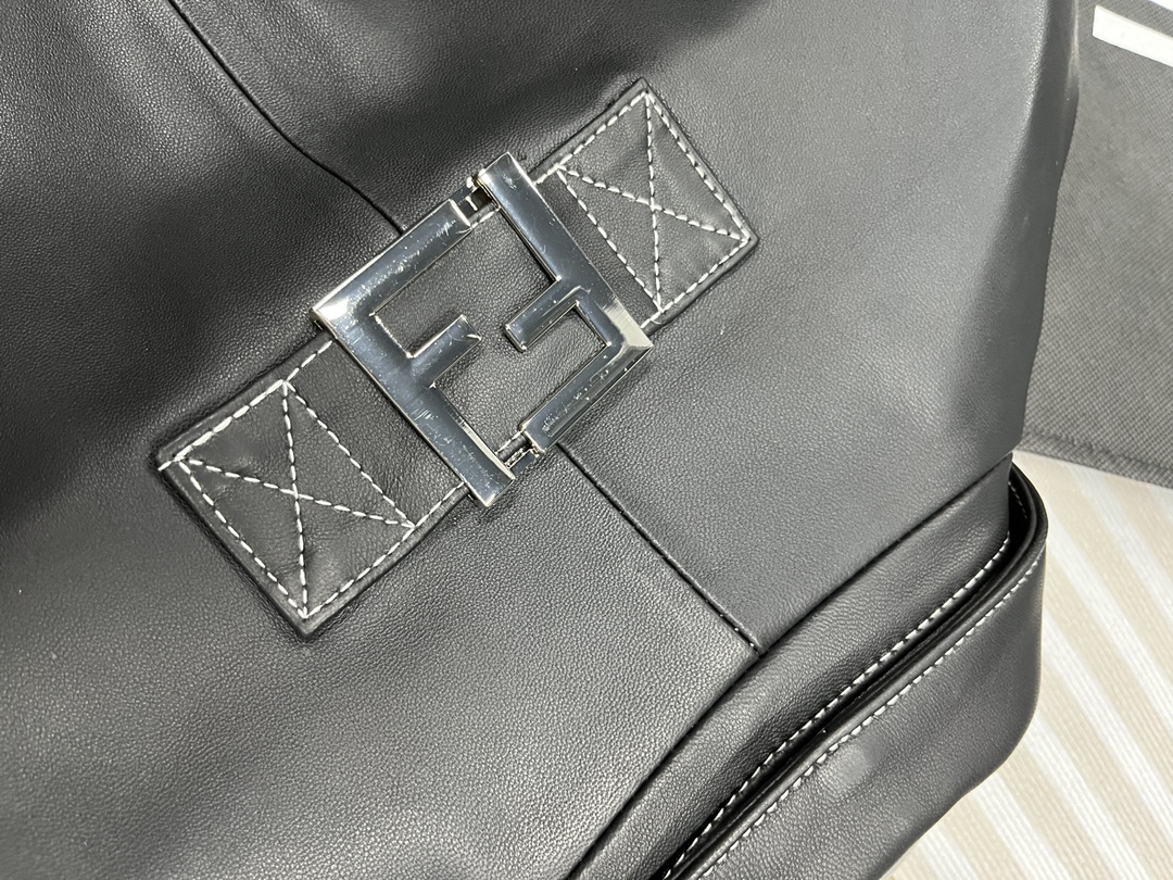 NIGO Fendi Men's Fall And Winter Black Long Sheepskin Jacket Fashion Bright Line Retro Single-breasted Luxury Leisure Jacket Coat Ngvp #nigo8948