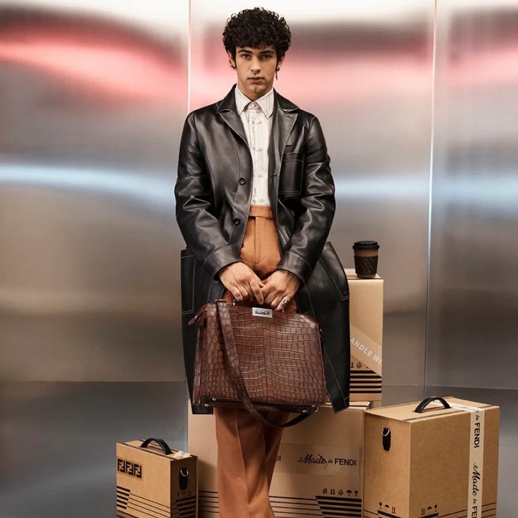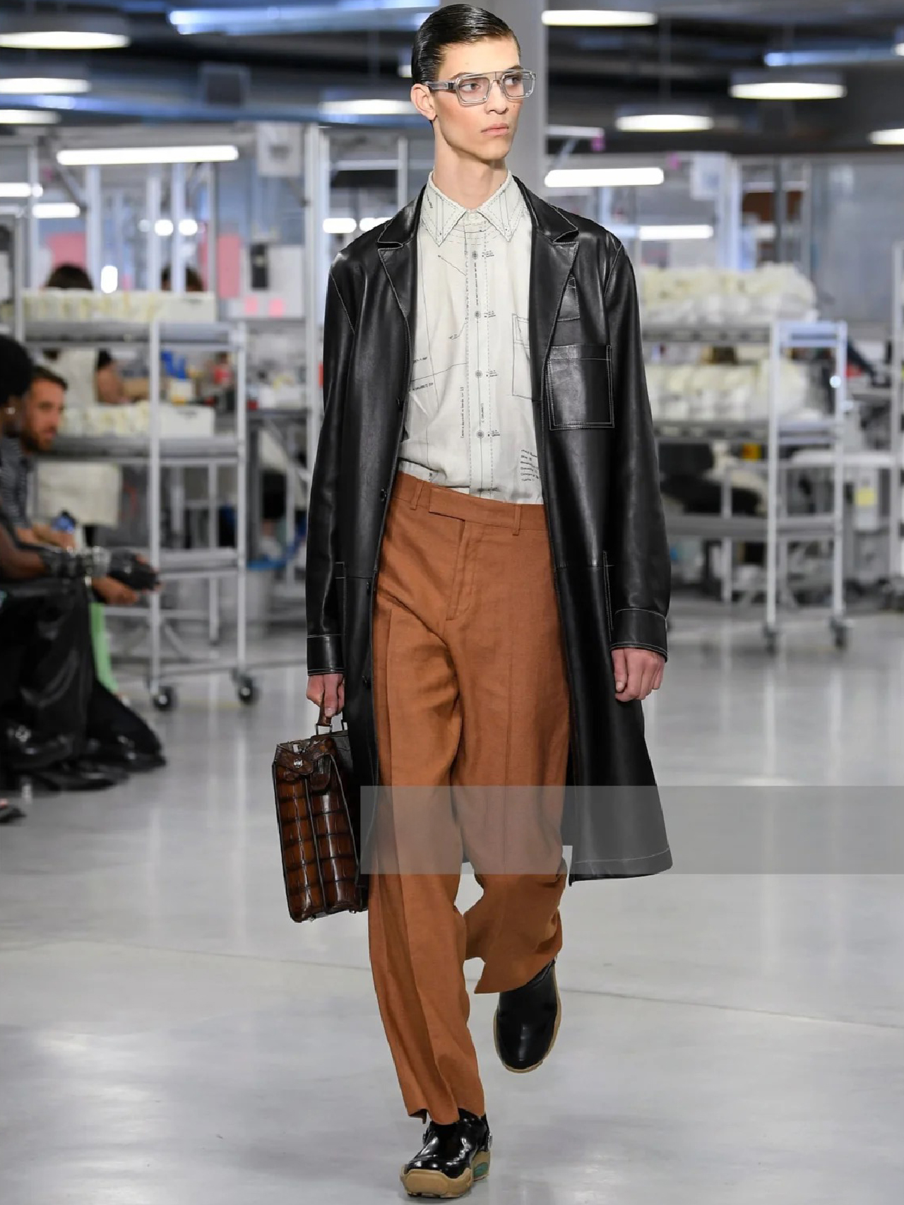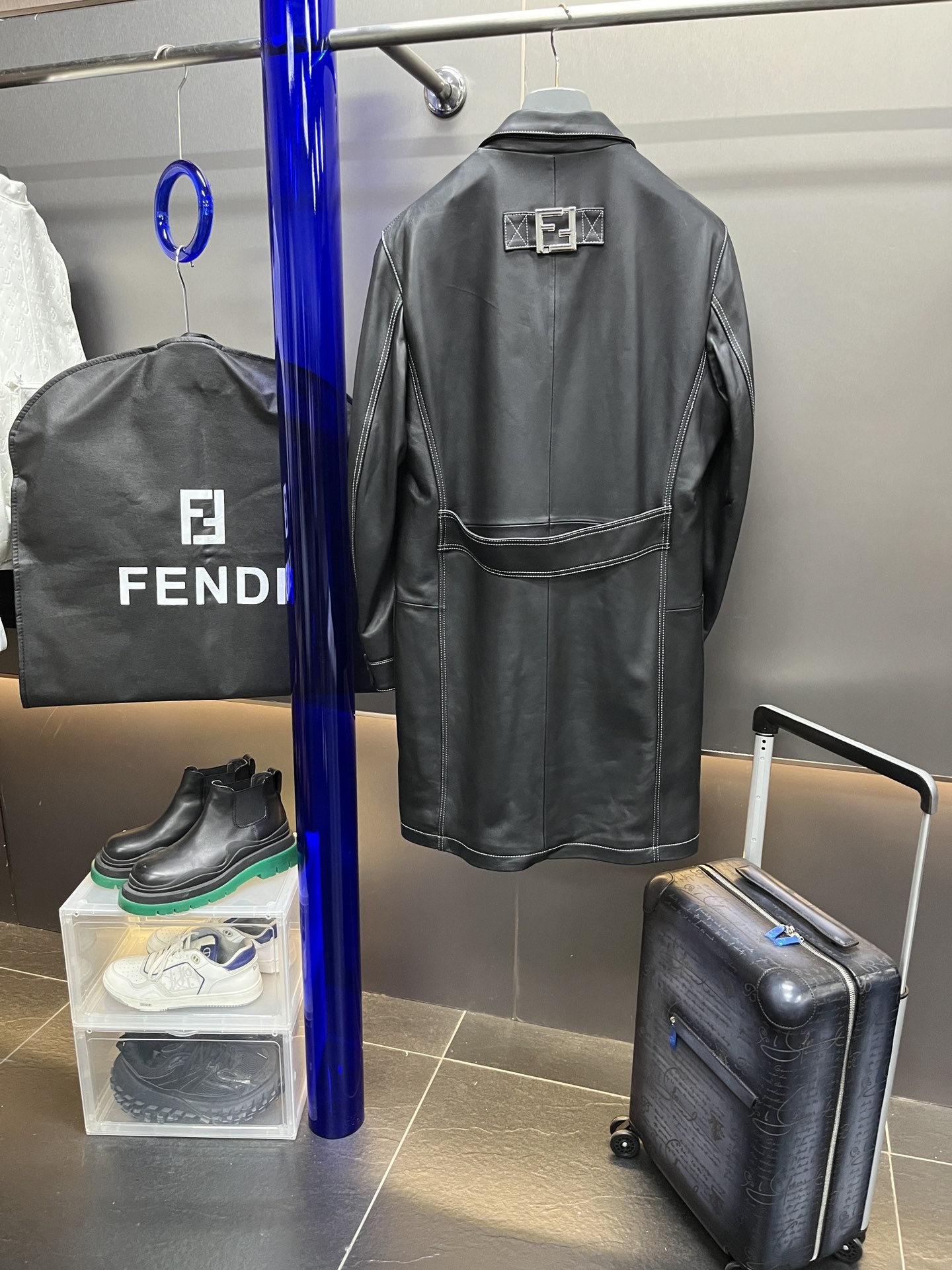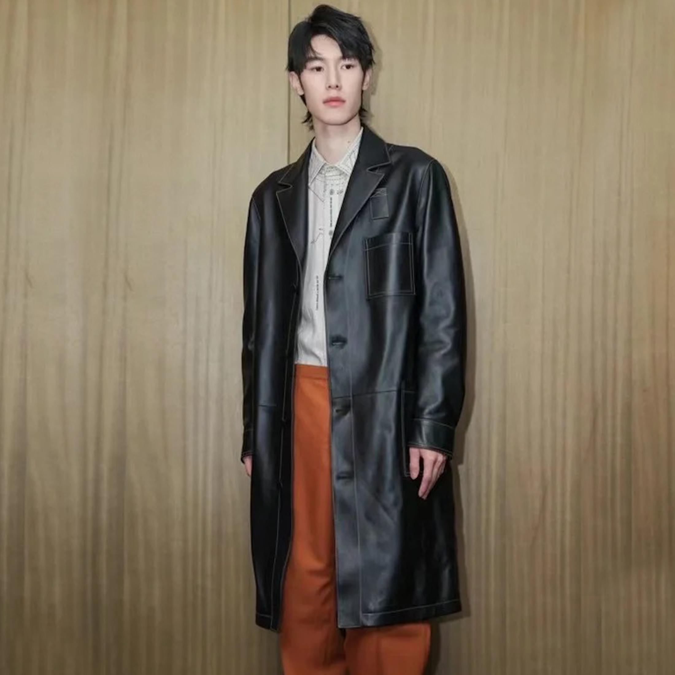 NIGO Fendi Men's Fall And Winter Black Long Sheepskin Jacket Fashion Bright Line Retro Single-breasted Luxury Leisure Jacket Coat Ngvp #nigo8948