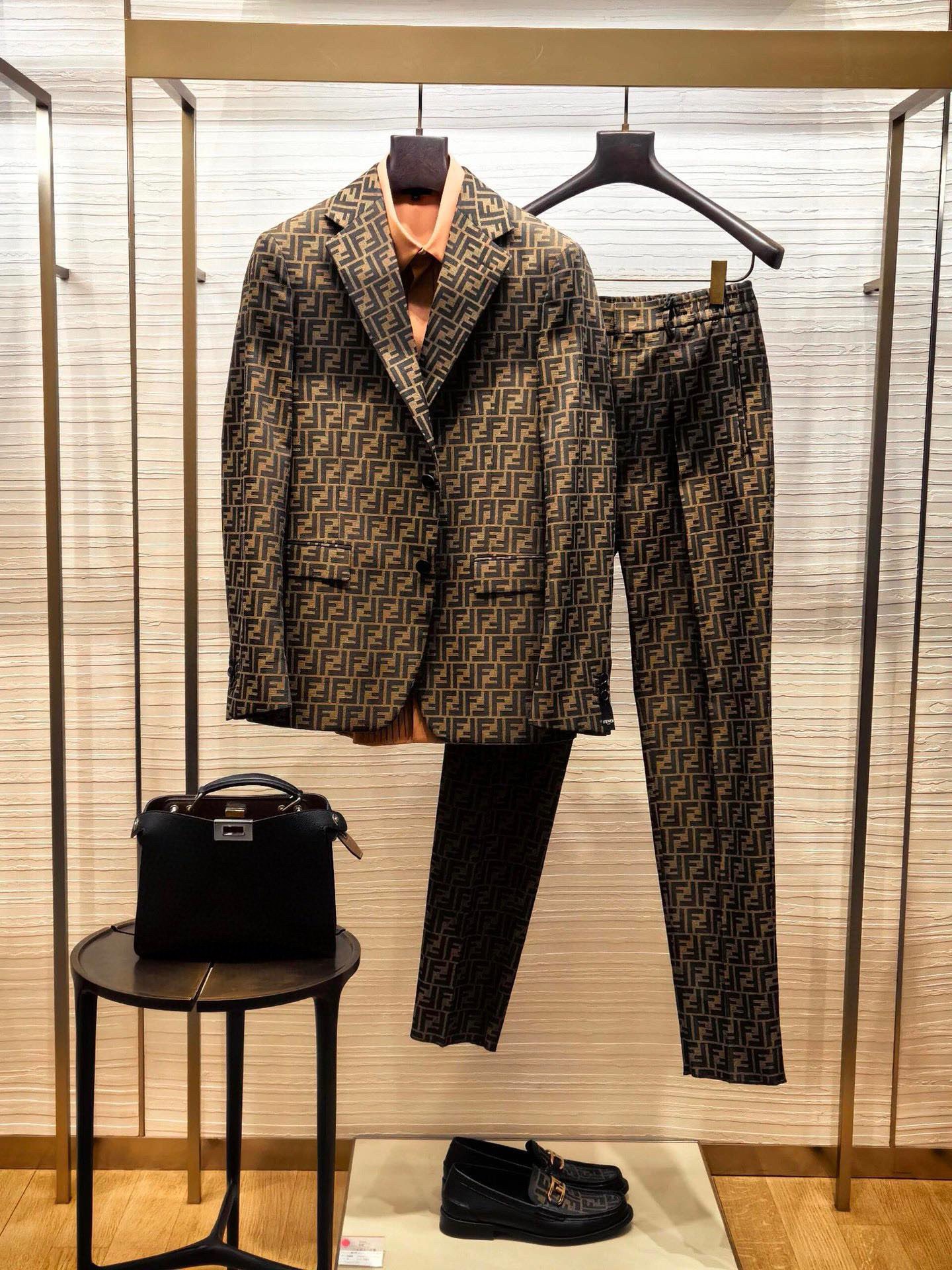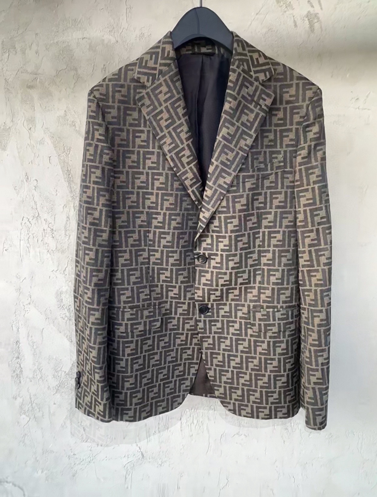 NIGO Fendi Men's Fall And Winter F Full Print Casual Suit Jacquard Lapel Single-breasted Jacket Straight Suit Pants Set #nigo71558