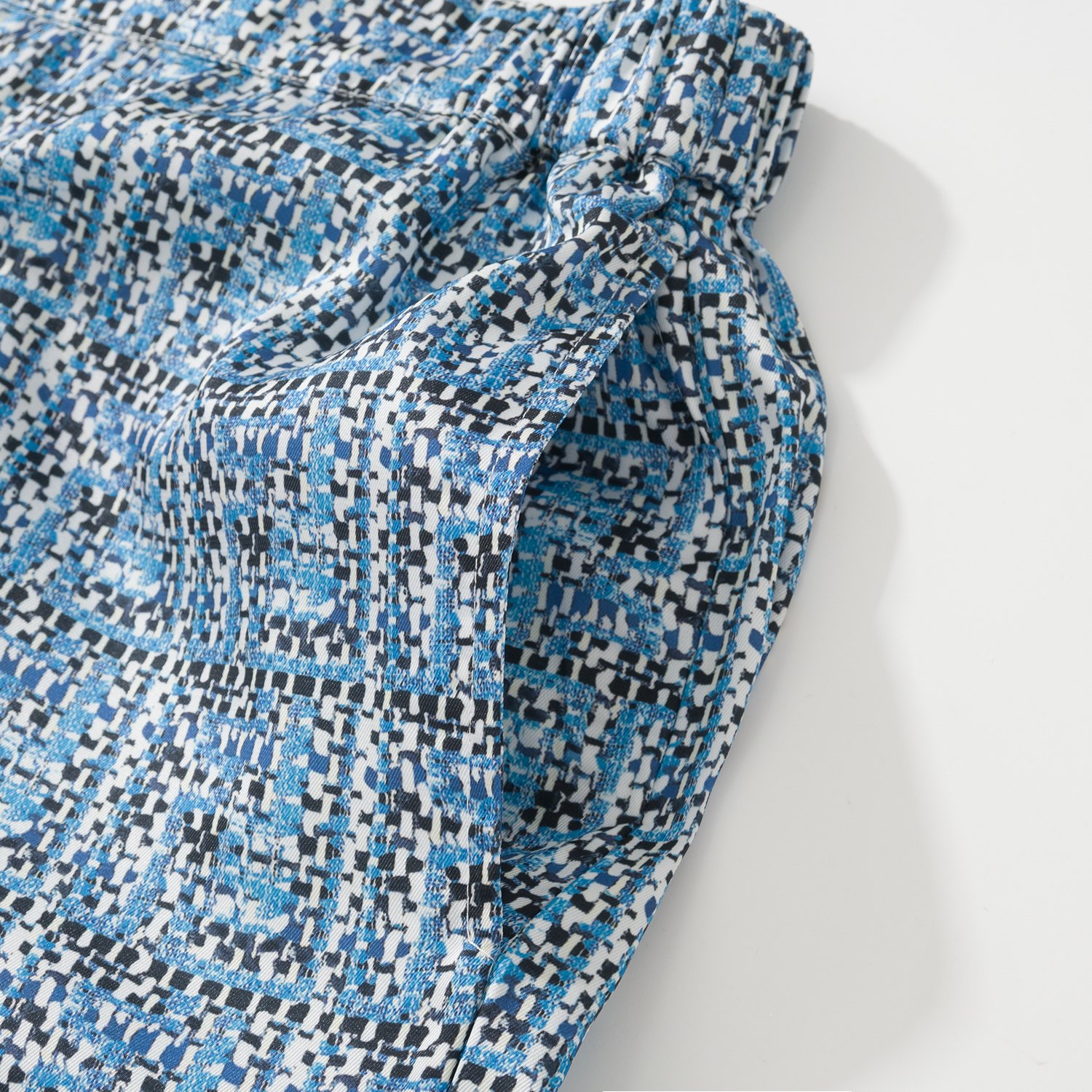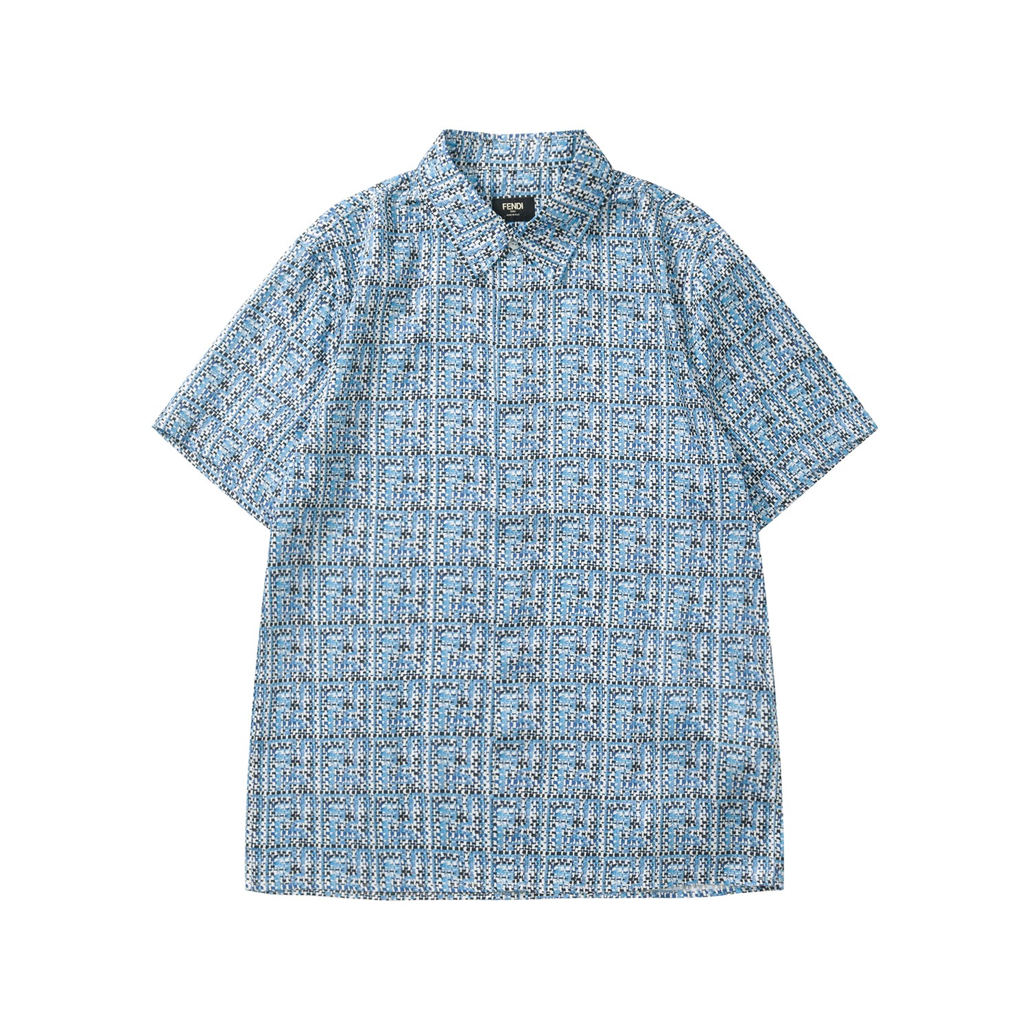 NIGO Fendi Men's Summer Blue Ff Full Print Single-Breasted Short-Sleeved Silk Shirt Casual Elastic Waist Fitted Shorts Ngvp #nigo8663