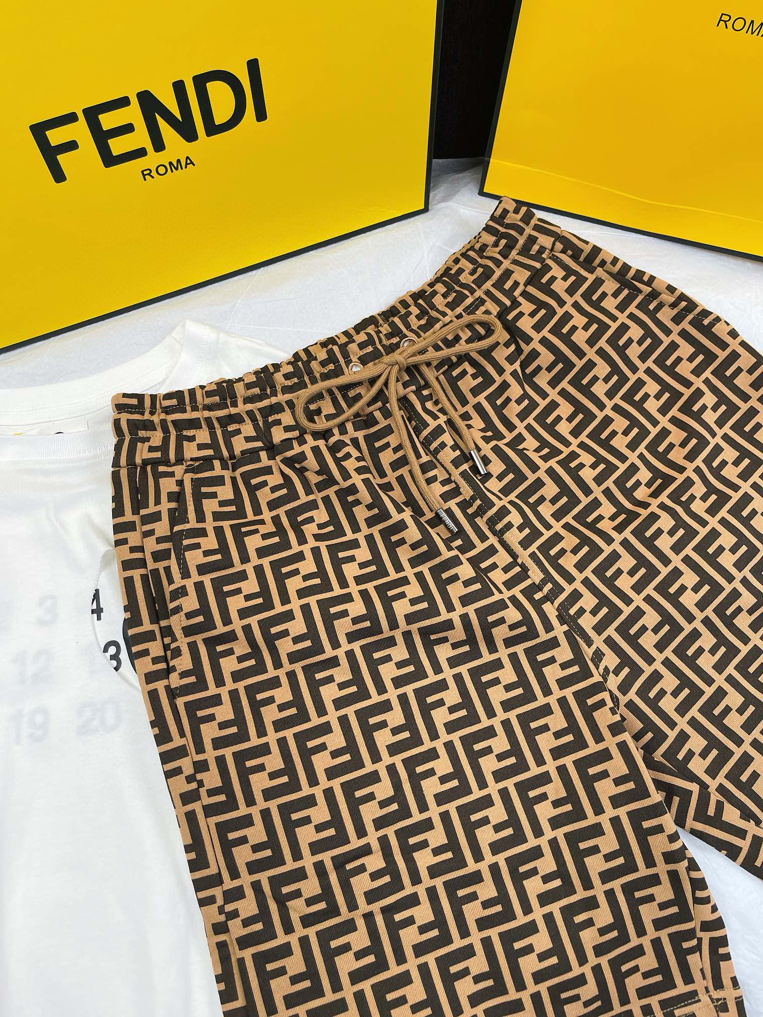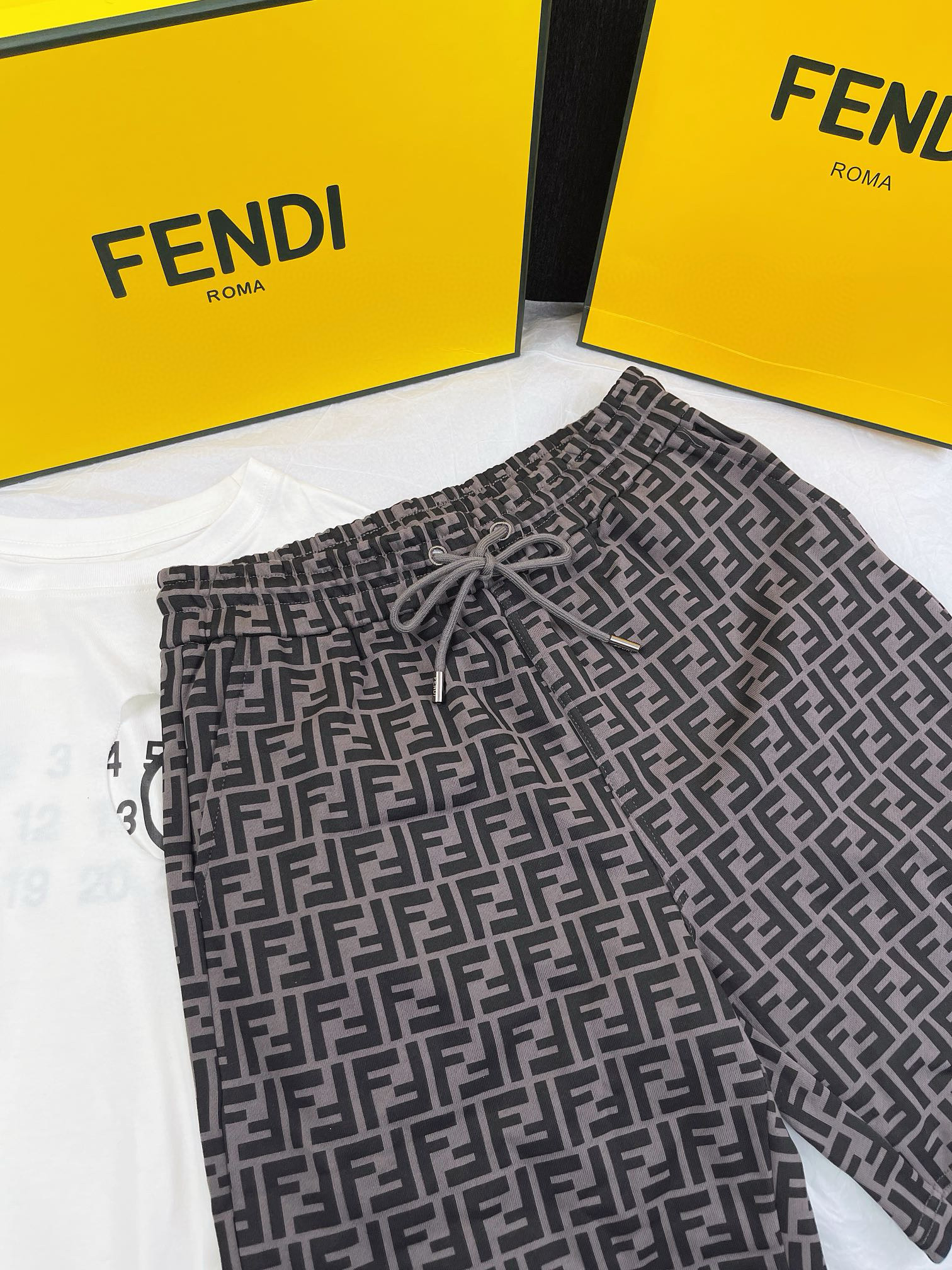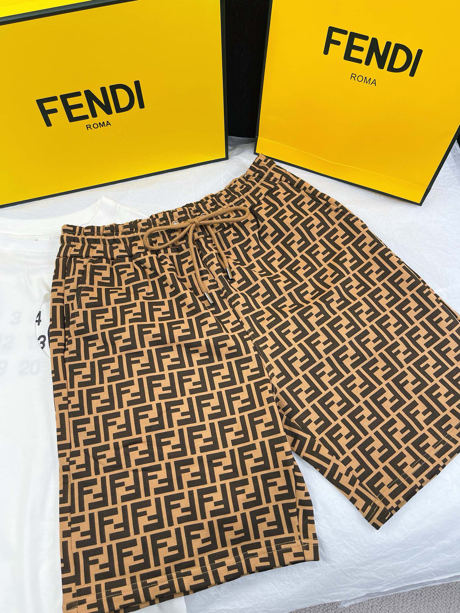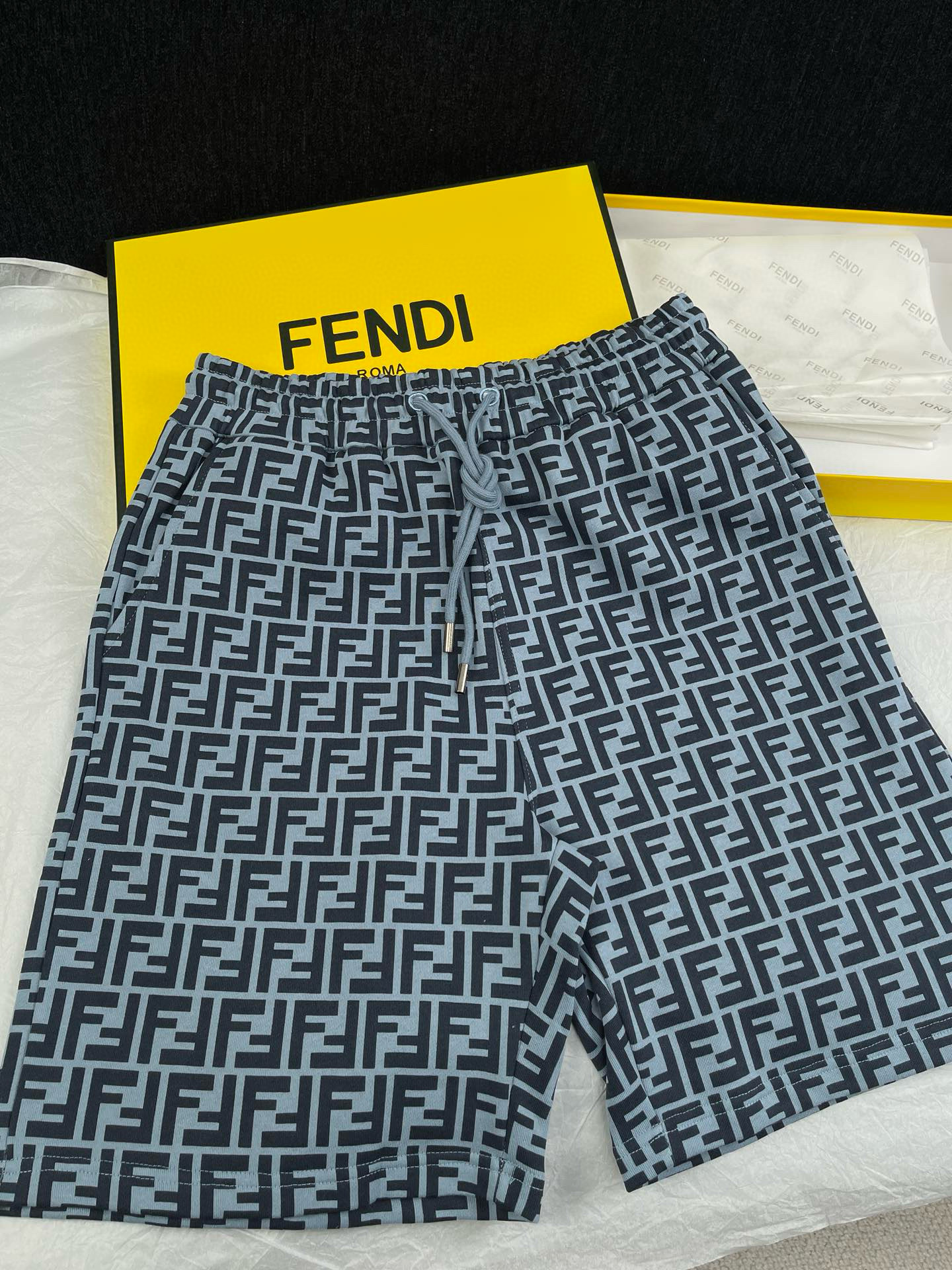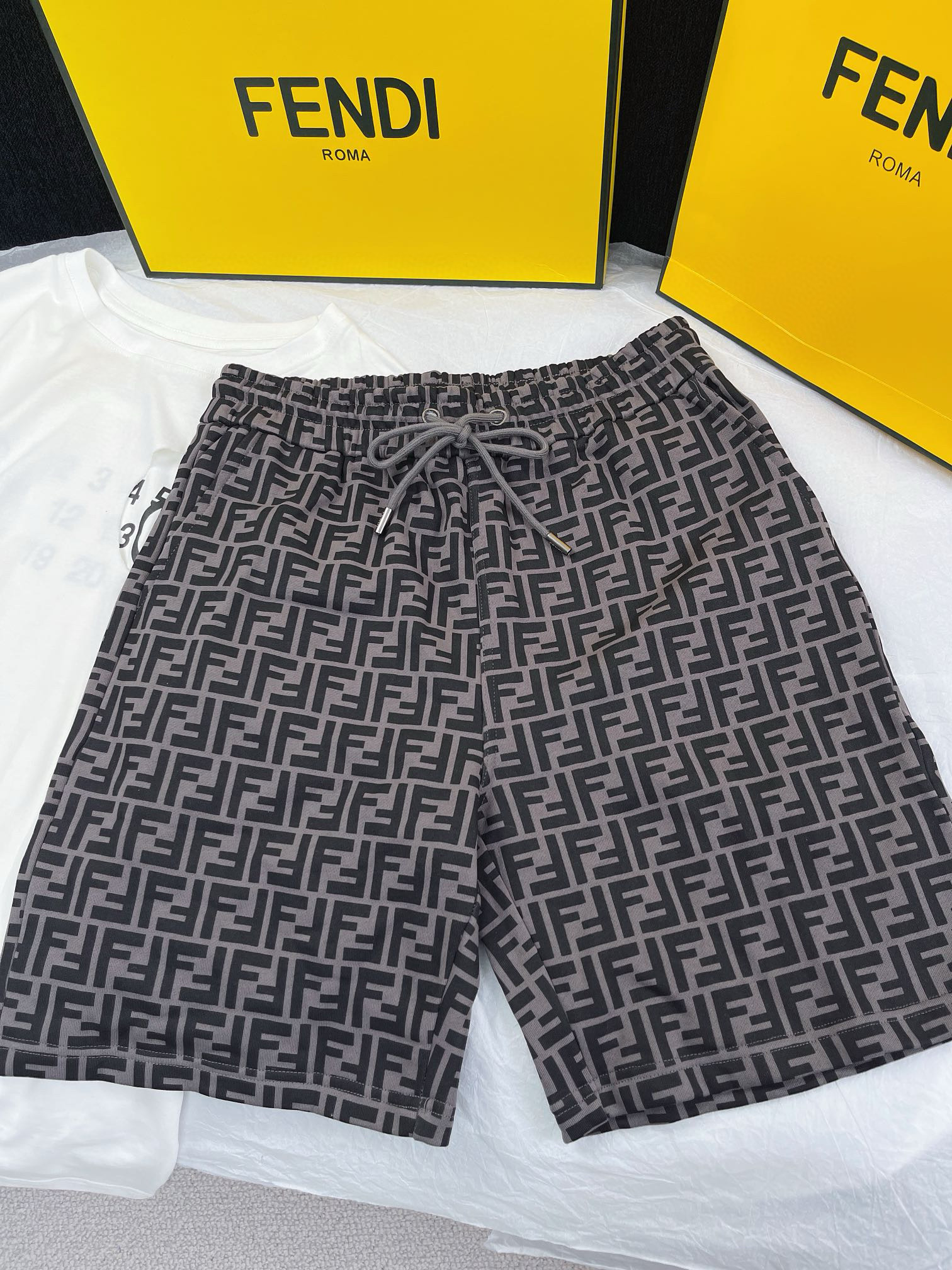 NIGO Fendi Men's Summer Solid Colour Letter Logo Print Drawstring Straight Casual Short Pants #nigo99348