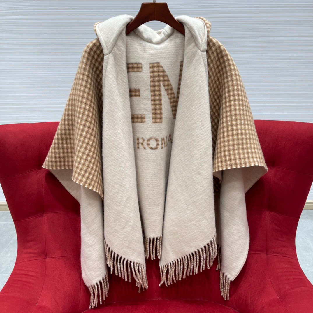 NIGO Fendi Women's Cashmere Reversible Hooded Poncho #nigo97251