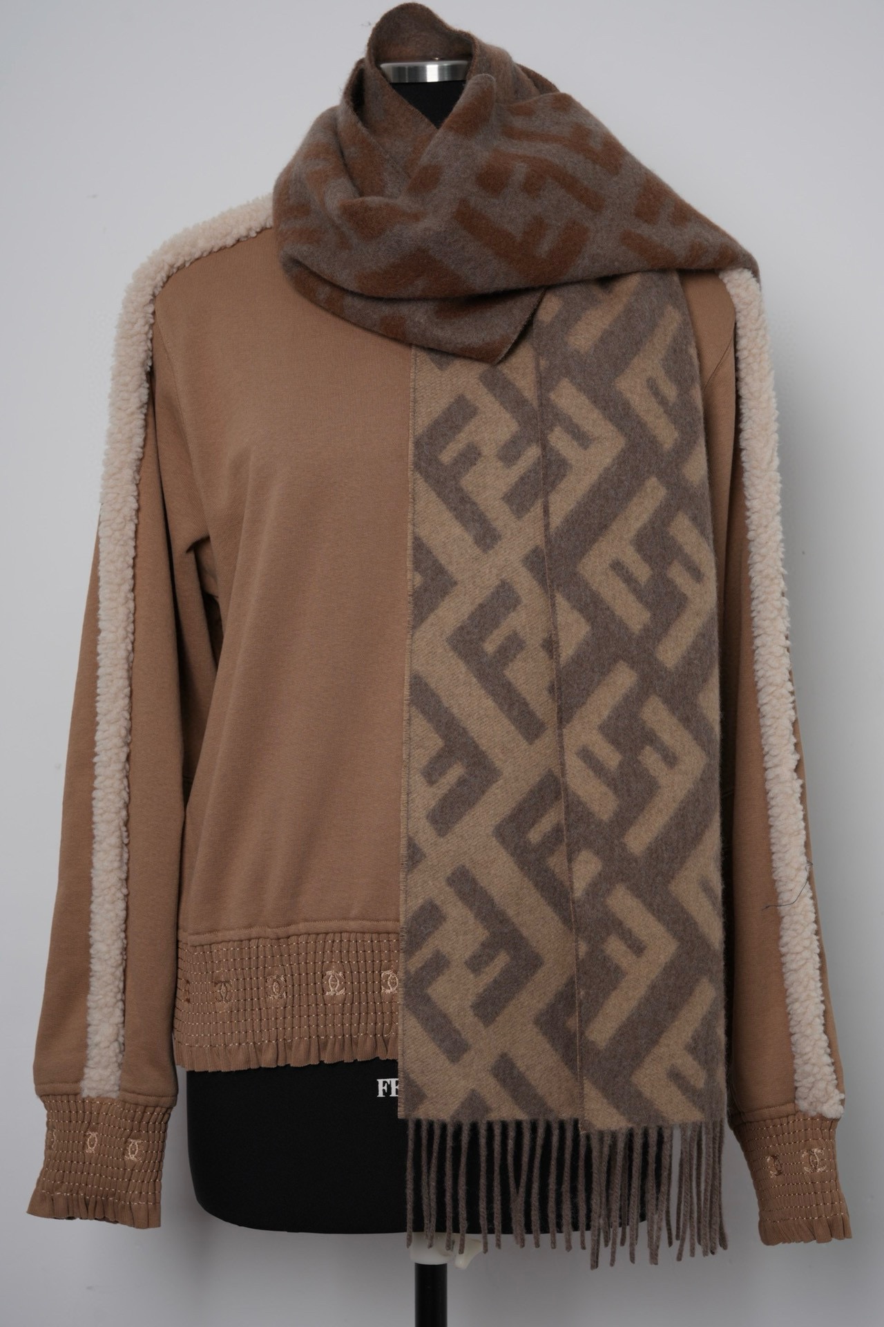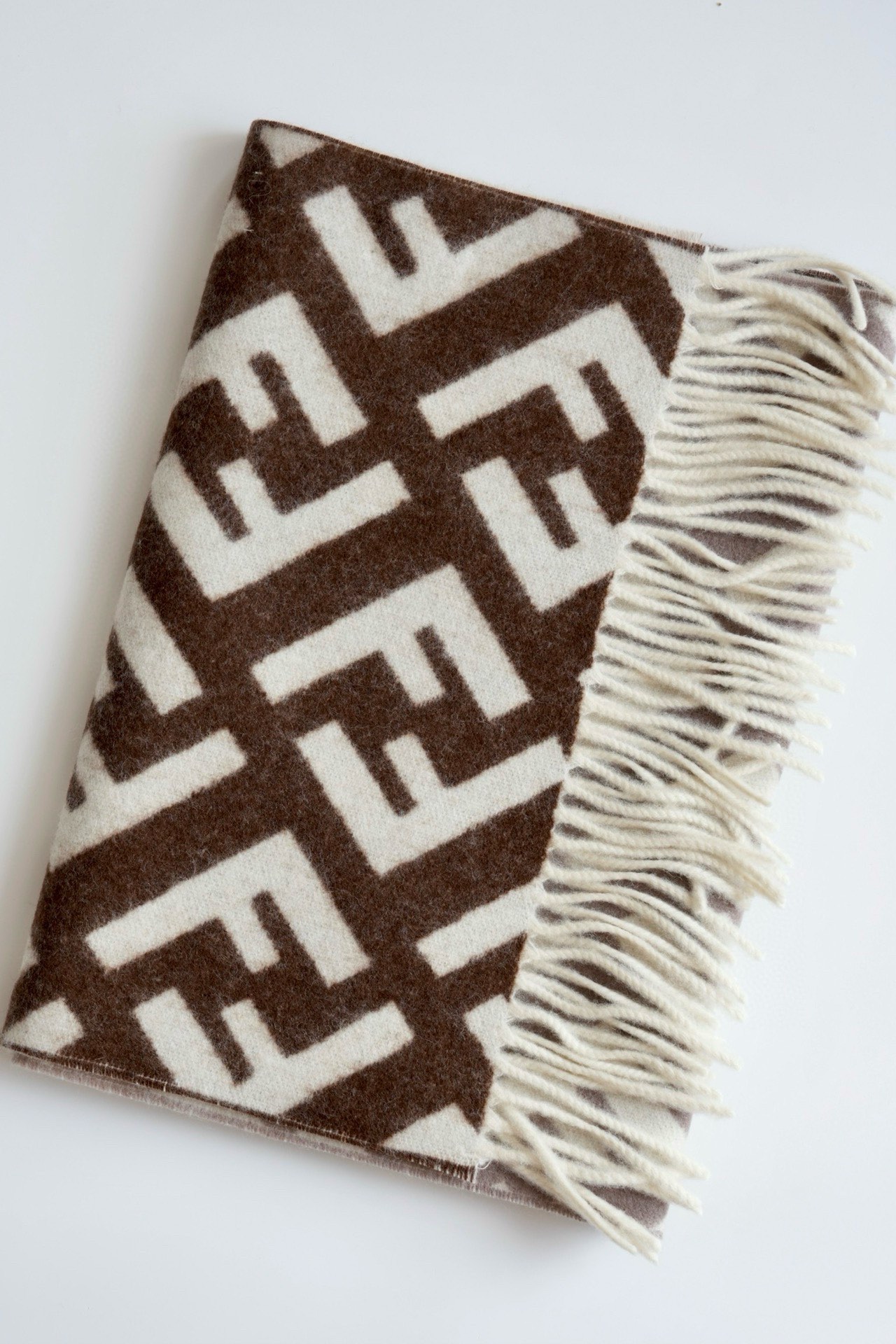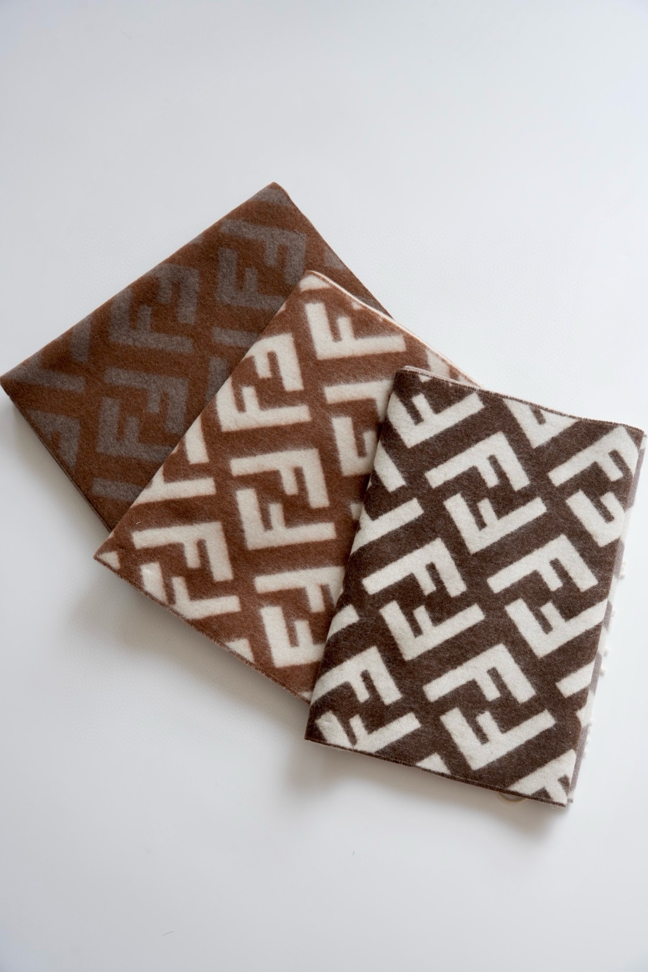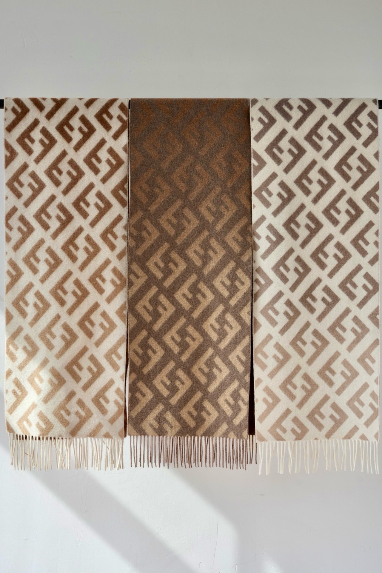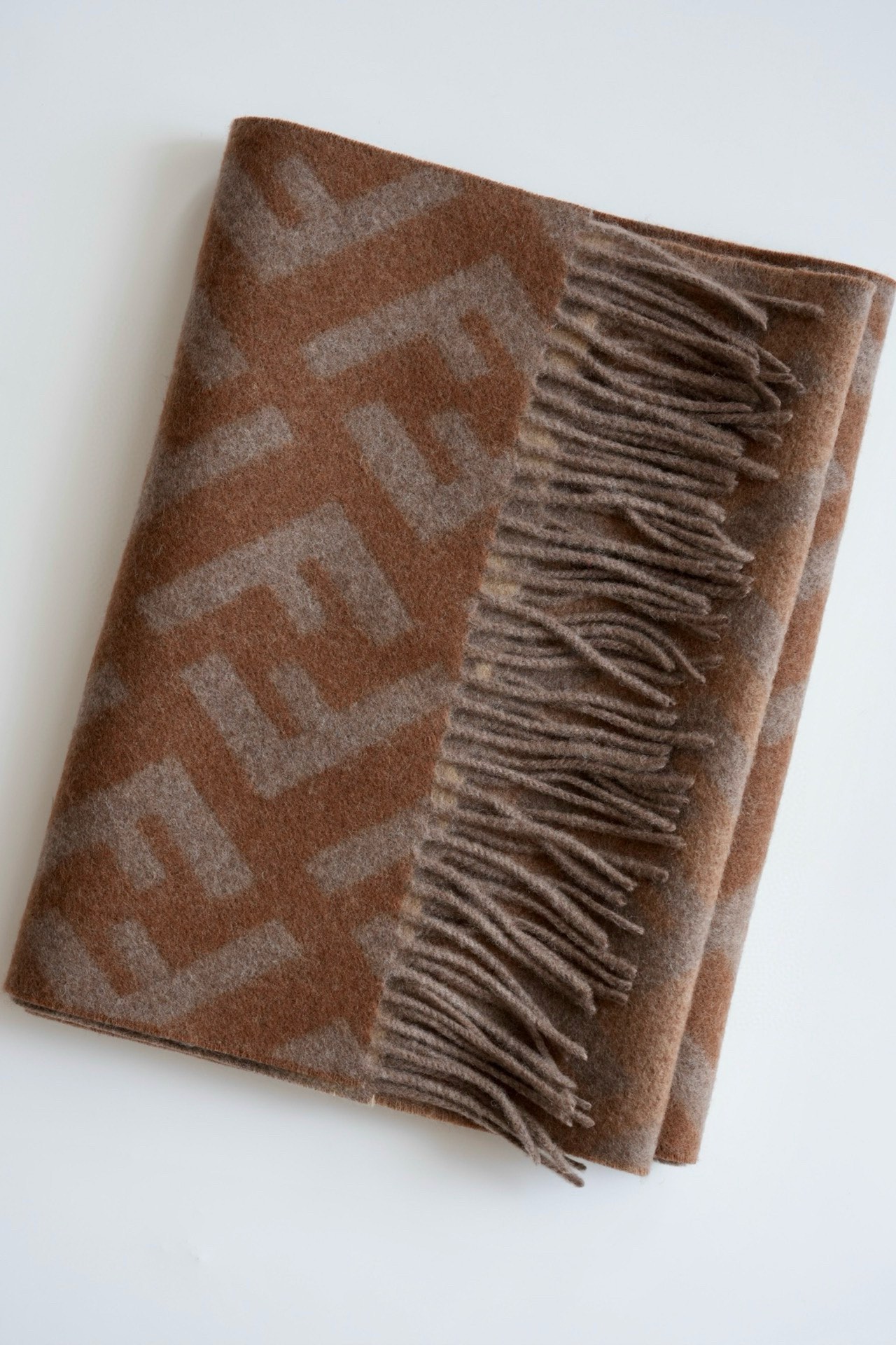 NIGO Fendi Women's FF Letter Logo Pattern Raw Edge Warm Fleece Scarf #nigo73848