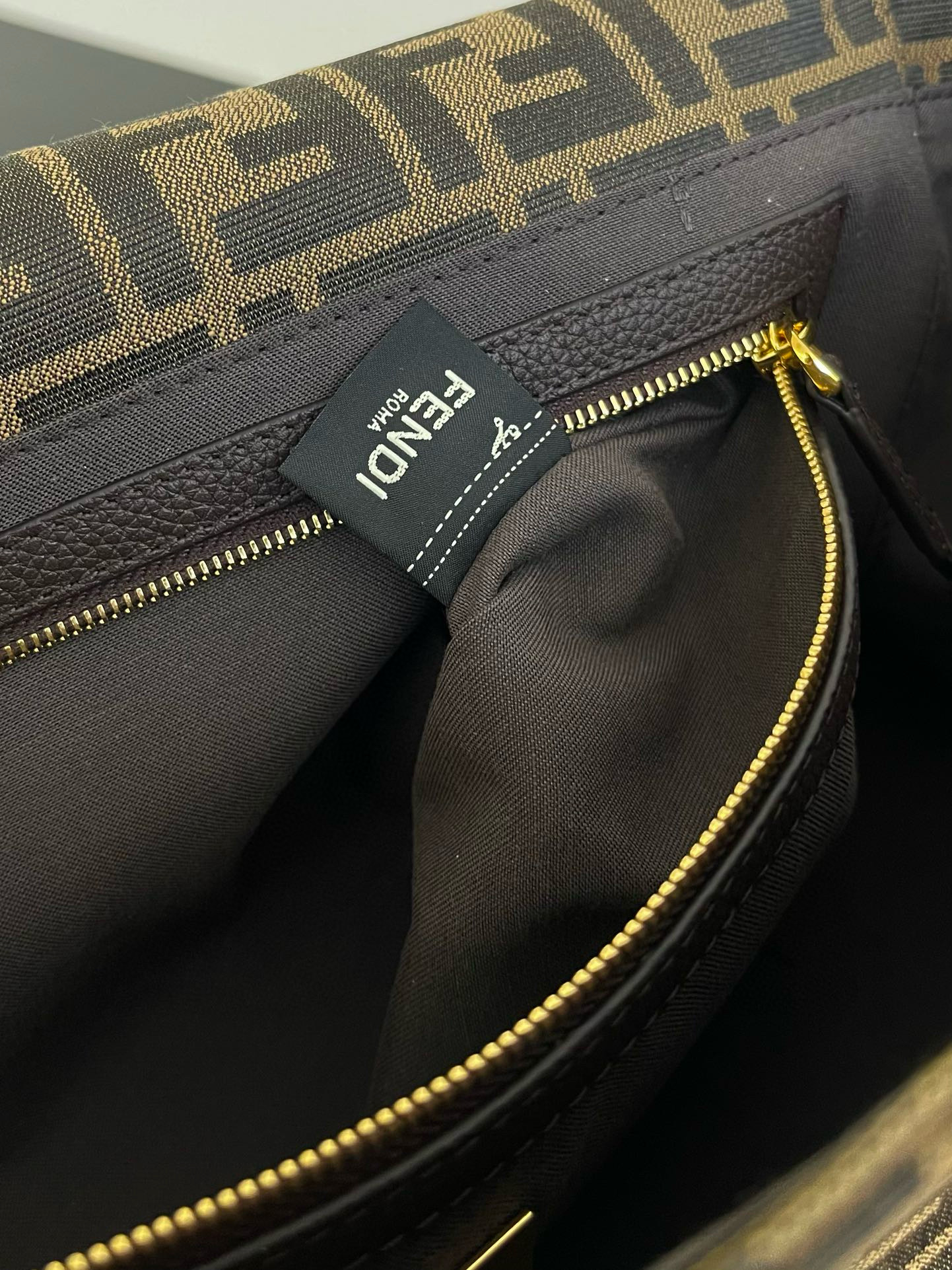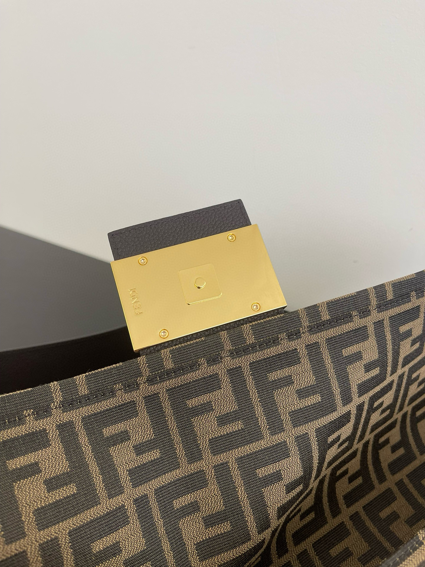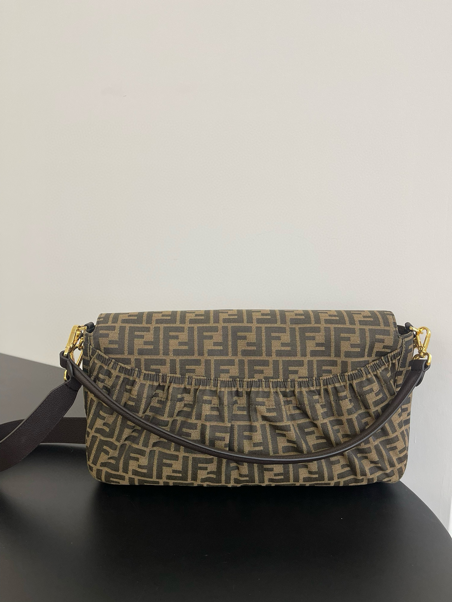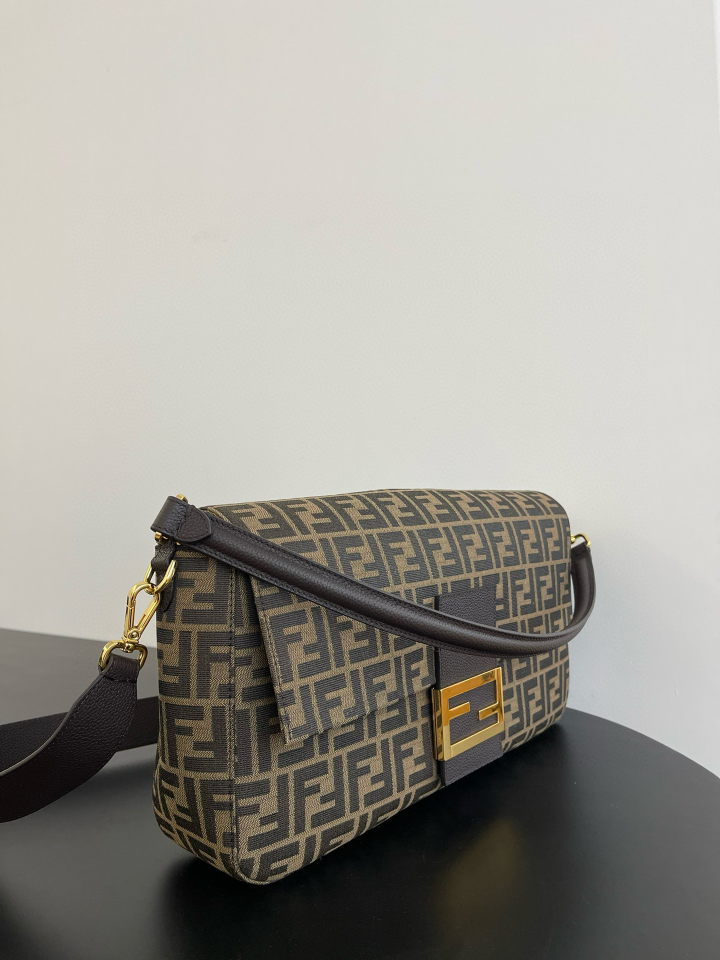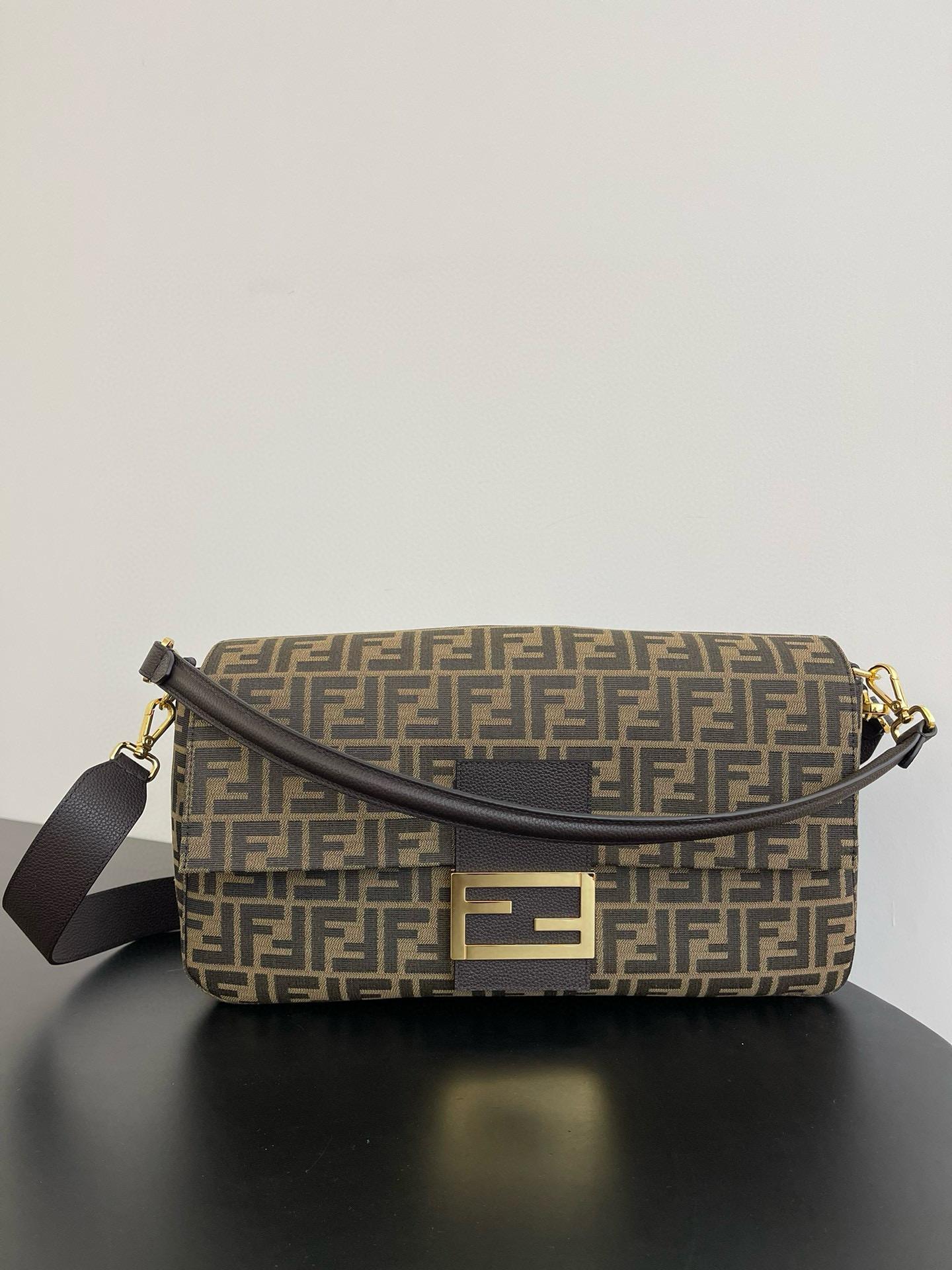 NIGO Fendi Women's Ladies Brown FF Printed Flap Magnetic Clasp Closure Jacquard Fabric Baguette Bag Shoulder Tote Handbag Bags #nigo98485