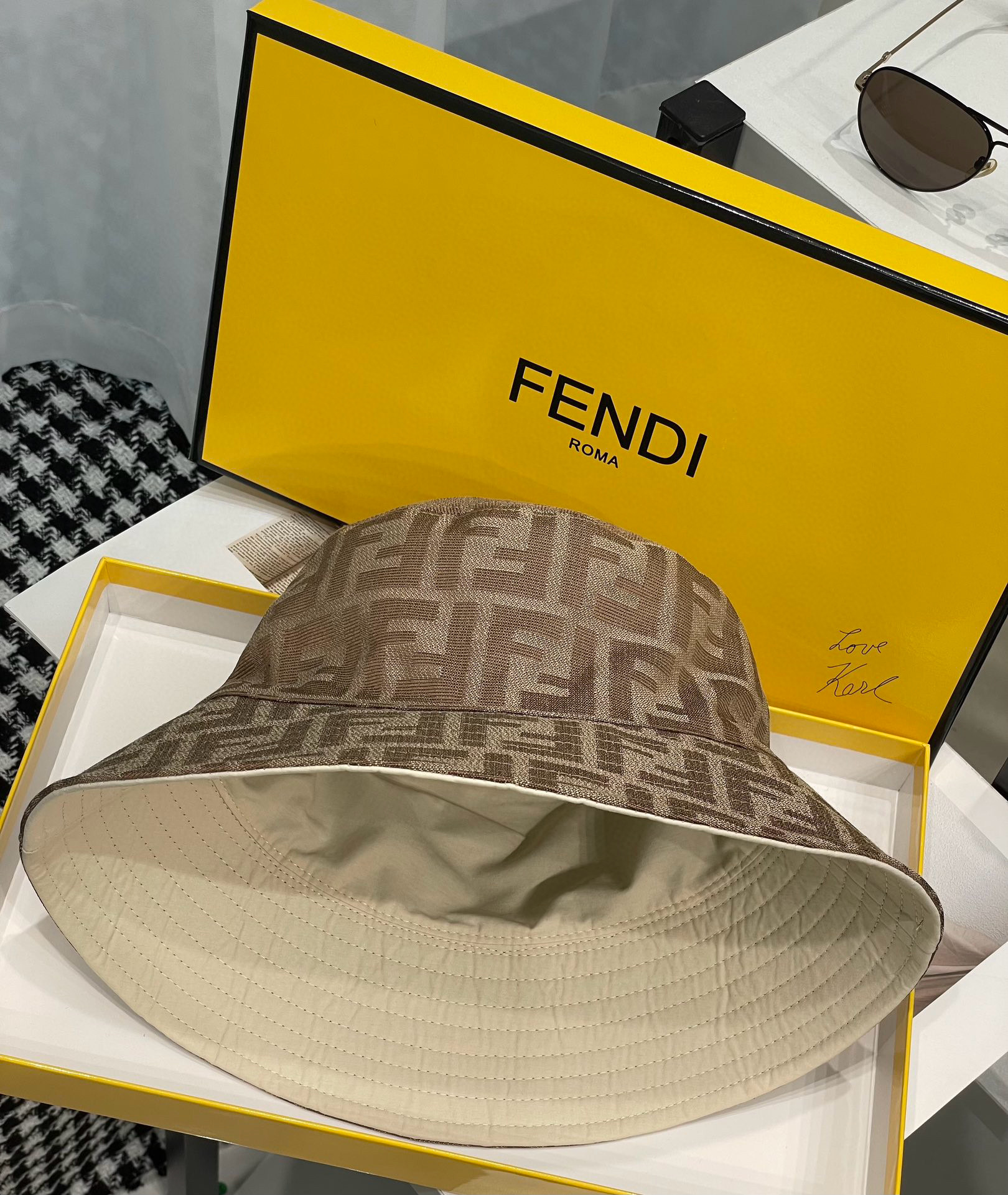NIGO Fendi Women's Solid Colour Monogrammed Satin Fabric Fisherman's Hat Cap #nigo76877