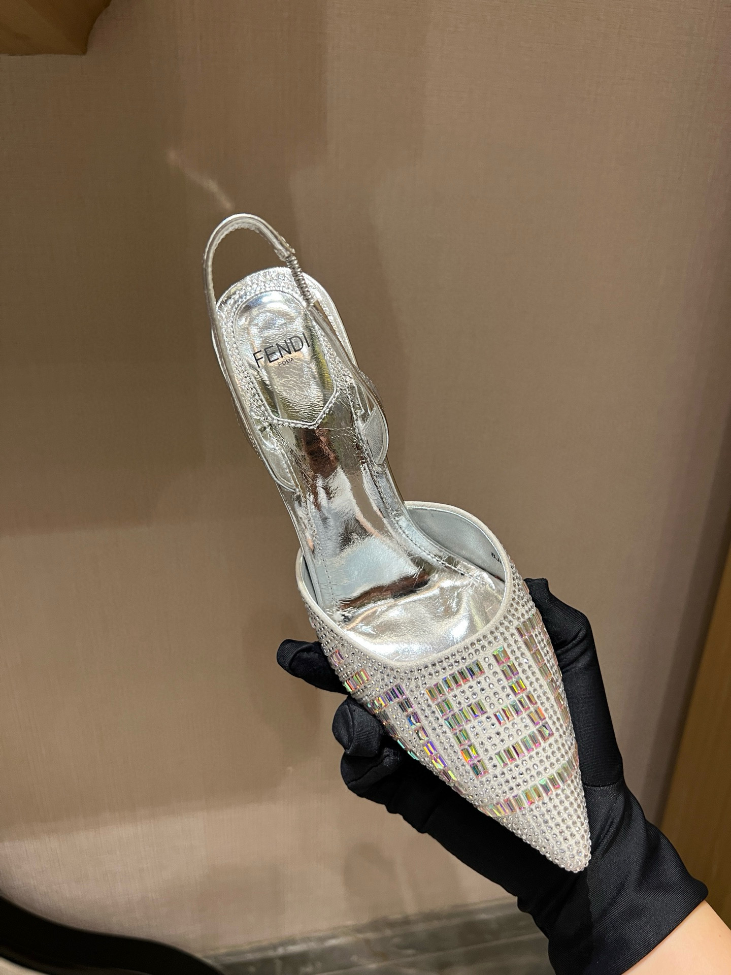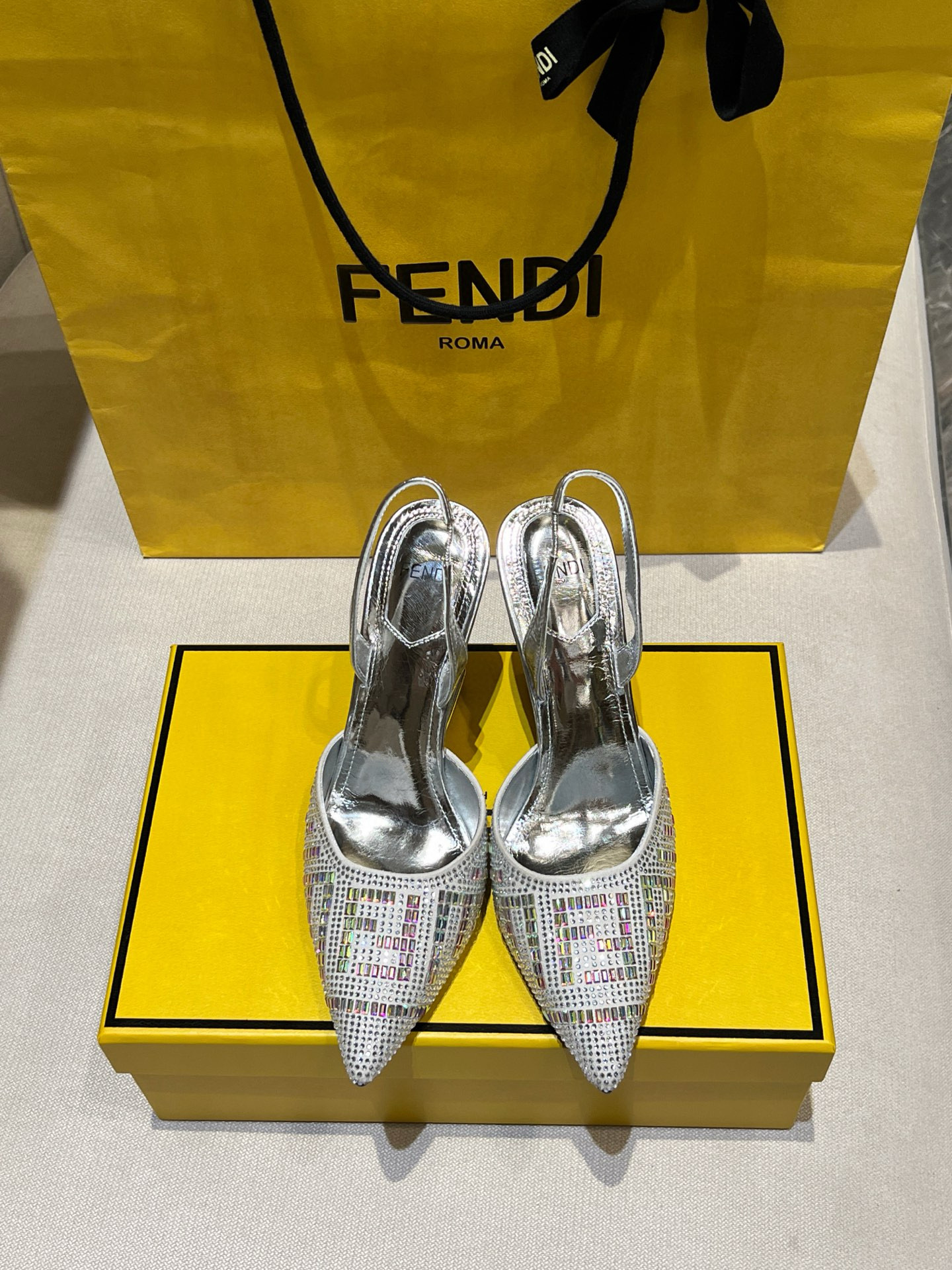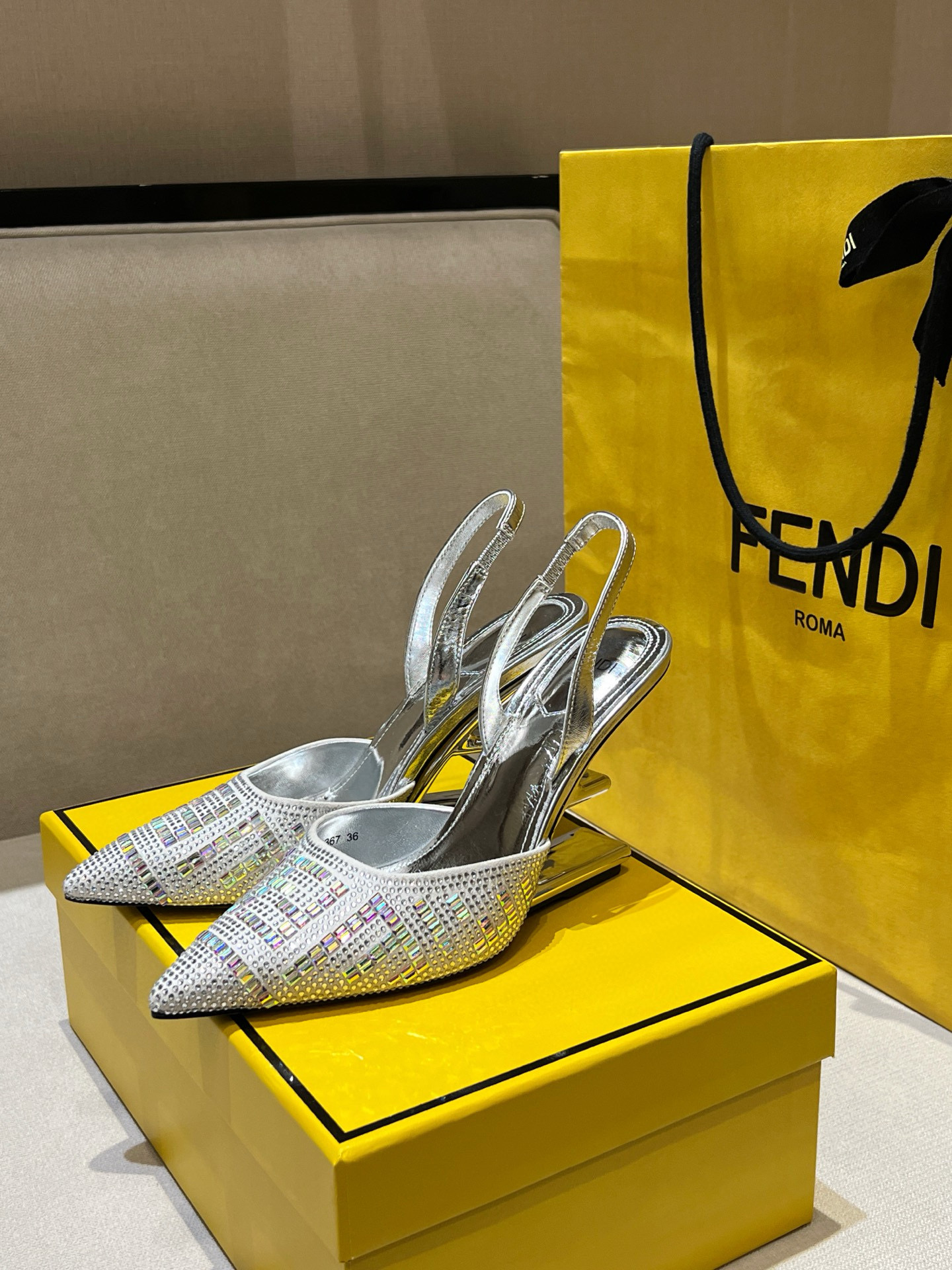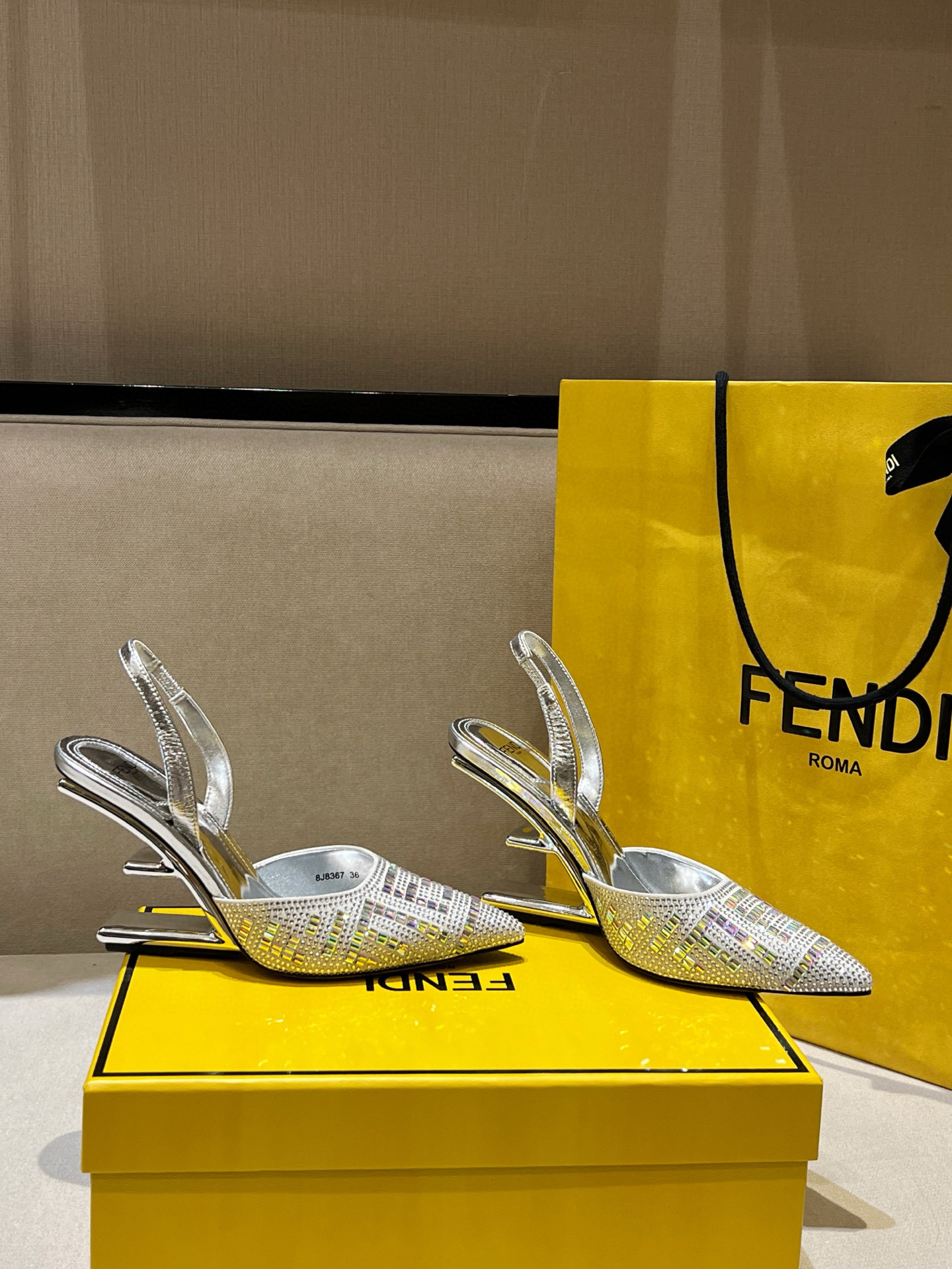NIGO Fendi Women's Spring/Fall Fashion Classic Pointed-Toe Leather Metal Diagonal F-Shaped 3D Heel High Heels Shoes #nigo78767