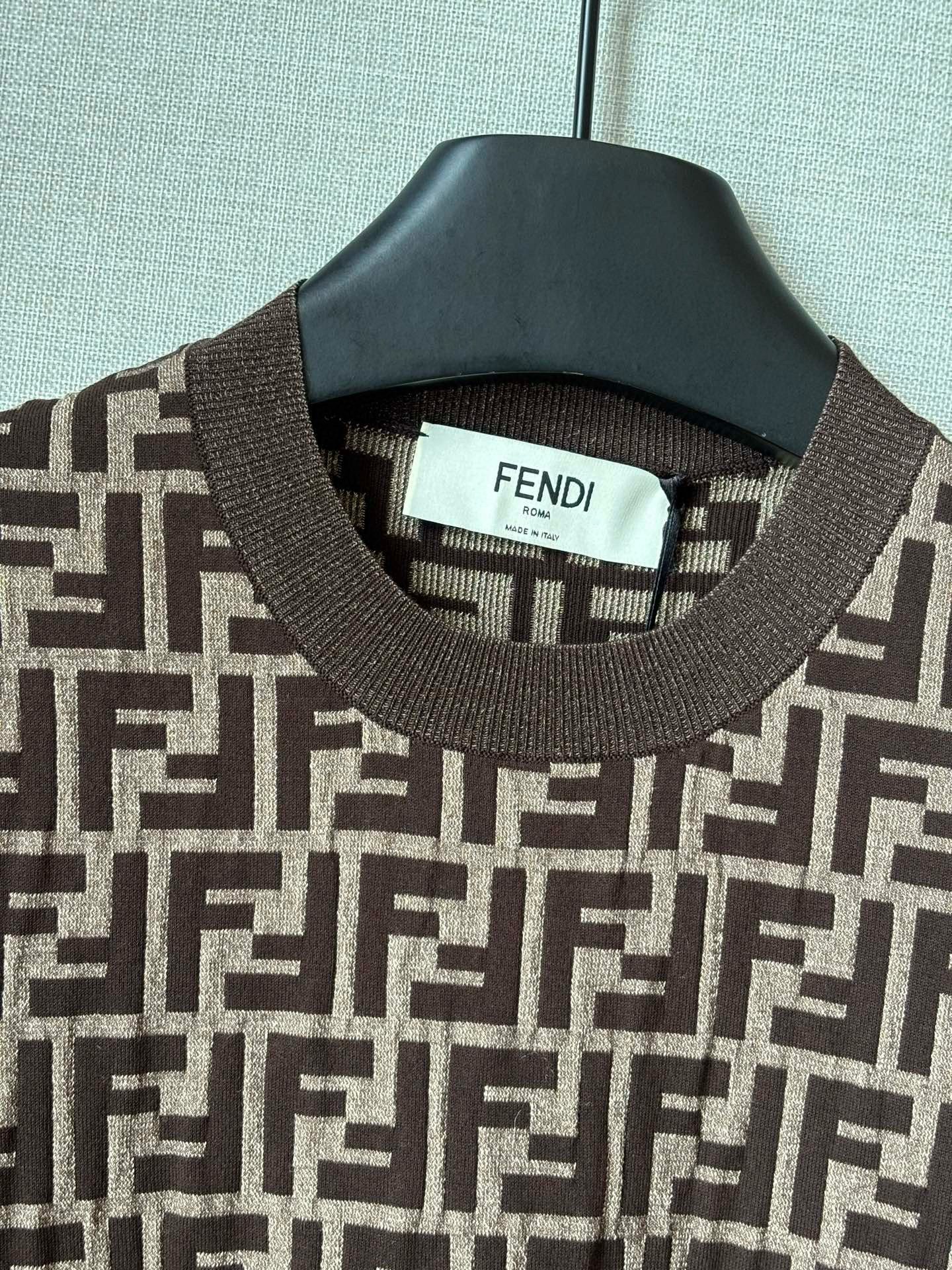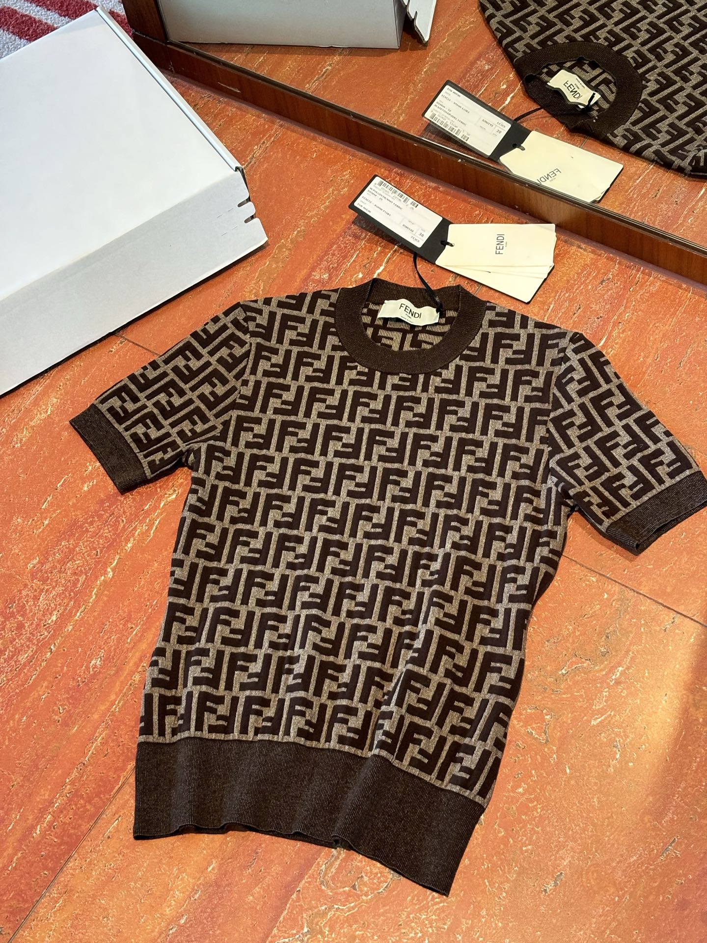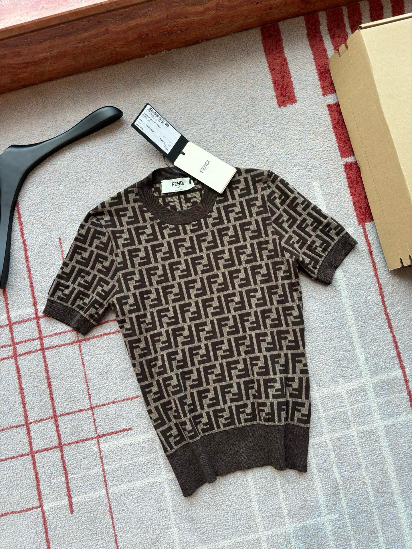 NIGO Fendi Women's Summer Blue and White FF Letter Print Round Neck Knit Short Sleeve T-Shirt #nigo77485