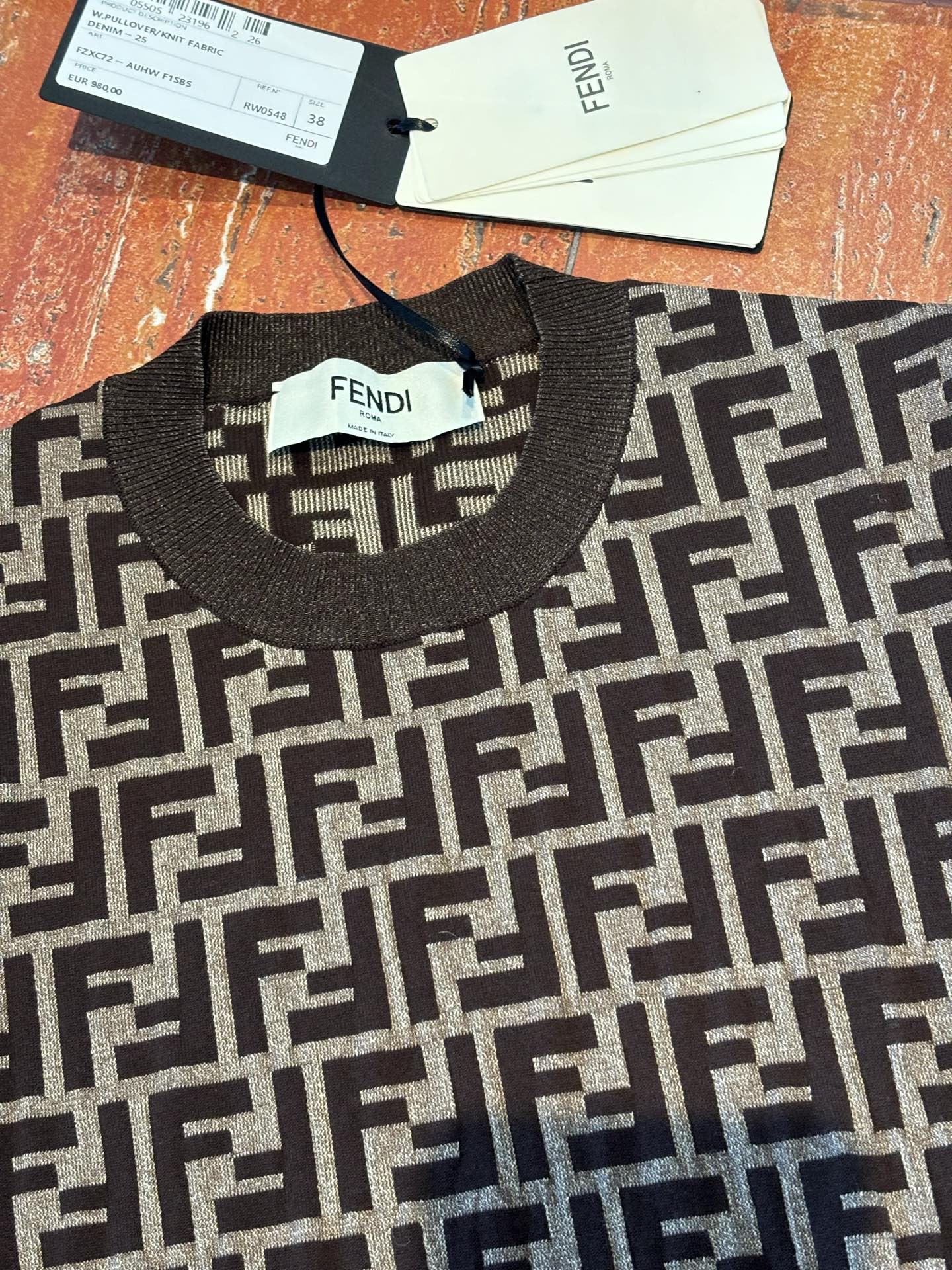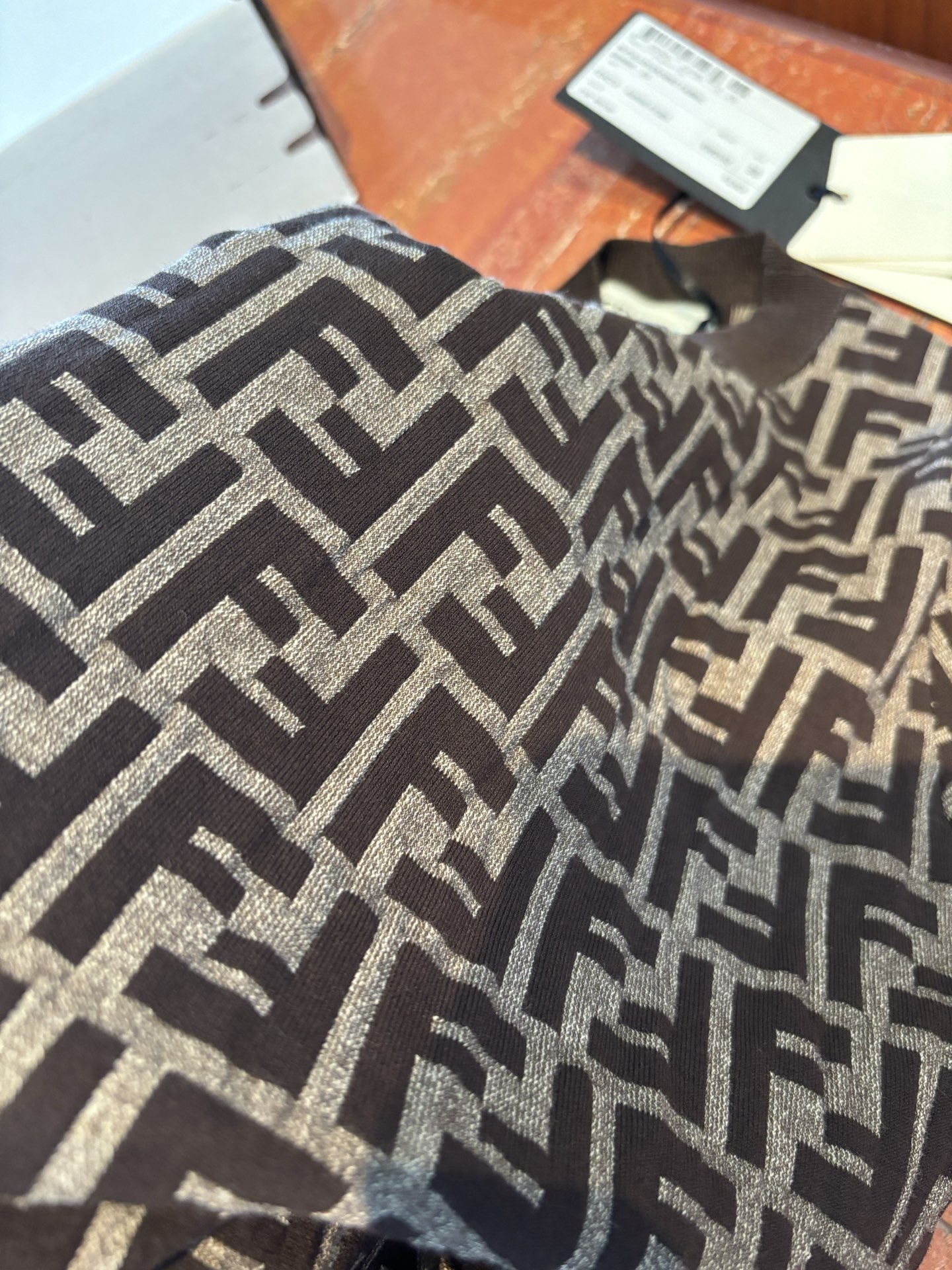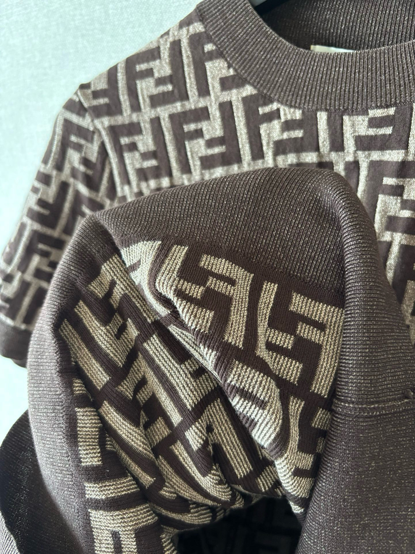 NIGO Fendi Women's Summer Blue and White FF Letter Print Round Neck Knit Short Sleeve T-Shirt #nigo77485