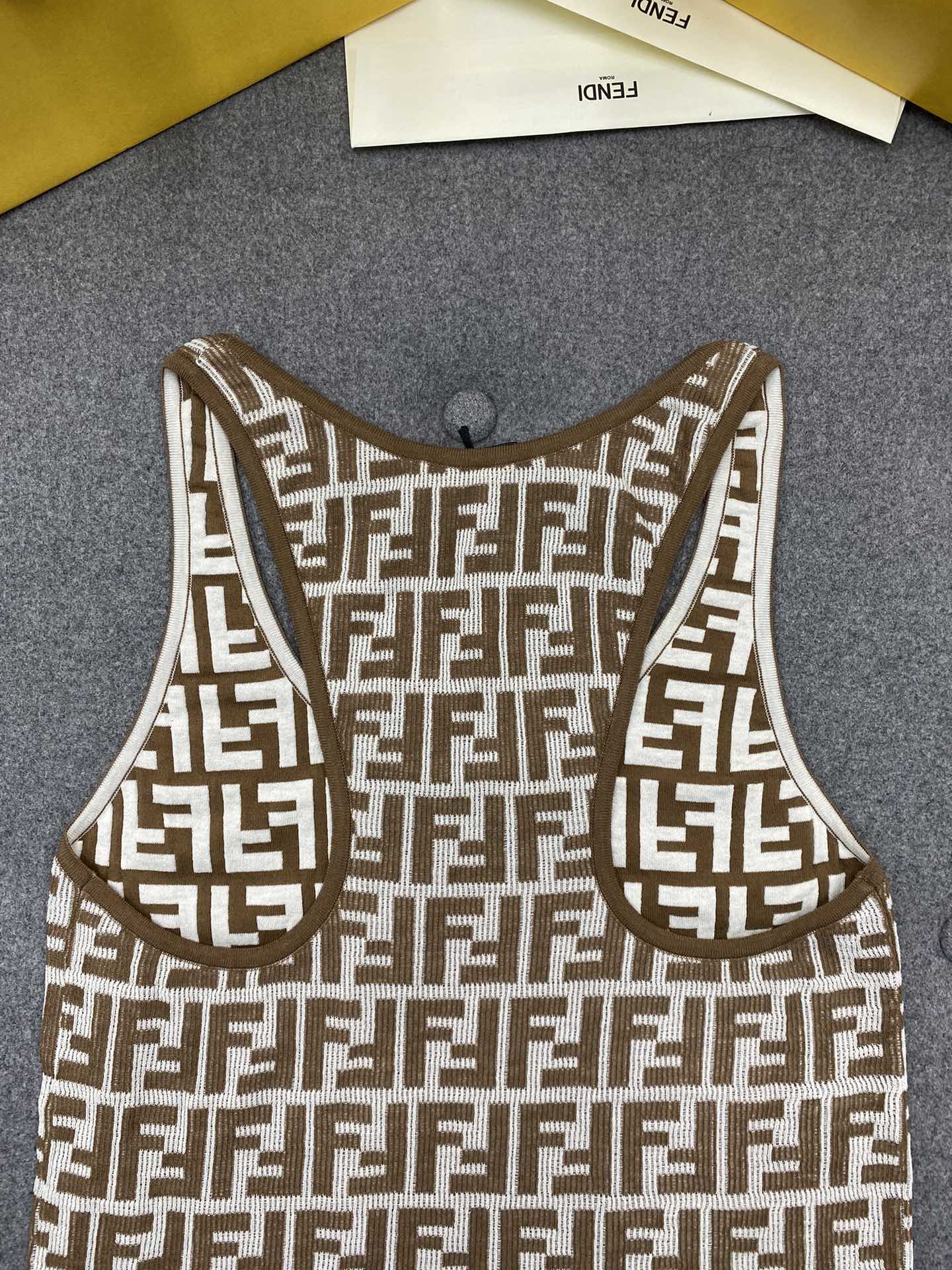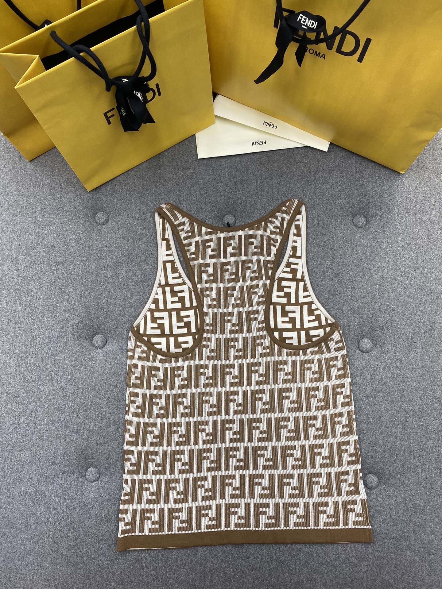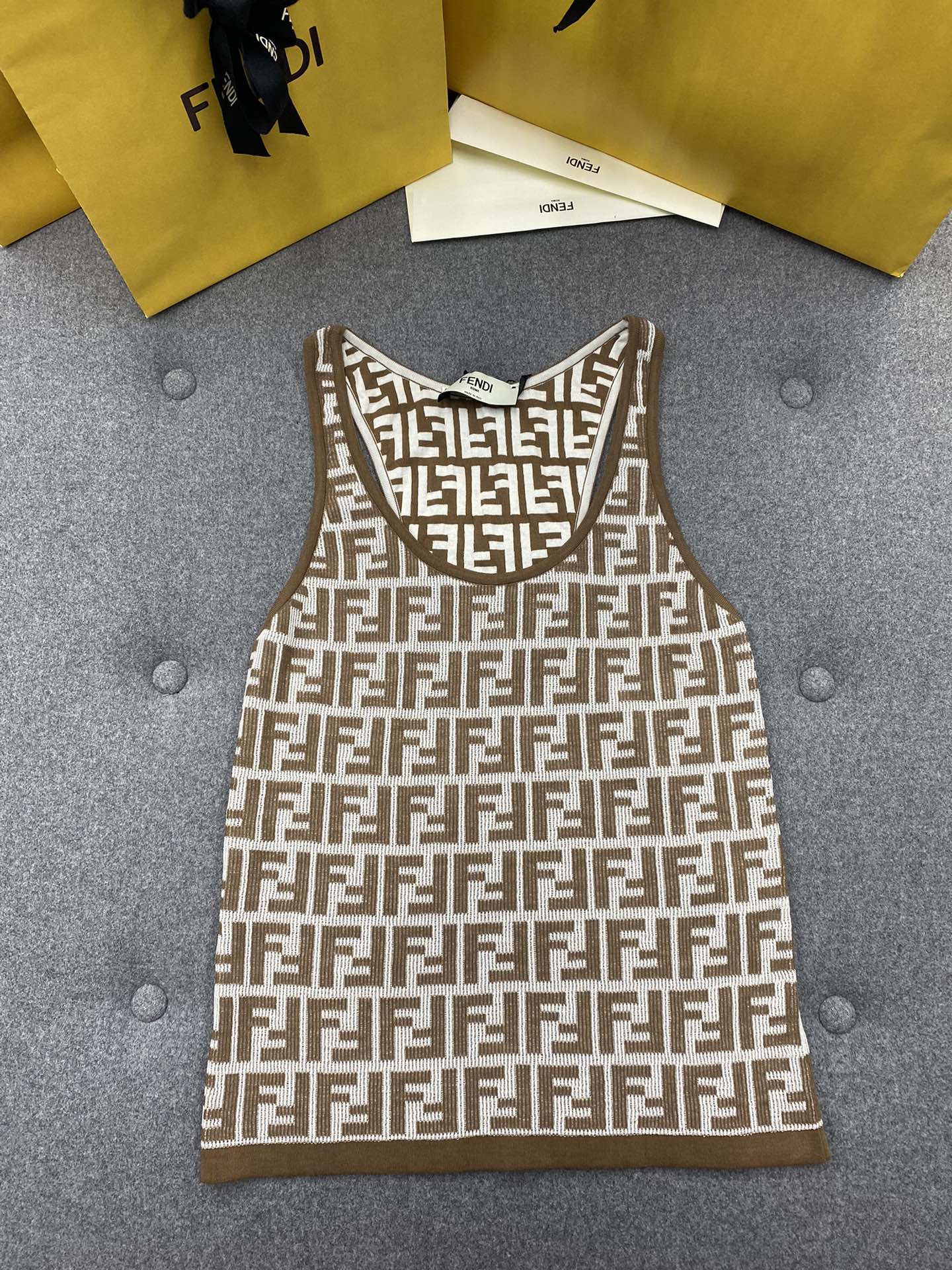 NIGO Fendi Women's Summer Brown FF Print Cotton Knit Top Fitted Sleeveless Vest #nigo71529