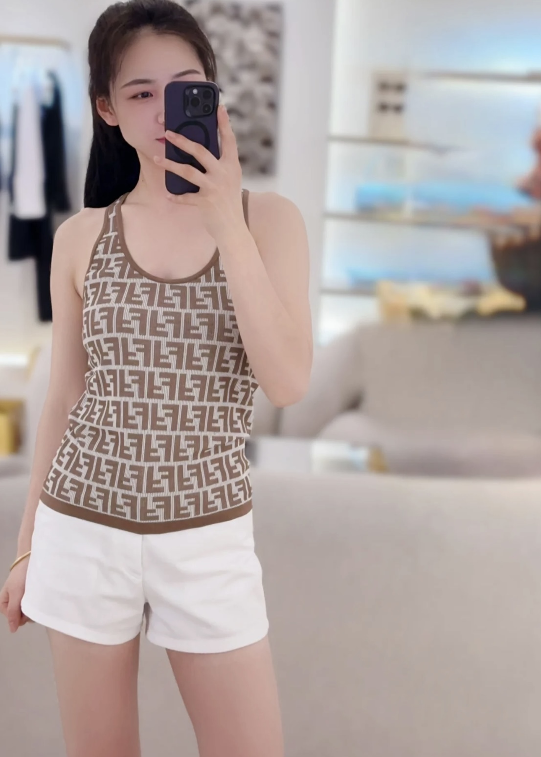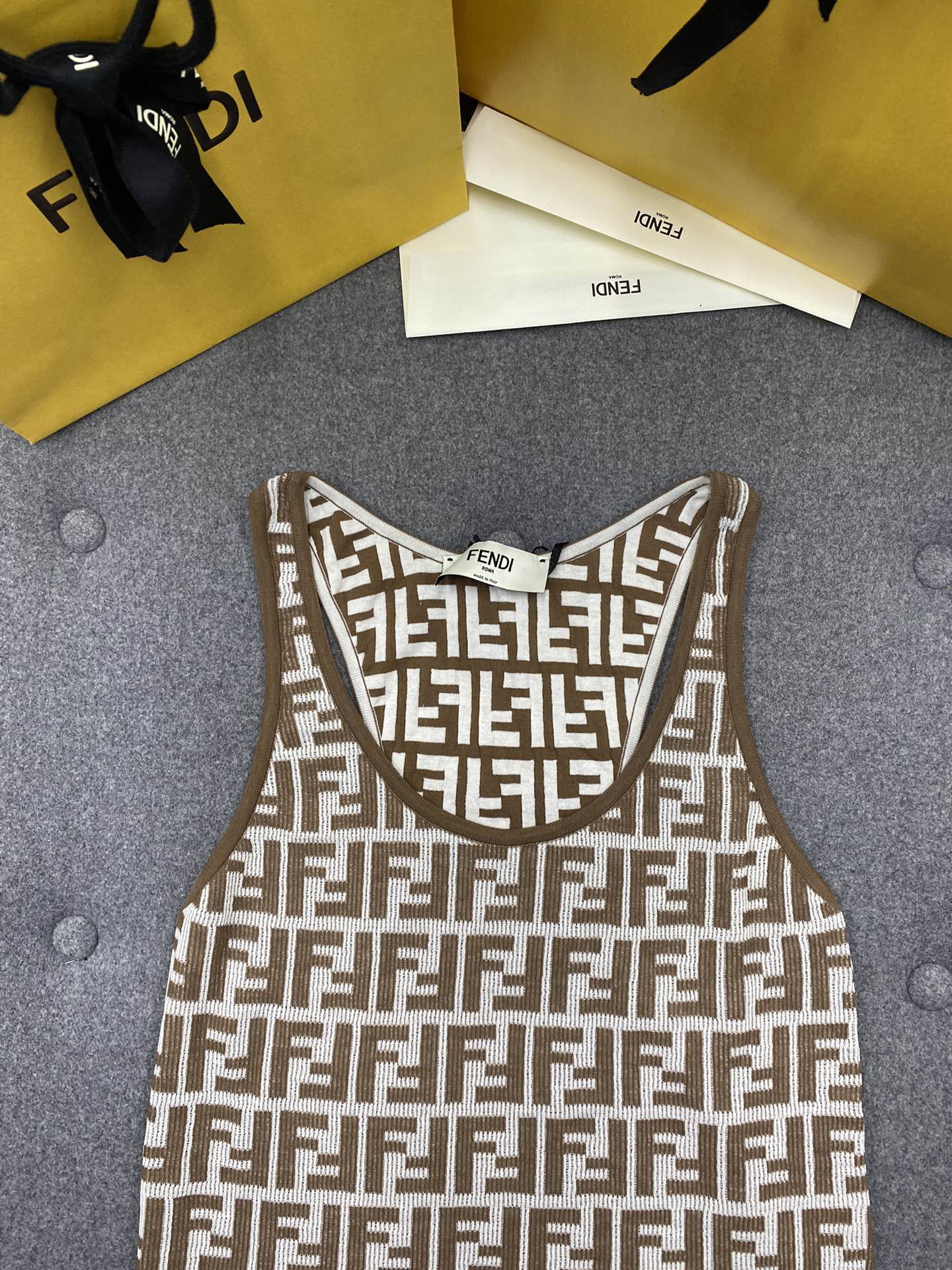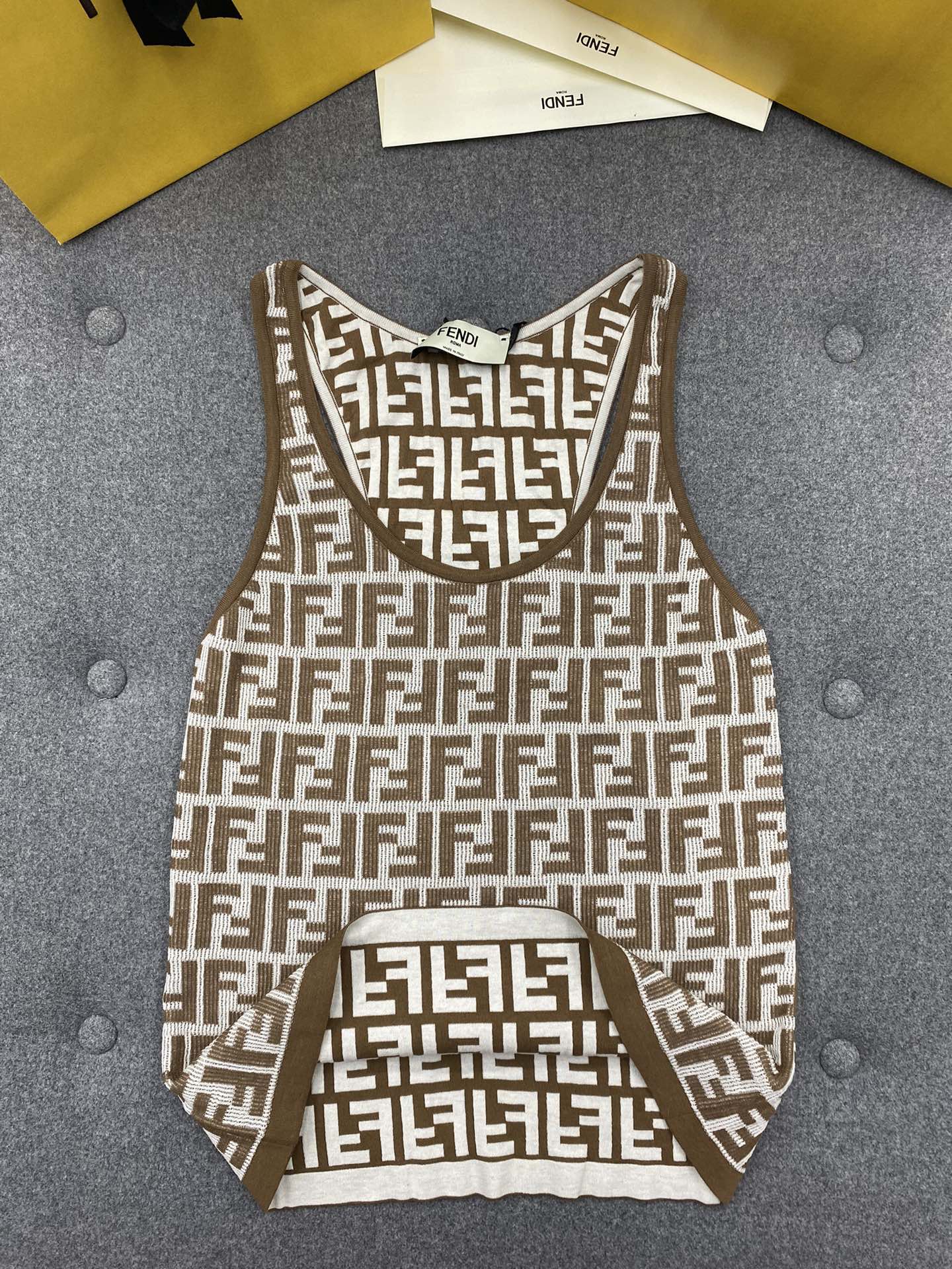 NIGO Fendi Women's Summer Brown FF Print Cotton Knit Top Fitted Sleeveless Vest #nigo71529