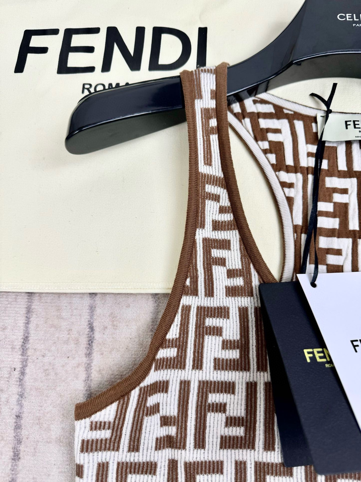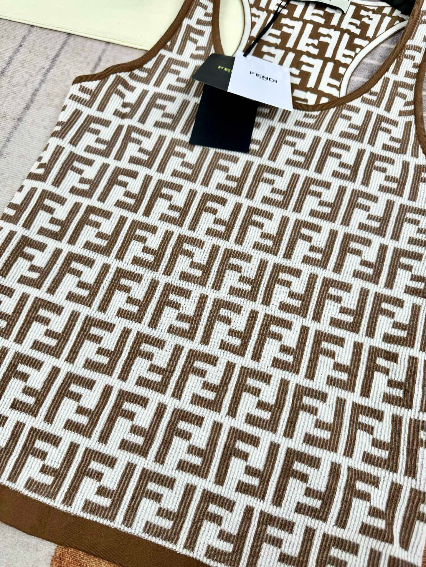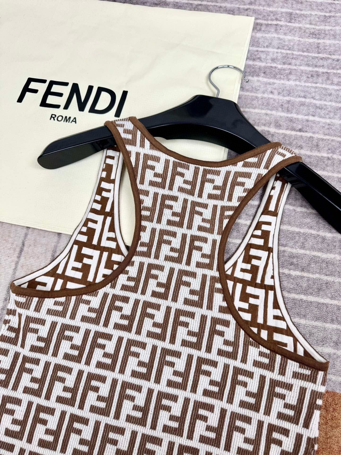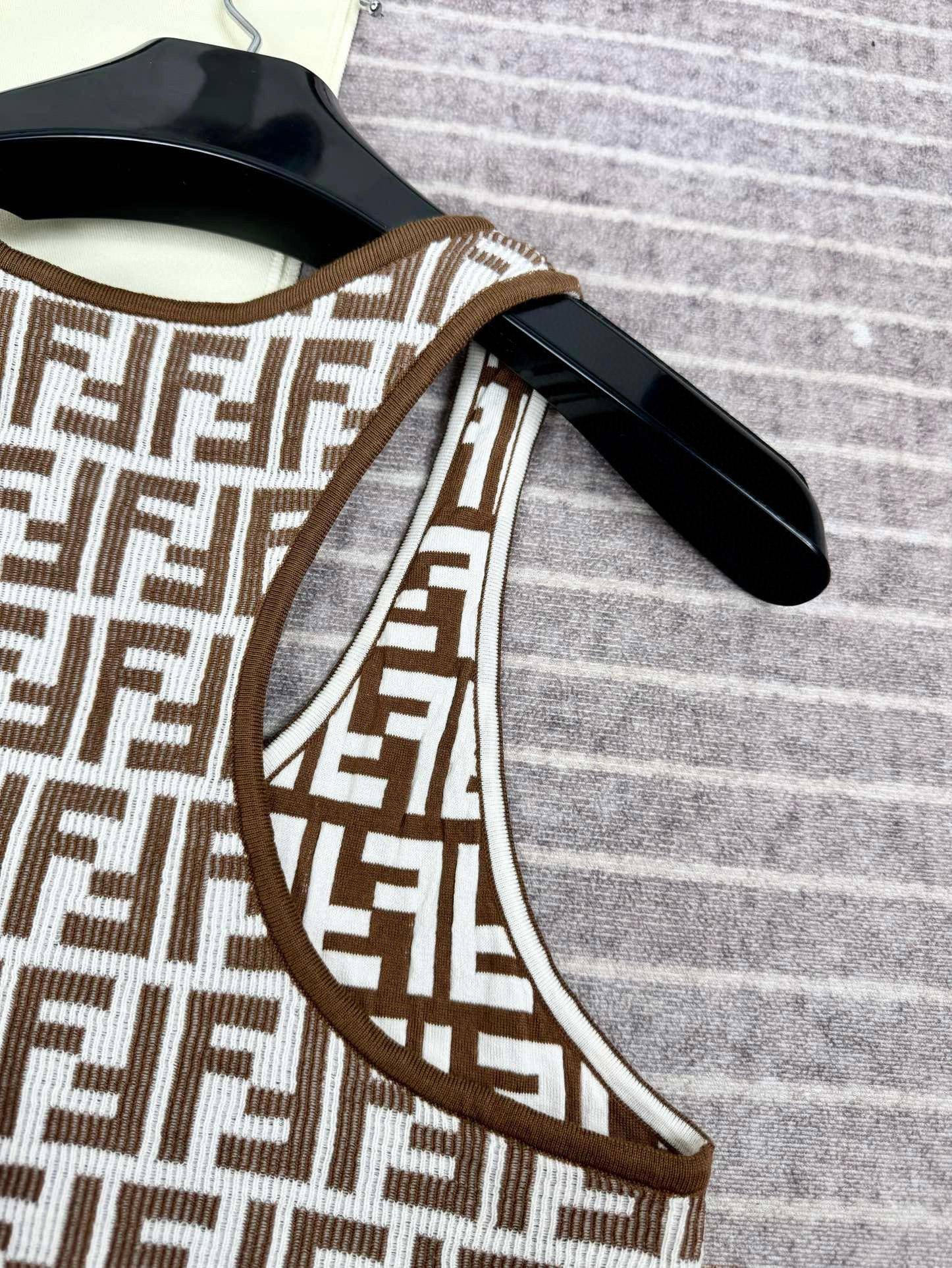 NIGO Fendi Women's Summer Brown FF Print Cotton Knit Top Fitted Sleeveless Vest #nigo72933